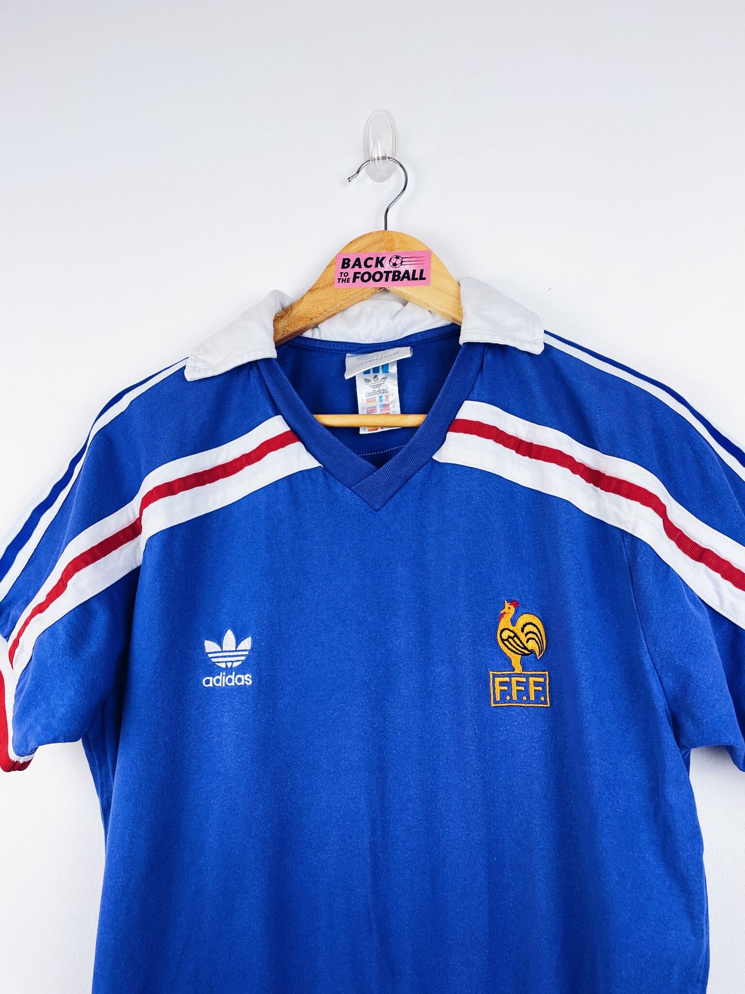 Le maillot : maillot vintage domicile de l’équipe de France 1986. L’écusson et le logo Adidas à trèfle sont brodés. Très beau maillot rétro de la France !