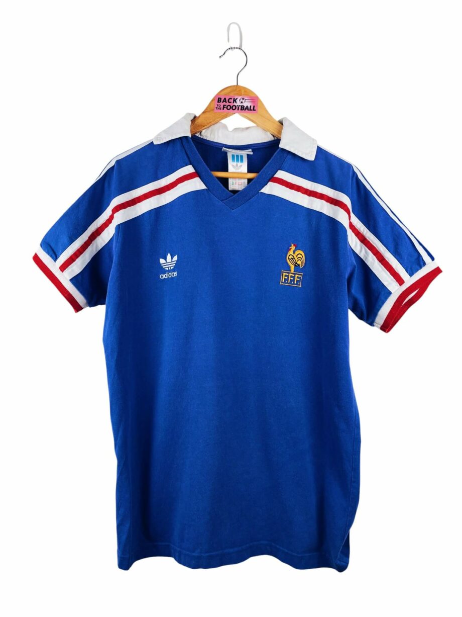 Le maillot : maillot vintage domicile de l’équipe de France 1986. L’écusson et le logo Adidas à trèfle sont brodés. Réédition officielle de 1998. Très beau maillot rétro de la France !