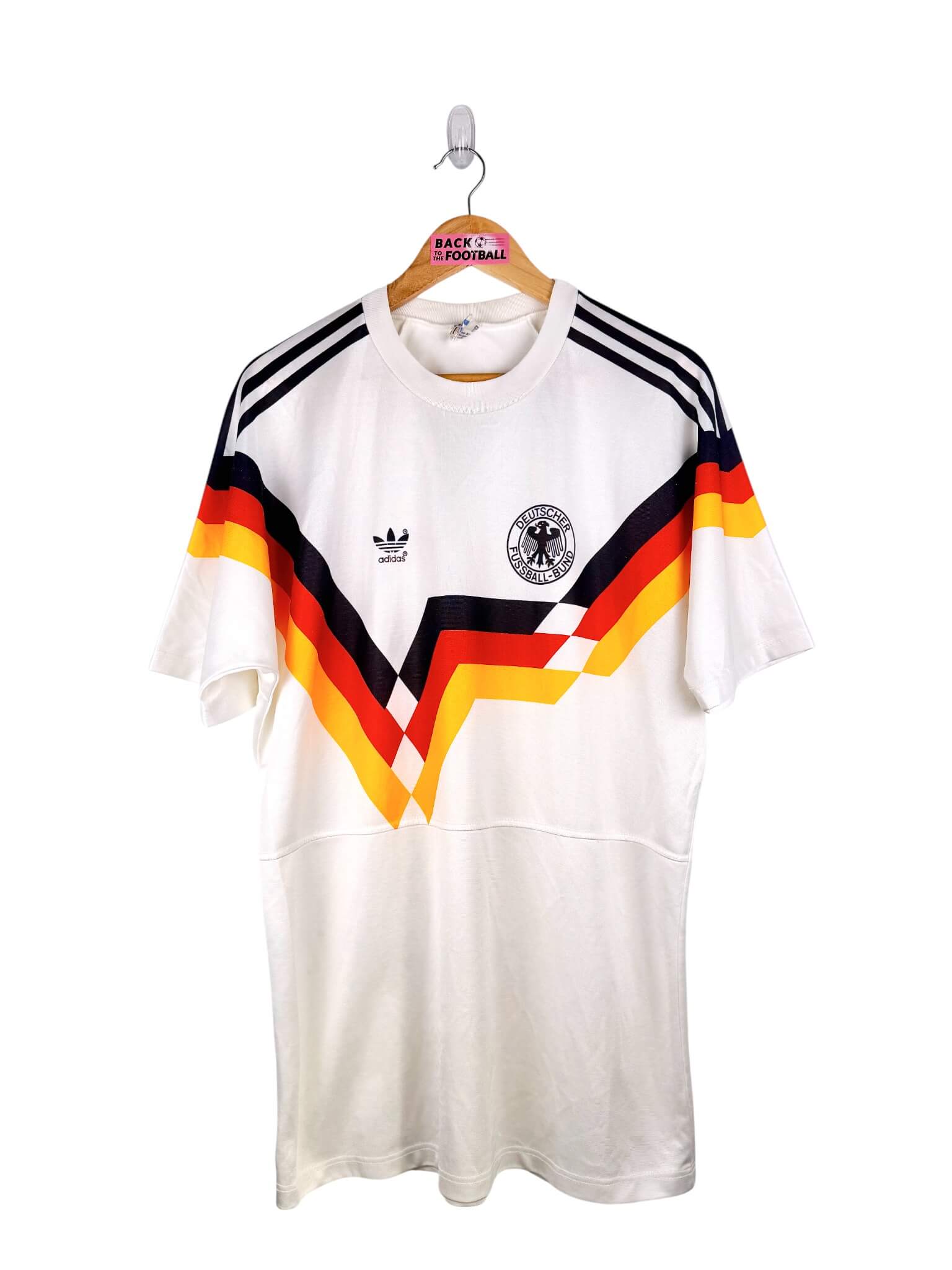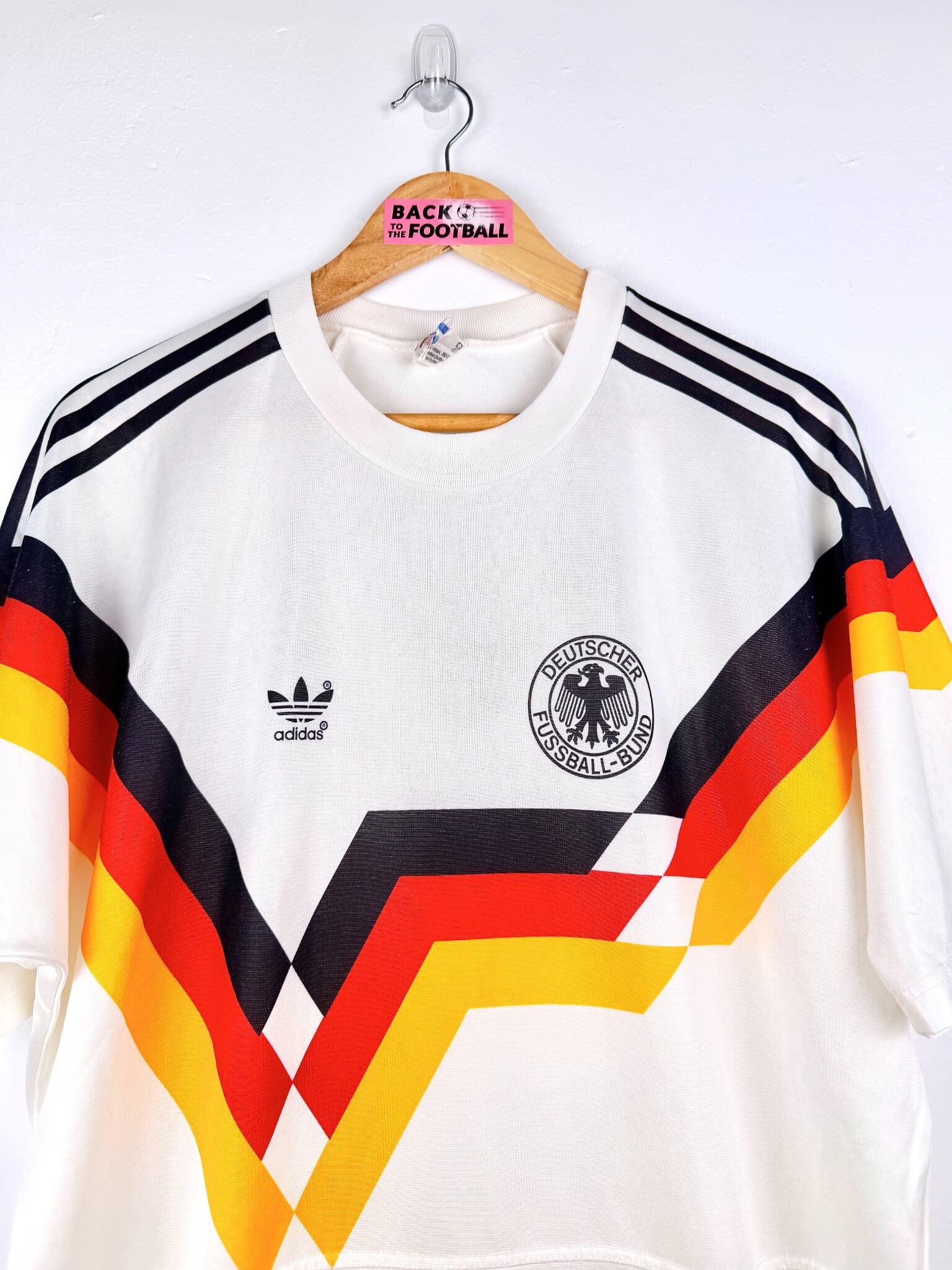 Un maillot vintage de l’Allemagne, ça te tente? Back To The Football t’a sélectionné la crème de la crème des maillots rétros de la Maanschaft. Chaque maillot de l’Allemagne est unique et authentique. Qui dit maillot d’époque dit stock limité, premier arrivé, premier servi !