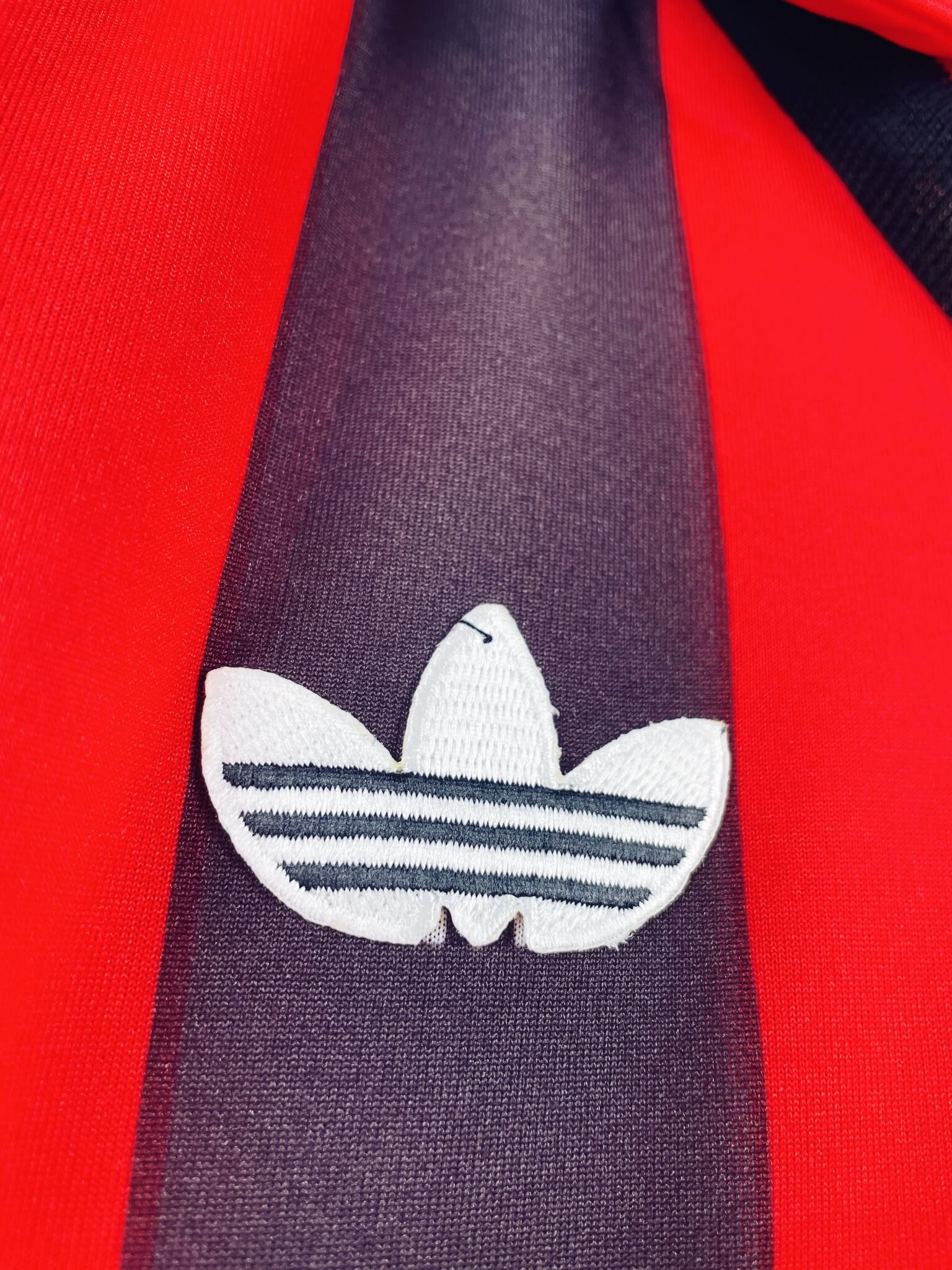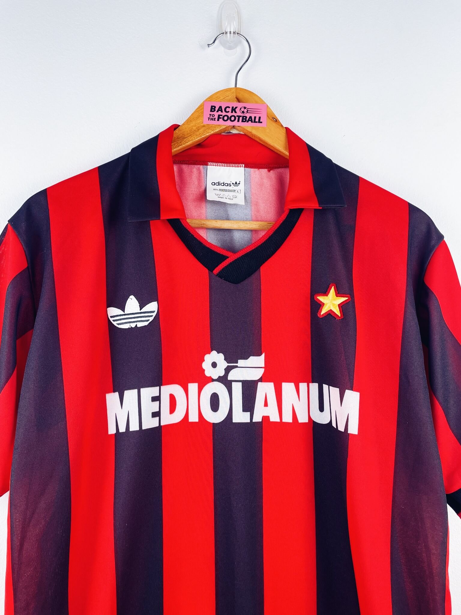 Le maillot : maillot vintage domicile AC Milan 1991/1992. L’étoile et le logo Adidas Trefoil sont brodés, le sponsor Mediolanum est incrusté. Made in Italy. Très beau maillot rétro du Milan AC !