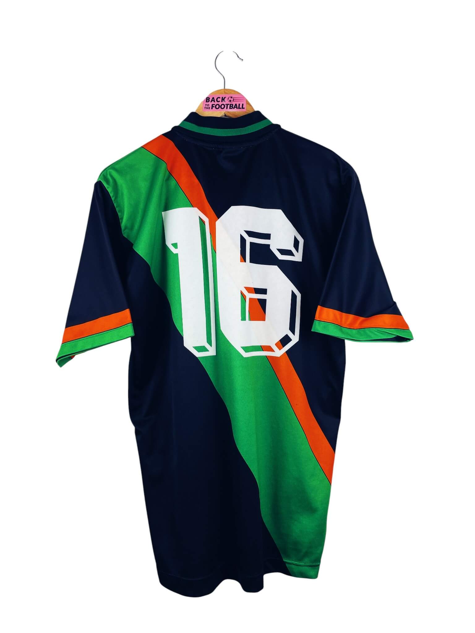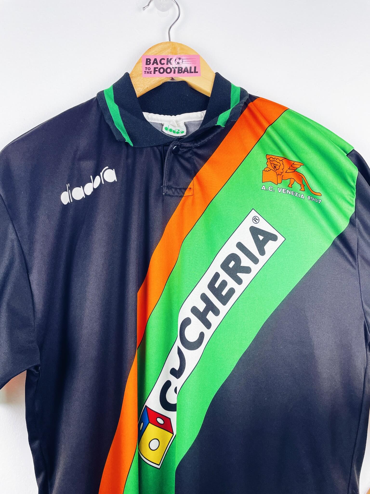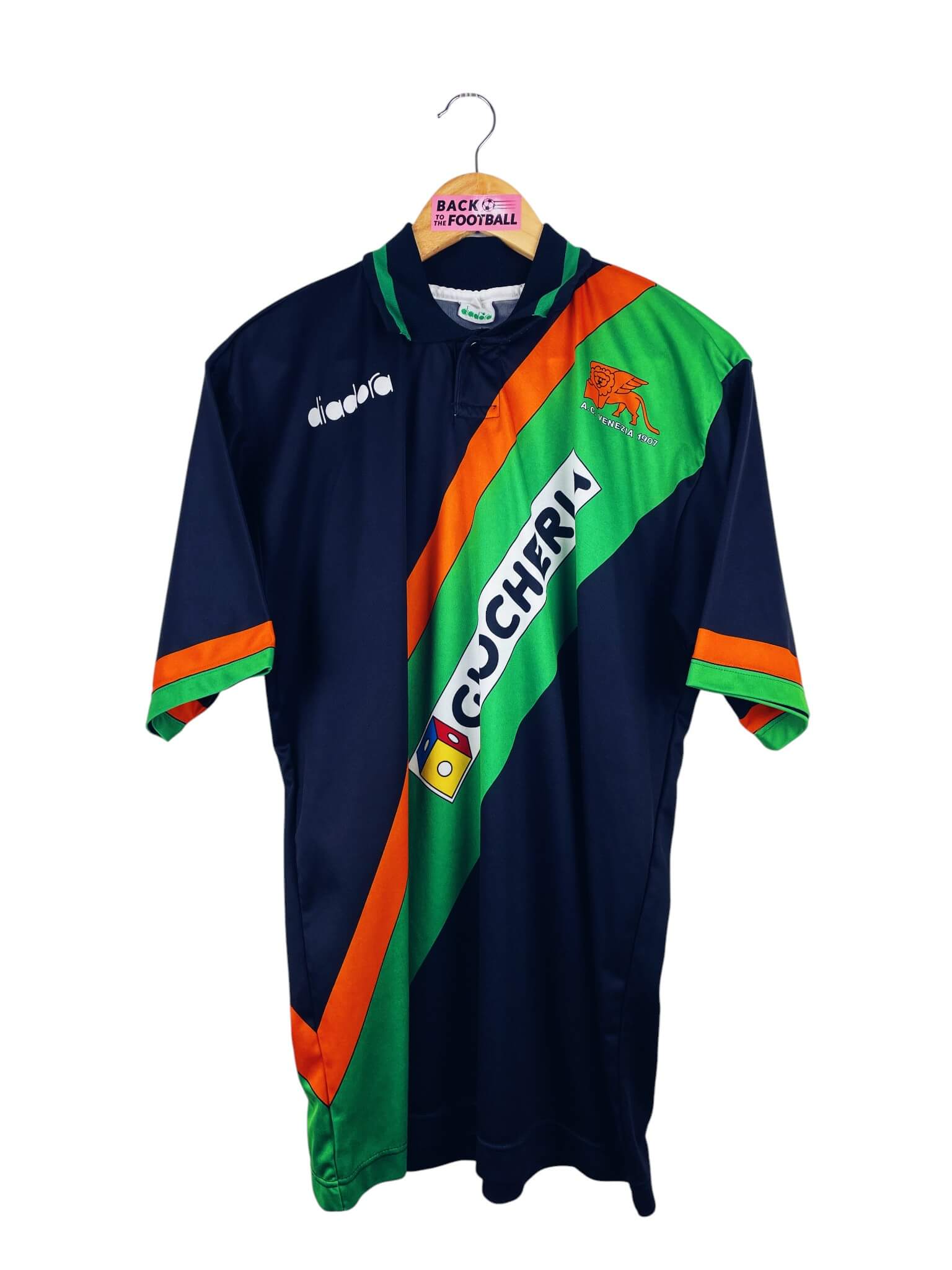 Le maillot : maillot vintage domicile de Venezia 1992/1993. L’écusson, le logo Diadora et le sponsor Giocheria sont incrustés, le numéro 16 est en feutrine. Très beau maillot rétro de Venise !