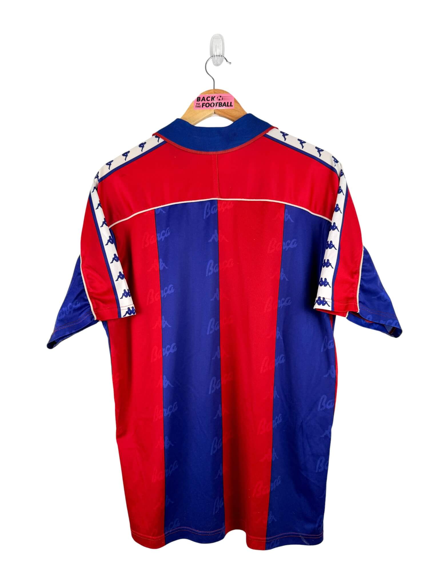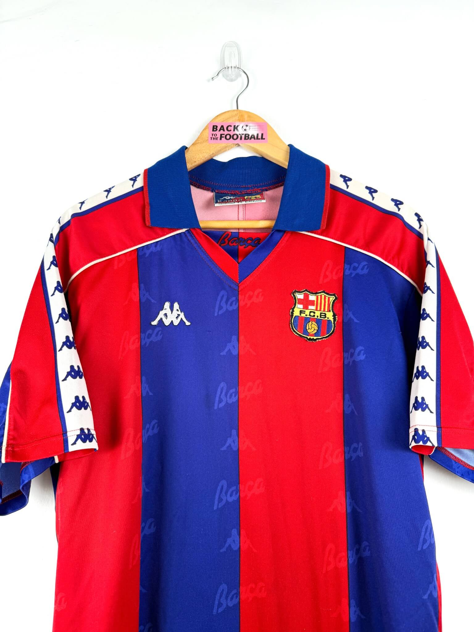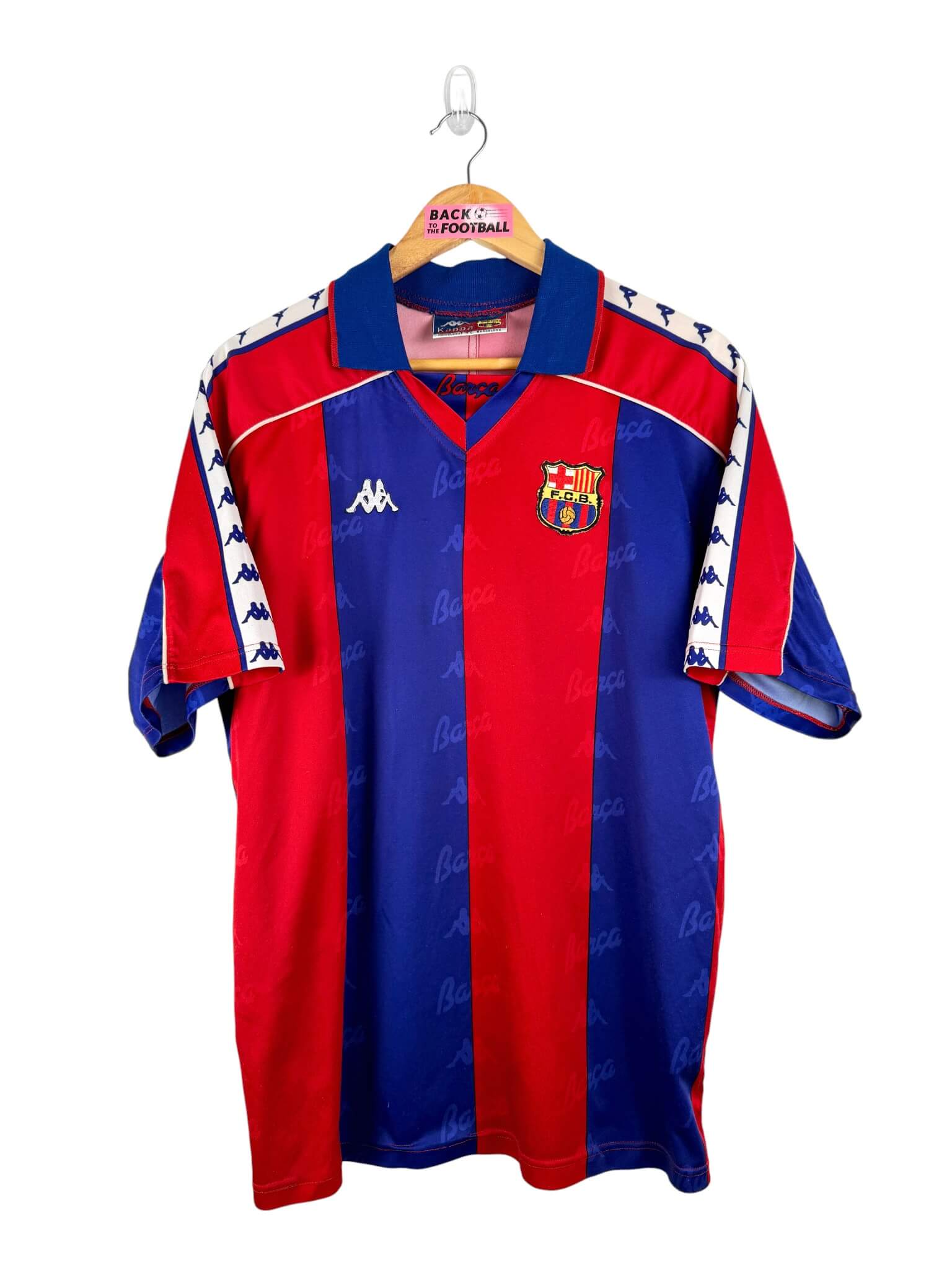 Le maillot : maillot vintage domicile du FC Barcelone 1992/1995. L’écusson et le logo Kappa sont brodés. La mention « Barca » et le logo Kappa sont en tramé sur tout le maillot. Très beau maillot rétro de Barcelone !