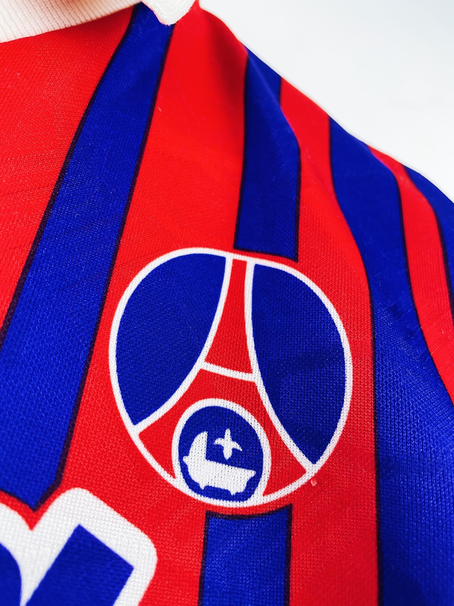 Histoire : énorme saison des parisiens qui remporteront leur deuxième championnat de leur histoire, devant notamment l’Olympique de Marseille… Ils ne quitteront pas leur 1ère place depuis la 13ème journée, avec seulement 3 défaites cette saison. En coupe de France, ils seront éliminés en quarts contre le RC Lens. Et ils iront jusqu’en demi-finale de la Coupe d’Europe des vainqueurs de coupe, après avoir éliminé le Real Madrid en quarts. Ils tomberont alors 2 buts à 1 contre Arsenal, futur vainqueur du tournoi. David Ginola sera le meilleur buteur du club avec 18 buts. Quelques joueurs : Weah, Raí, Le Guen, Guerin, Fournier, Roche, Ricardo, Kombouaré, Lama…