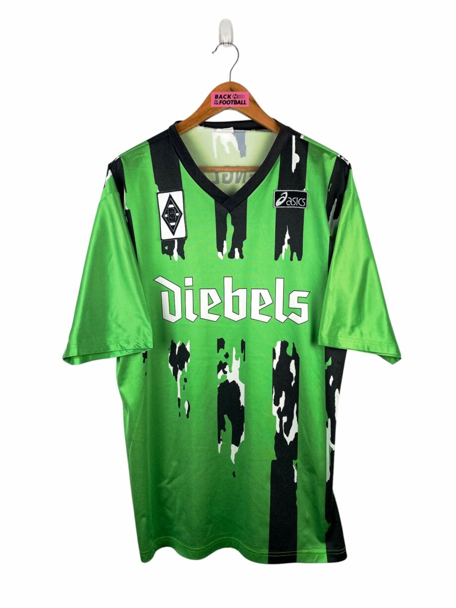 Le maillot : maillot vintage extérieur du Borussia Monchengladbach 1994/1995. L’écusson et le logo Asics sont brodés, le sponsor Diebels est incrusté. Très beau maillot rétro du Borussia Monchengladbach !