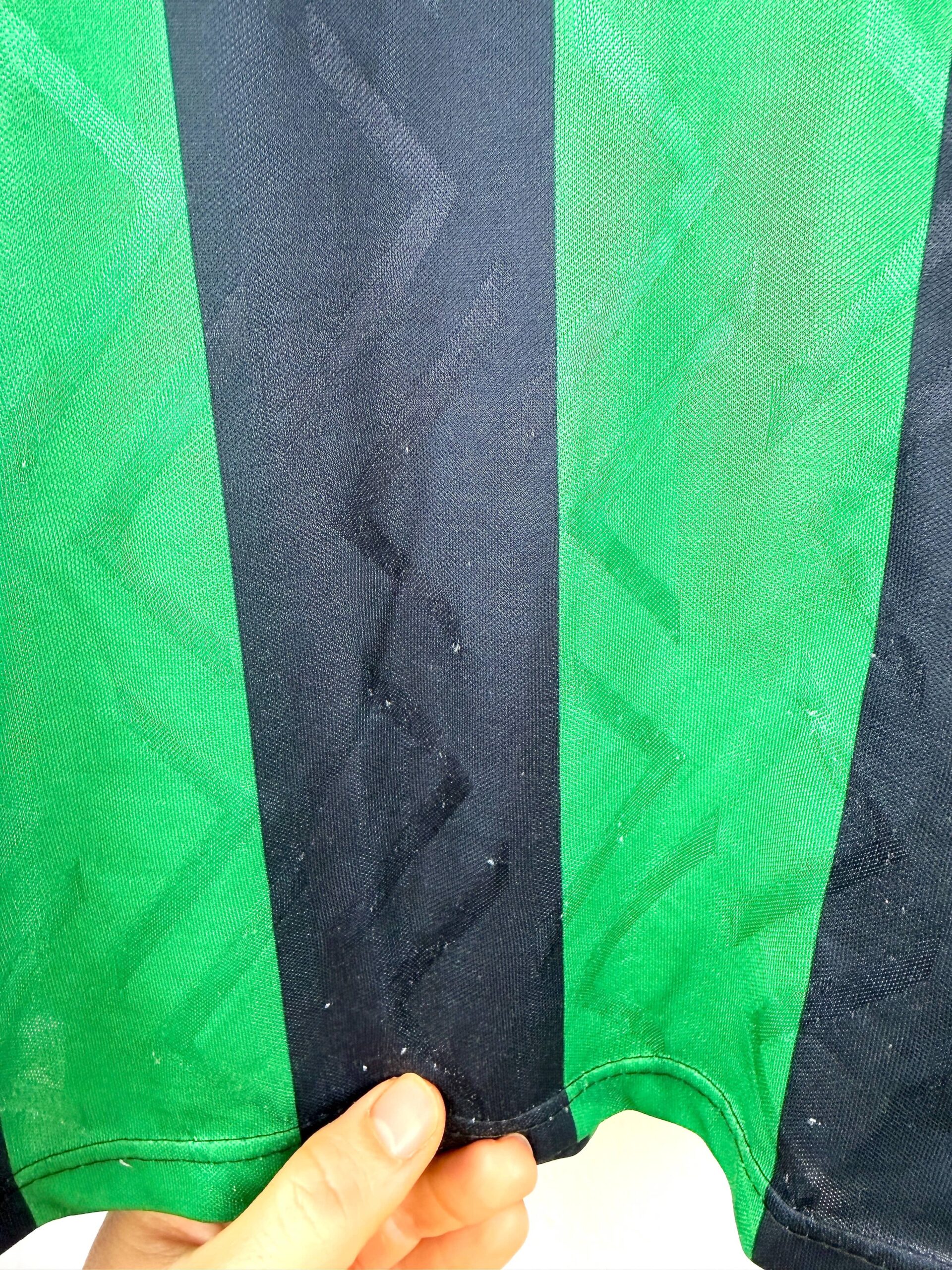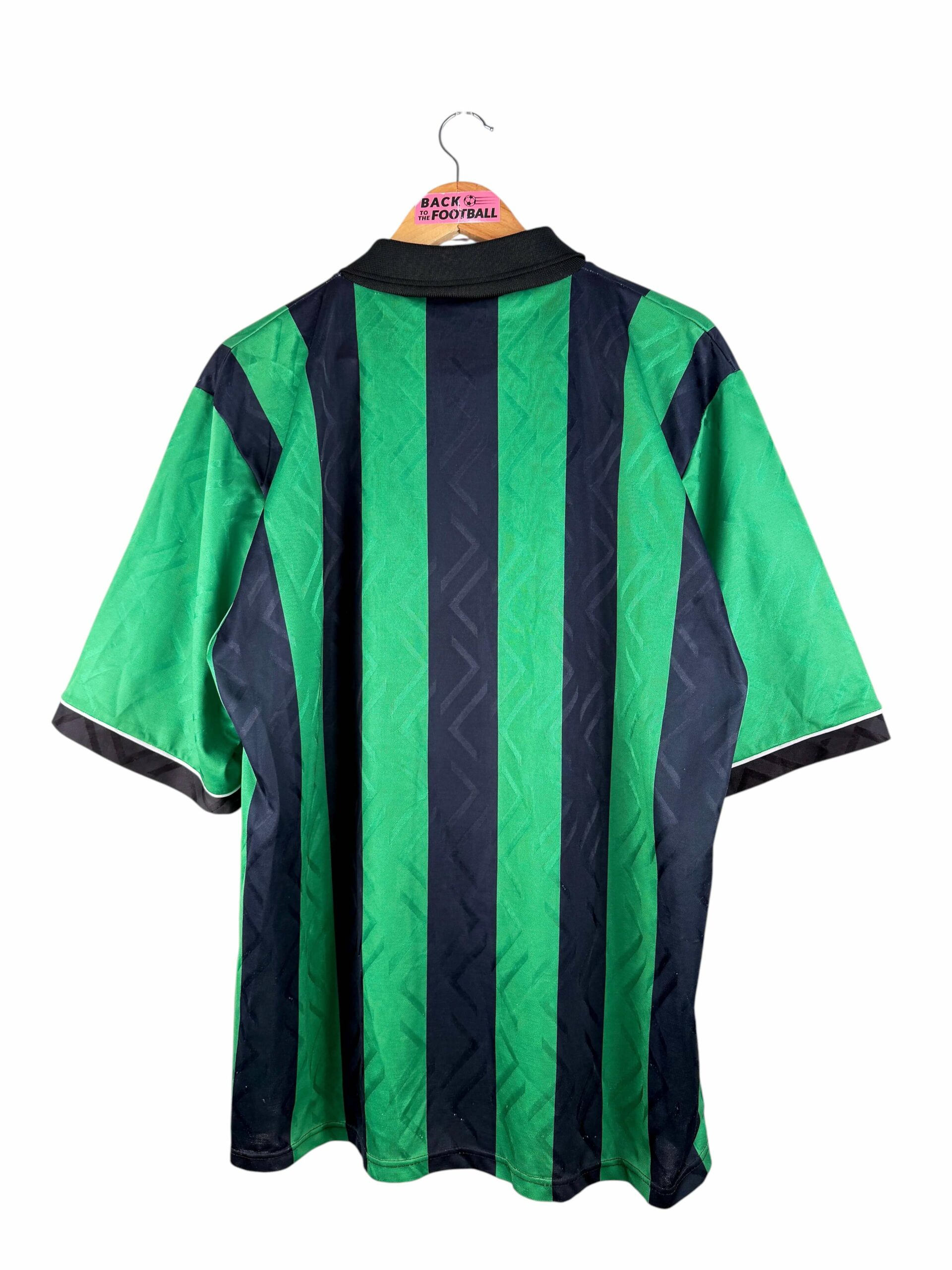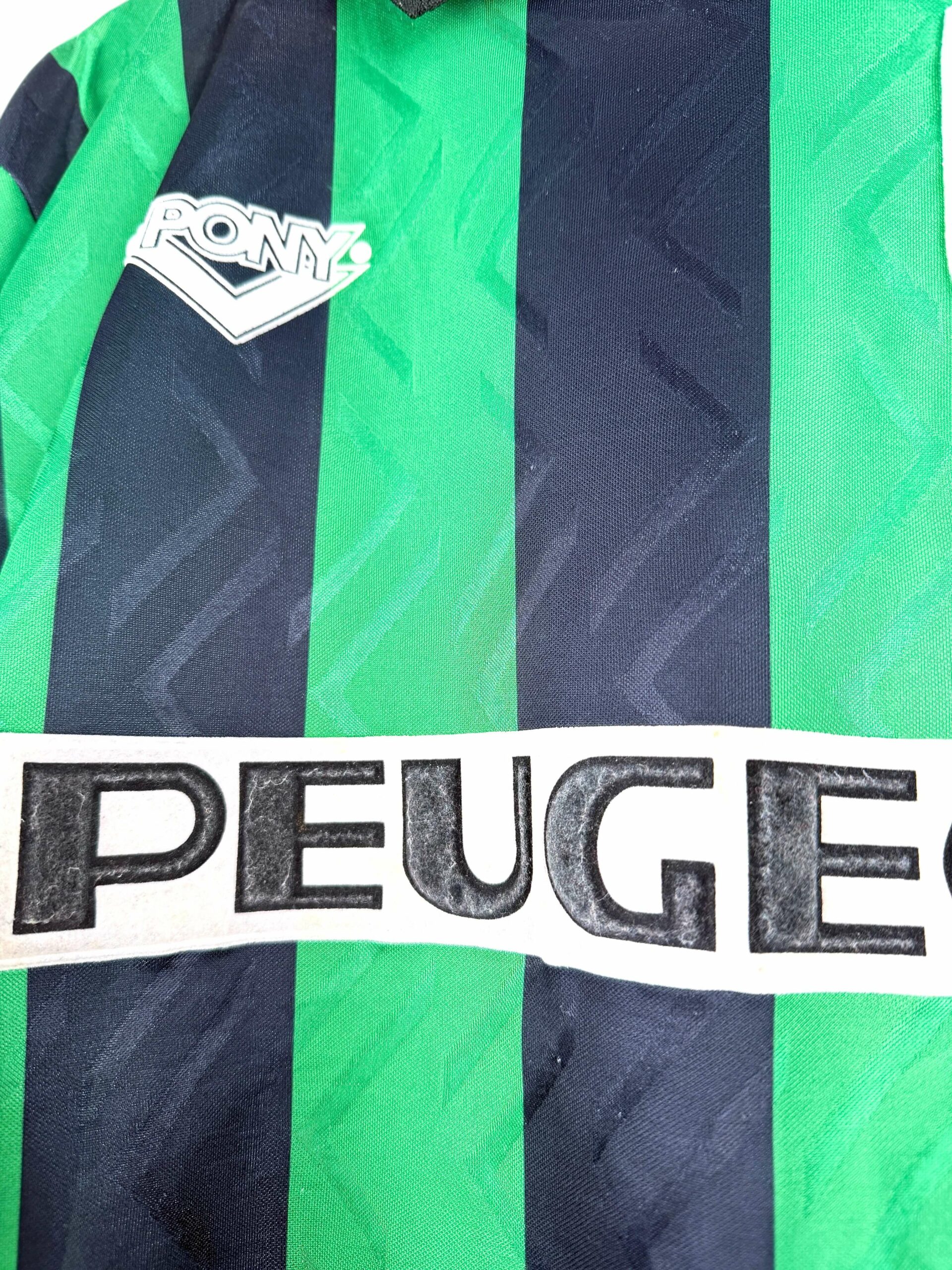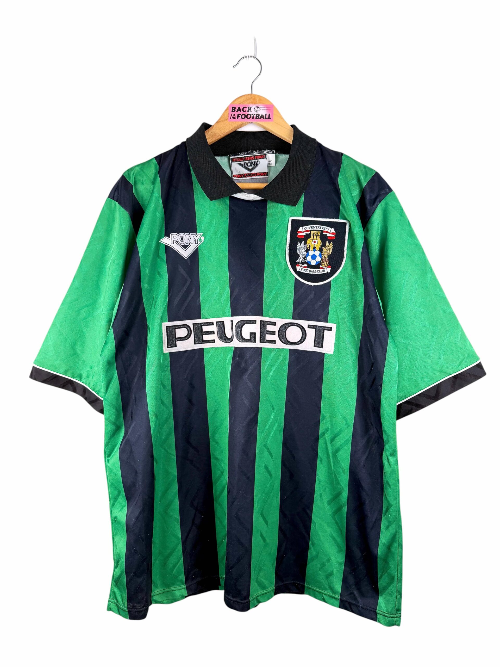 Le maillot : maillot vintage extérieur de Coventry City 1994/1995. L’écusson est brodé, le logo Pony et le sponsor Peugeot sont en feutrine. Très beau maillot rétro de Coventry !