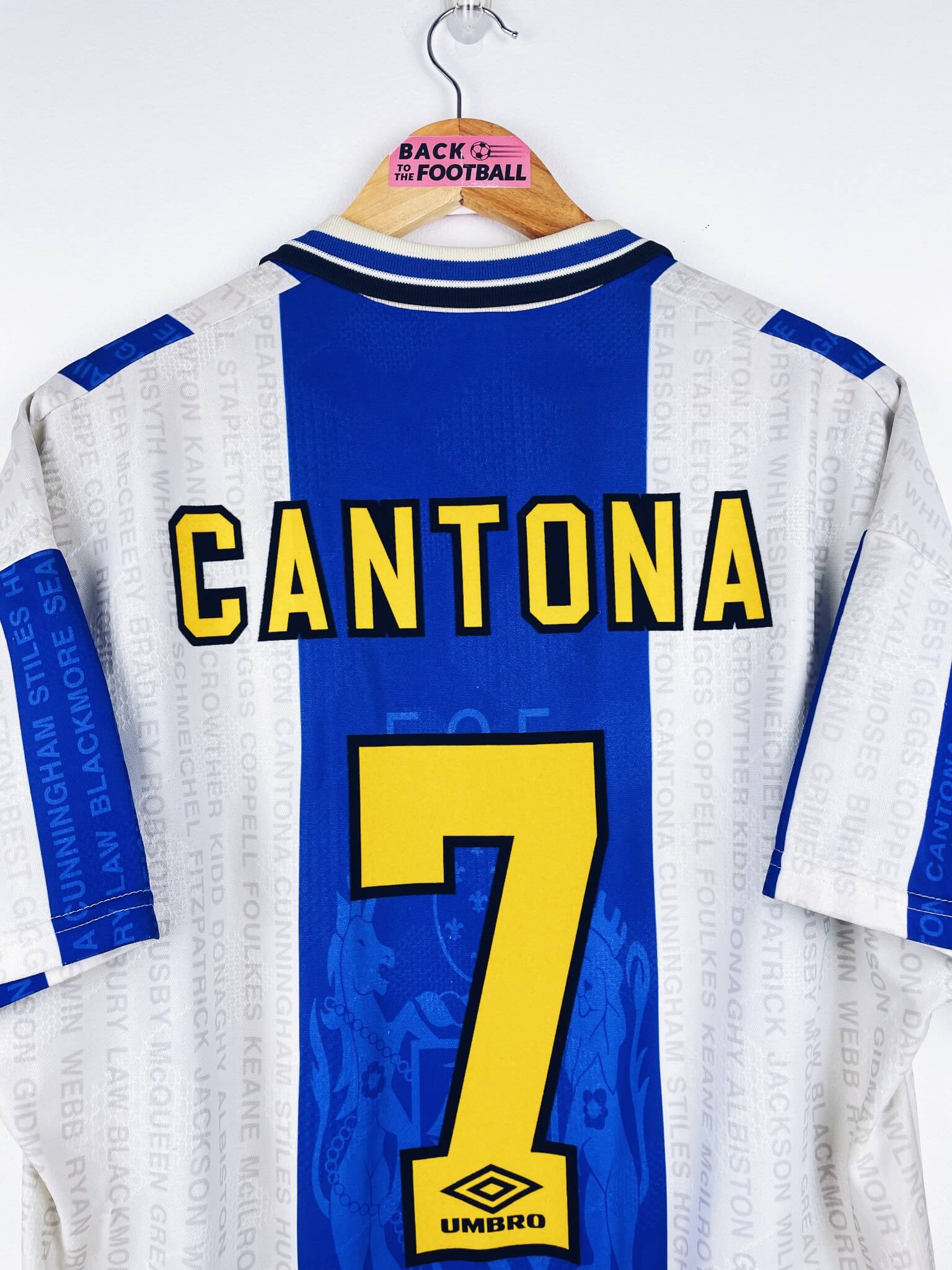 Le maillot : maillot vintage third de Manchester United 1994/1996 floqué Cantona #7. L’écusson est brodé, le logo Umbro et le sponsor Sharp sont incrustés, Cantona #7 est en feutrine. Le nom des joueurs est incrusté sur tout le maillot. Très beau maillot rétro de Manchester United !