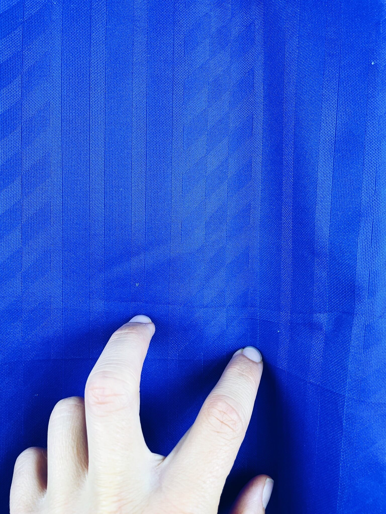 Histoire : le maillot marque les débuts d’Aimé Jacquet à la tête des bleus. Zidane, alors à Bordeaux, marquera un doublé sur son premier match au mois d’août 1994 contre la République Tchèque, devant son public à Chaban Delmas. L’année suivante, l’équipe de France doit faire sans Cantona, suspendu par la FIFA à cause de son coup de pied contre le supporter. Après plusieurs matchs nuls, les bleus inversent la tendance et valident leur ticket pour l’Euro 1996, avec notamment une victoire 10-0 contre l’Azerbaïdjan. Quelques joueurs : Zidane, Cantona, Dugarry, Papin, Ginola, Deschamps, Djorkaeff, Lizarazu, Blanc, Desailly, Thuram, Barthez…
