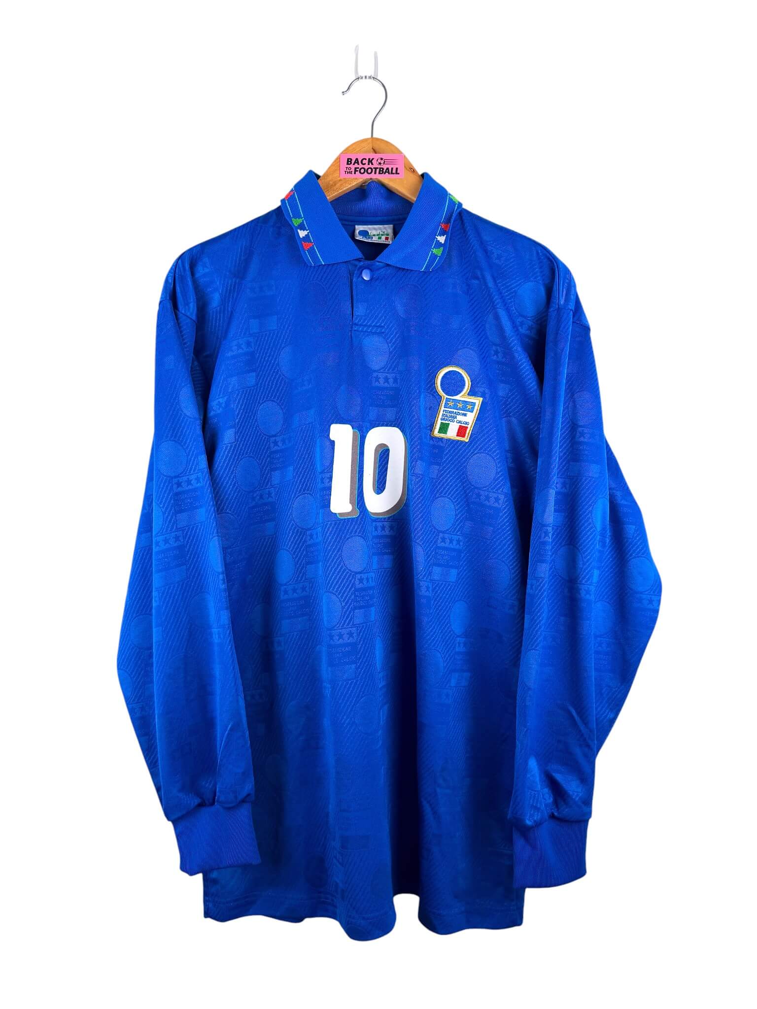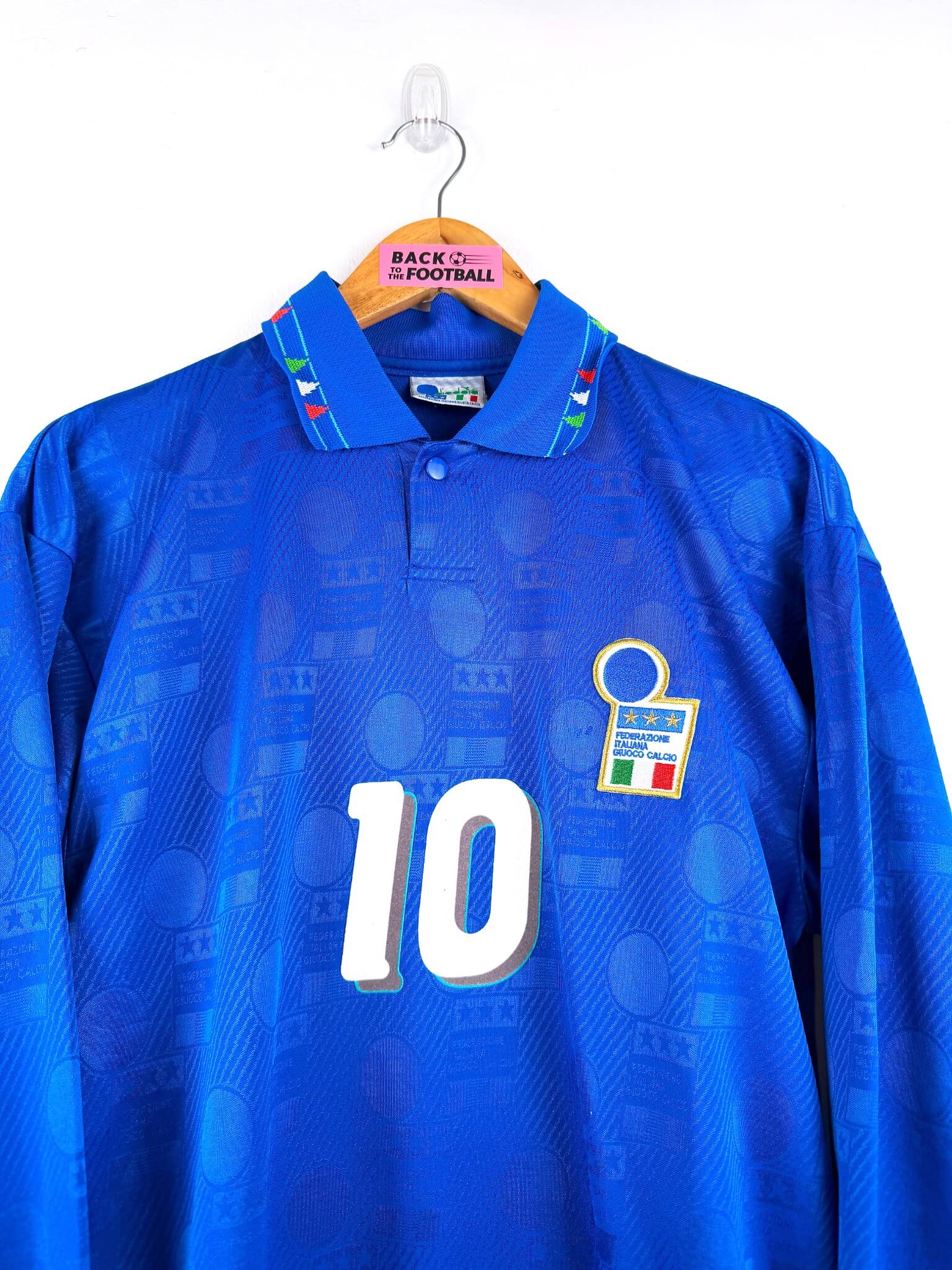 T’es fan de la Squadra Azzurra? Tu connais la finale de la Coupe du Monde 2006 par coeur? Tu vénères Buffon, Cannavaro, Maldini, Pirlo ou Del Piero? Tu avais la même coupe que Roberto Baggio? Tu adores le Catenaccio? Tu détestes l’équipe de France? Alors tu devrais trouver ton bonheur parmi nos maillots de foot vintage de l’Italie. Et si t’as des pépites à vendre, on peut aussi racheter ton maillot collector de la Nazionale.