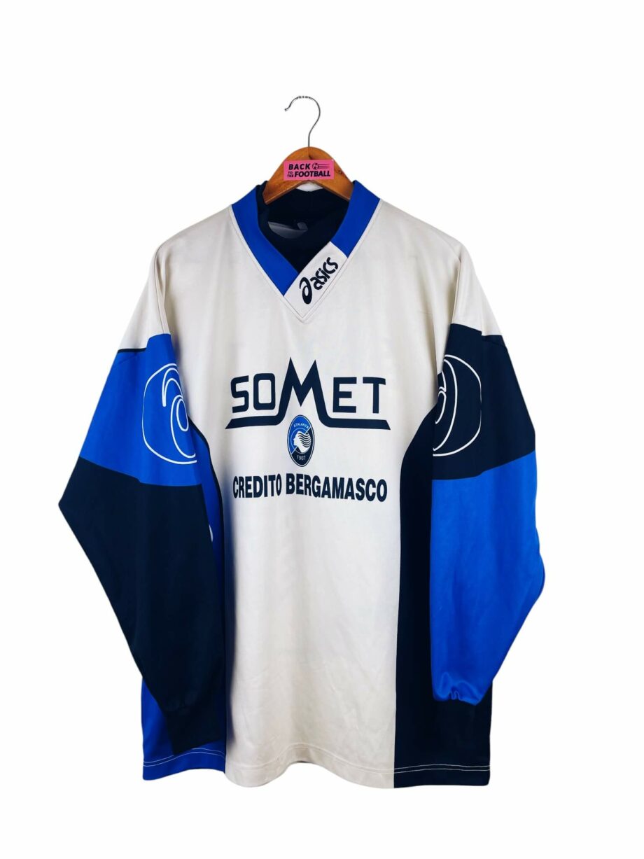 Le maillot : maillot vintage entrainement d’Atalanta 1995/1996 manches longues. L’écusson et les sponsors sont incrustés, le logo Asics est en feutrine. Très beau maillot rétro d’Atalanta !