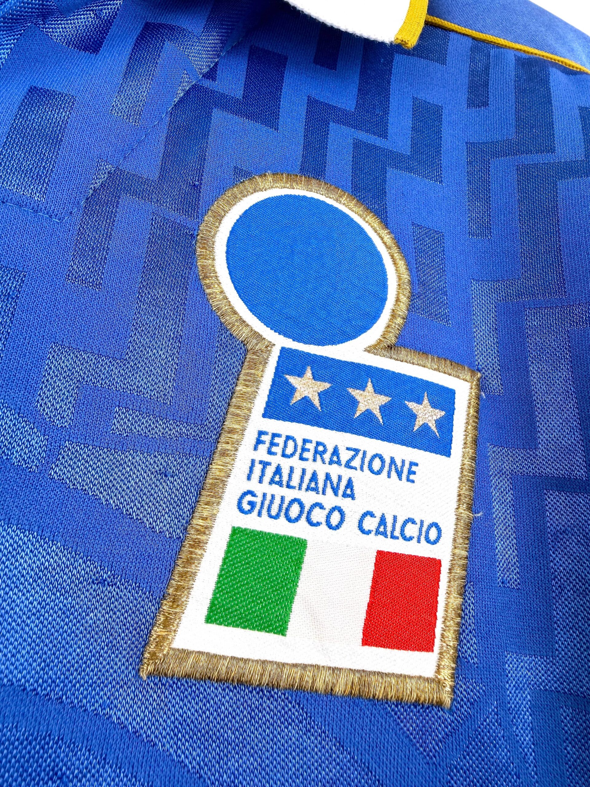 T’es fan de la Squadra Azzurra? Tu connais la finale de la Coupe du Monde 2006 par coeur? Tu vénères Buffon, Cannavaro, Maldini, Pirlo ou Del Piero? Tu avais la même coupe que Roberto Baggio? Tu adores le Catenaccio? Tu détestes l’équipe de France? Alors tu devrais trouver ton bonheur parmi nos maillots de foot vintage de l’Italie. Et si t’as des pépites à vendre, on peut aussi racheter ton maillot collector de la Nazionale.