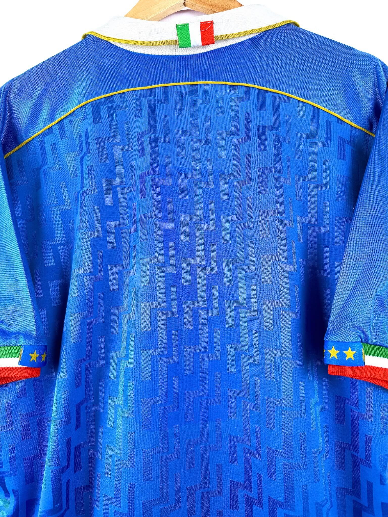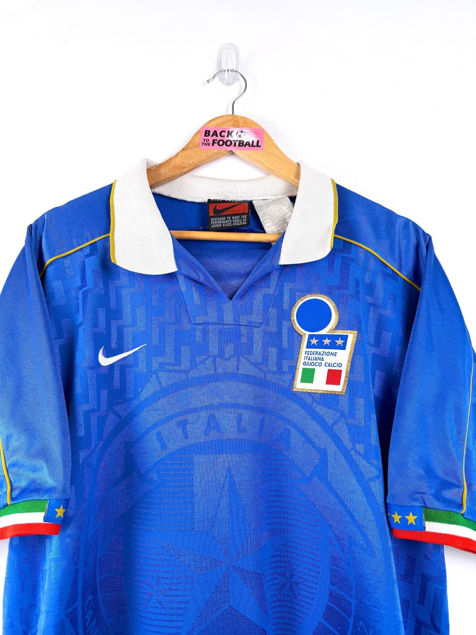 Un maillot vintage de l’Italie, ça te tente? Back To The Football t’a sélectionné la crème de la crème des maillots rétros de l’Italie. Chaque maillot de l’Italie est unique et authentique. Qui dit maillot d’époque dit stock limité, premier arrivé, premier servi !