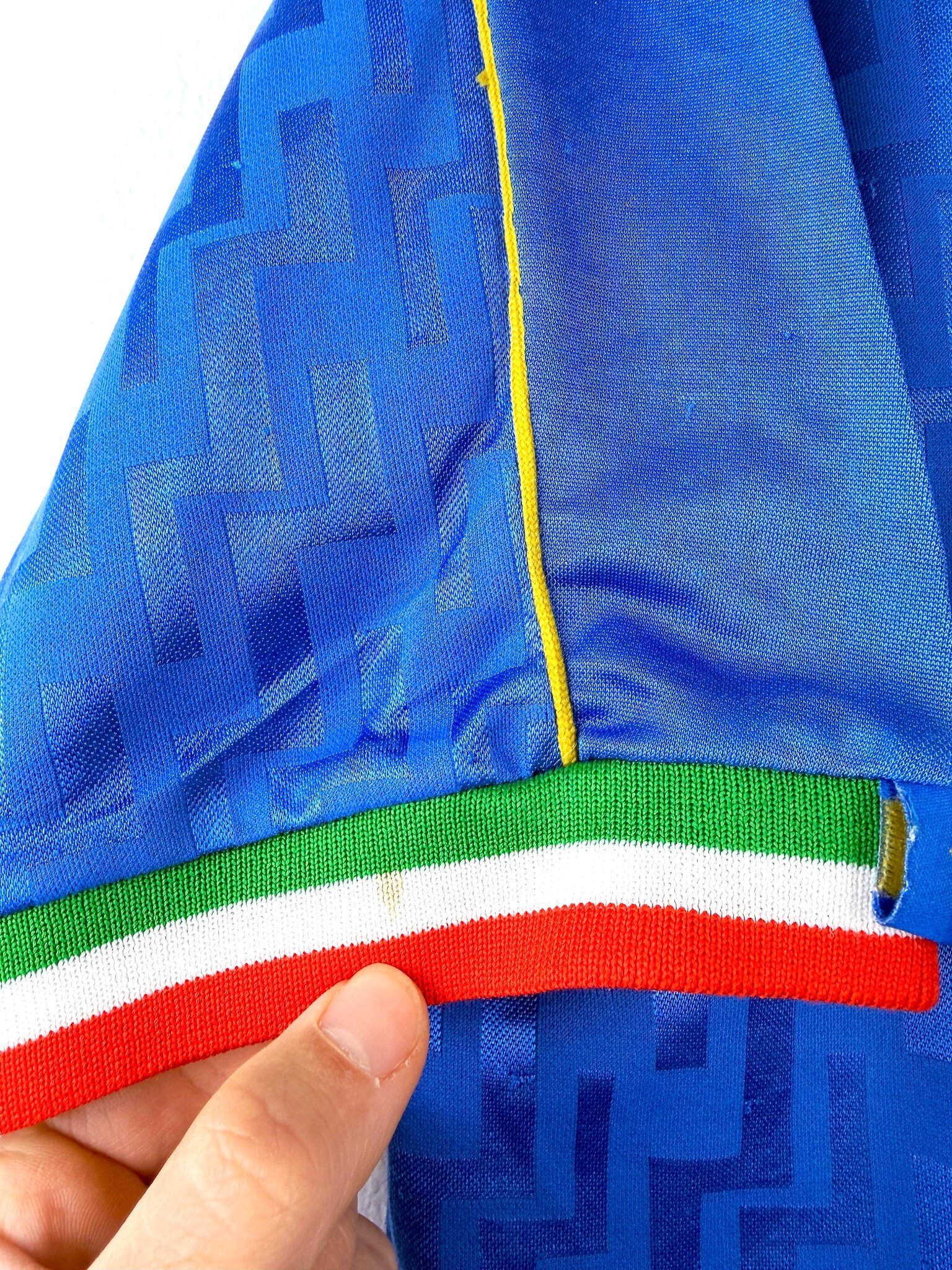 T’es fan de la Squadra Azzurra? Tu connais la finale de la Coupe du Monde 2006 par coeur? Tu vénères Buffon, Cannavaro, Maldini, Pirlo ou Del Piero? Tu avais la même coupe que Roberto Baggio? Tu adores le Catenaccio? Tu détestes l’équipe de France? Alors tu devrais trouver ton bonheur parmi nos maillots de foot vintage de l’Italie. Et si t’as des pépites à vendre, on peut aussi racheter ton maillot collector de la Nazionale.