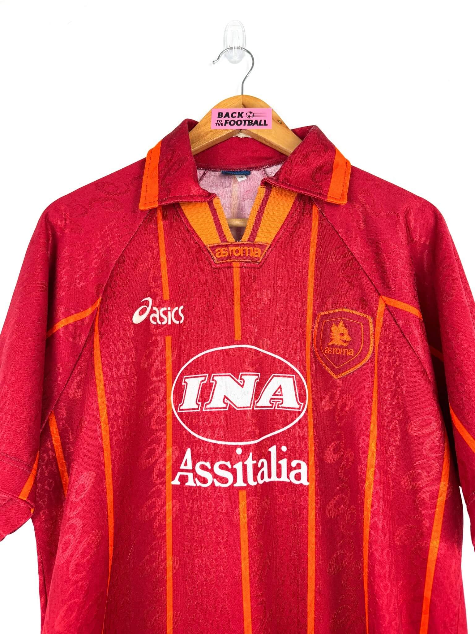 Tu as un tatouage de Francesco Totti sur l’épaule? Tu penses encore au Scudetto de 2000/2001 grâce au trio Batistuta, Delvecchio et Montella? Tu as des frissons en repensant à la remontada contre le Barça en 2018 ? Tu ne rates jamais le derby della capitale contre la Lazio ? Alors tu trouveras ton bonheur parmi les maillots de foot vintage de l’AS Rome de Back to the football. Et si t’as des pépites à vendre, on peut aussi racheter ton maillot collector de Rome.