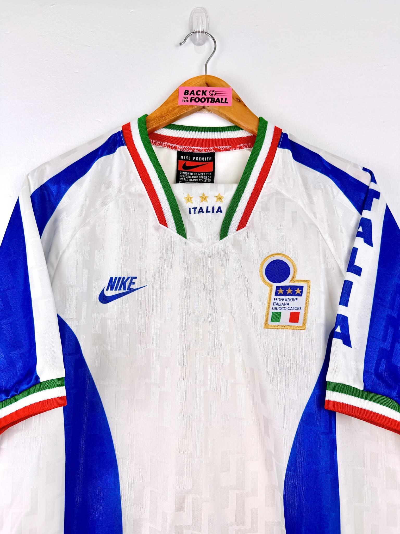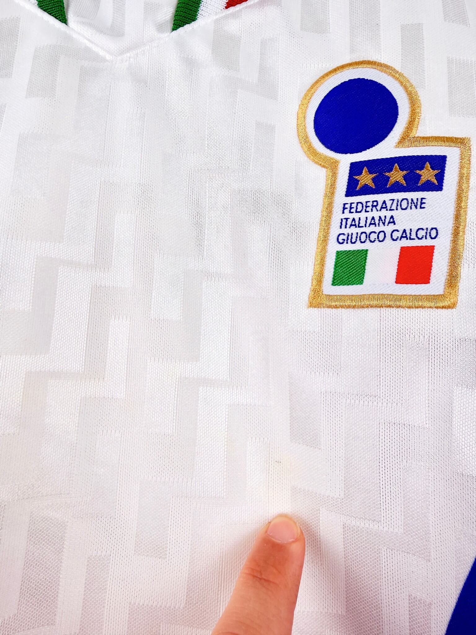 T’es fan de la Squadra Azzurra? Tu connais la finale de la Coupe du Monde 2006 par coeur? Tu vénères Buffon, Cannavaro, Maldini, Pirlo ou Del Piero? Tu avais la même coupe que Roberto Baggio? Tu adores le Catenaccio? Tu détestes l’équipe de France? Alors tu devrais trouver ton bonheur parmi nos maillots de foot vintage de l’Italie. Et si t’as des pépites à vendre, on peut aussi racheter ton maillot collector de la Nazionale.