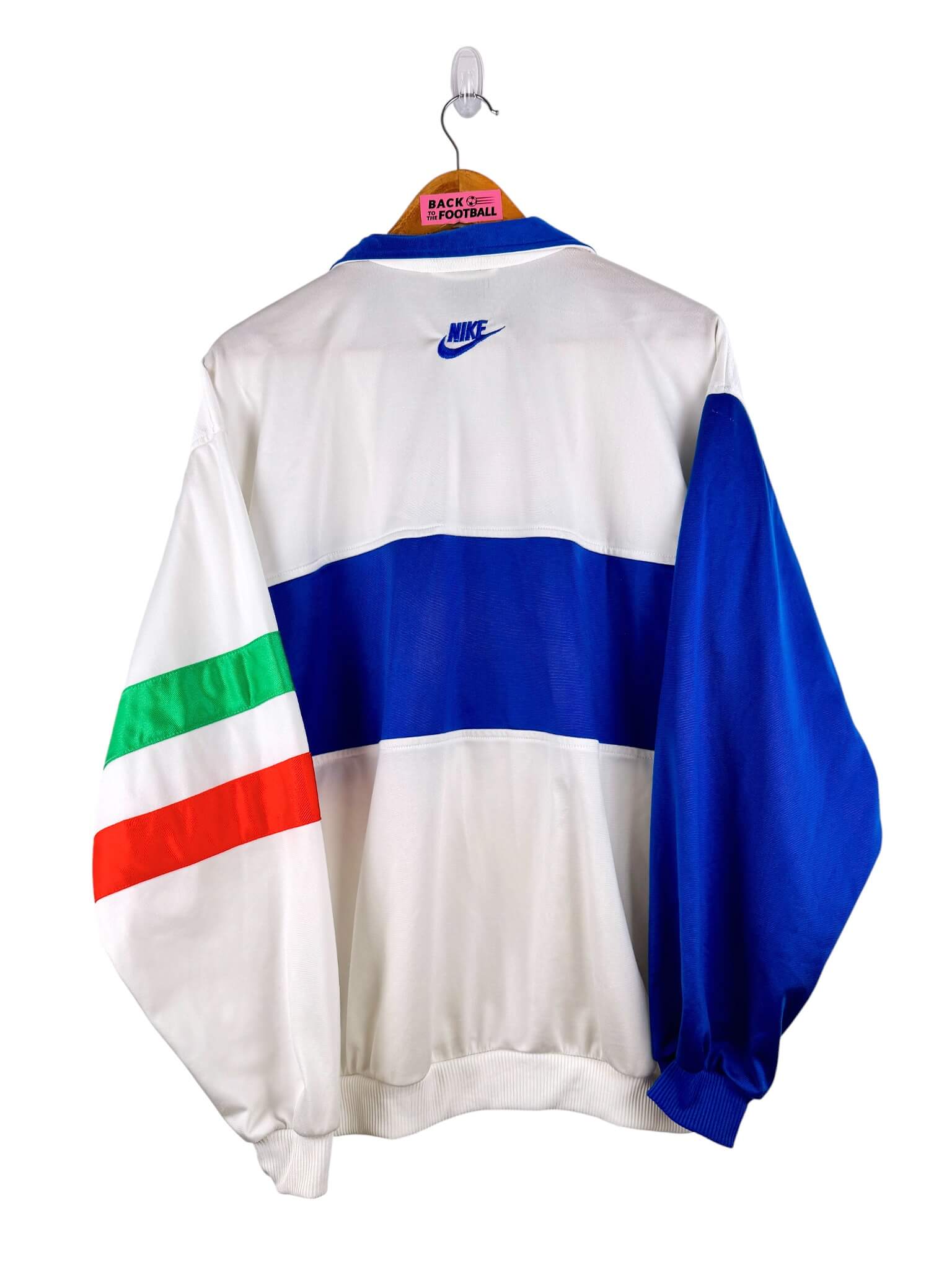 T’es fan de la Squadra Azzurra? Tu connais la finale de la Coupe du Monde 2006 par coeur? Tu vénères Buffon, Cannavaro, Maldini, Pirlo ou Del Piero? Tu avais la même coupe que Roberto Baggio? Tu adores le Catenaccio? Tu détestes l’équipe de France? Alors tu devrais trouver ton bonheur parmi nos maillots de foot vintage de l’Italie. Et si t’as des pépites à vendre, on peut aussi racheter ton maillot collector de la Nazionale.