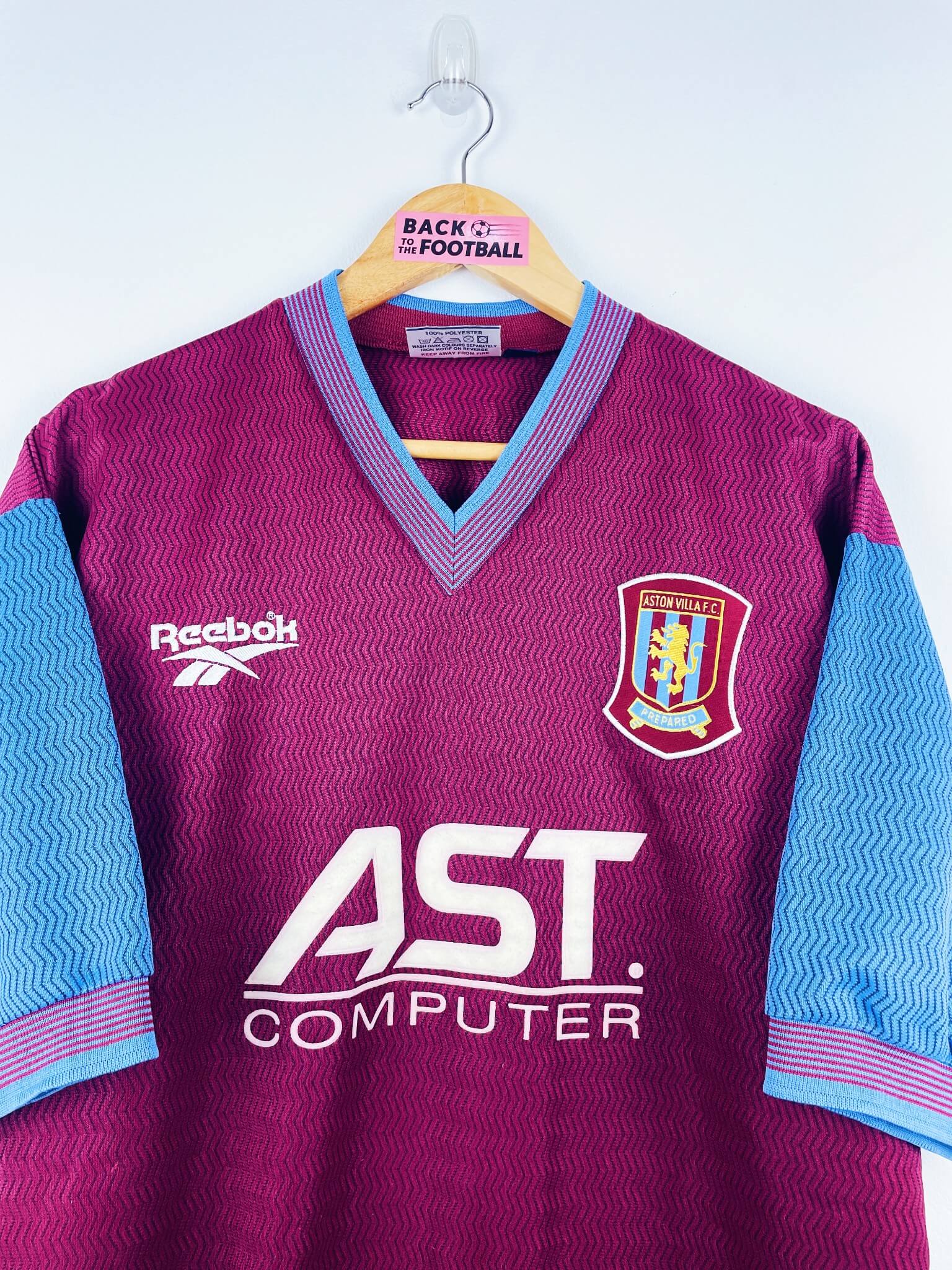 Le maillot : maillot vintage domicile d’Aston Villa 1997/1998. L’écusson et le logo Reebok sont brodés, le sponsor AST Computer est en feutrine. Très beau maillot rétro d’Aston Villa !