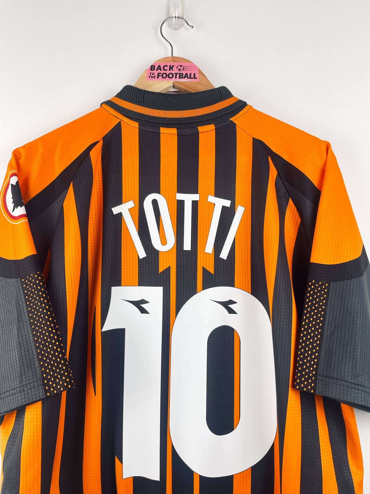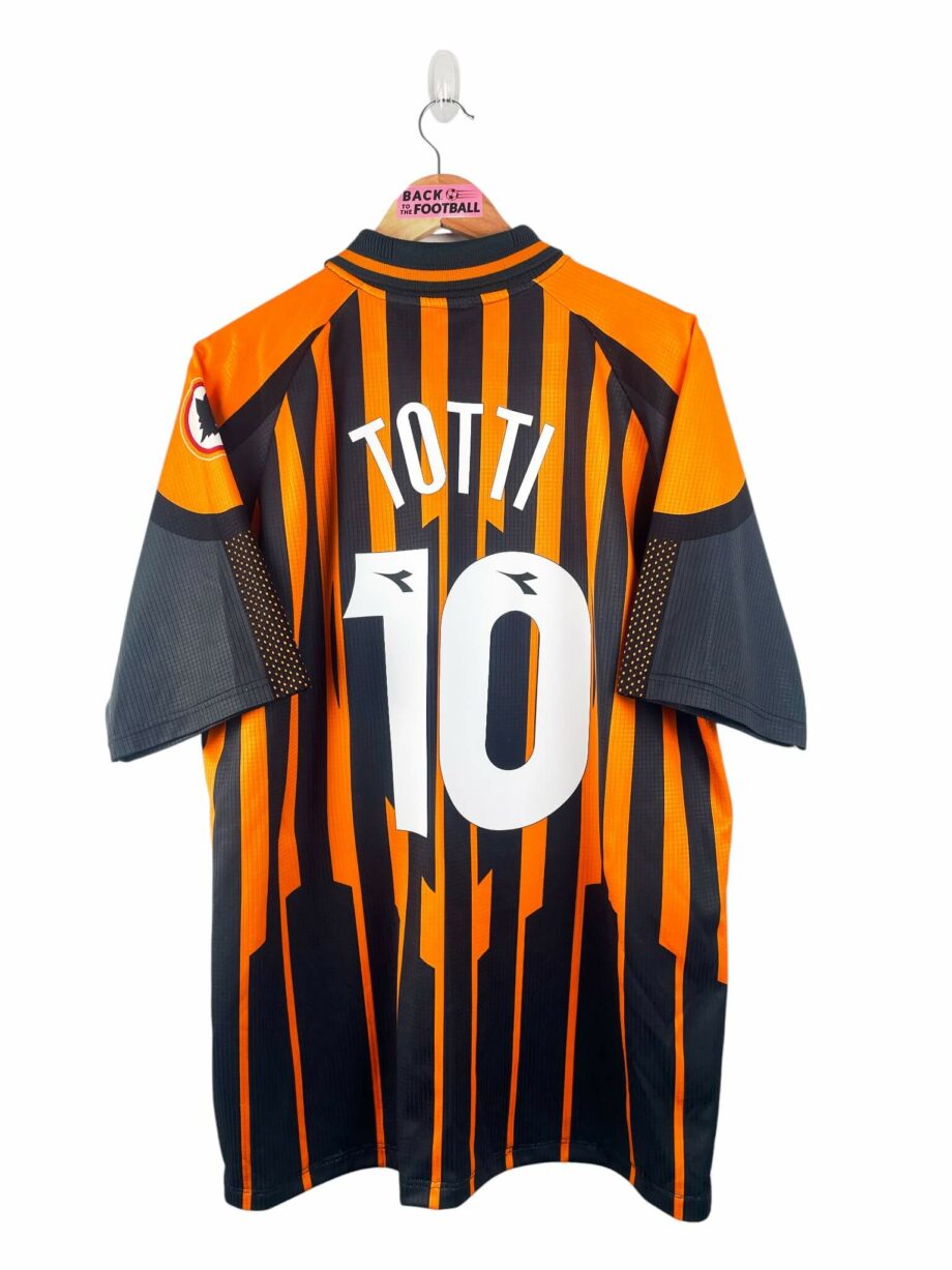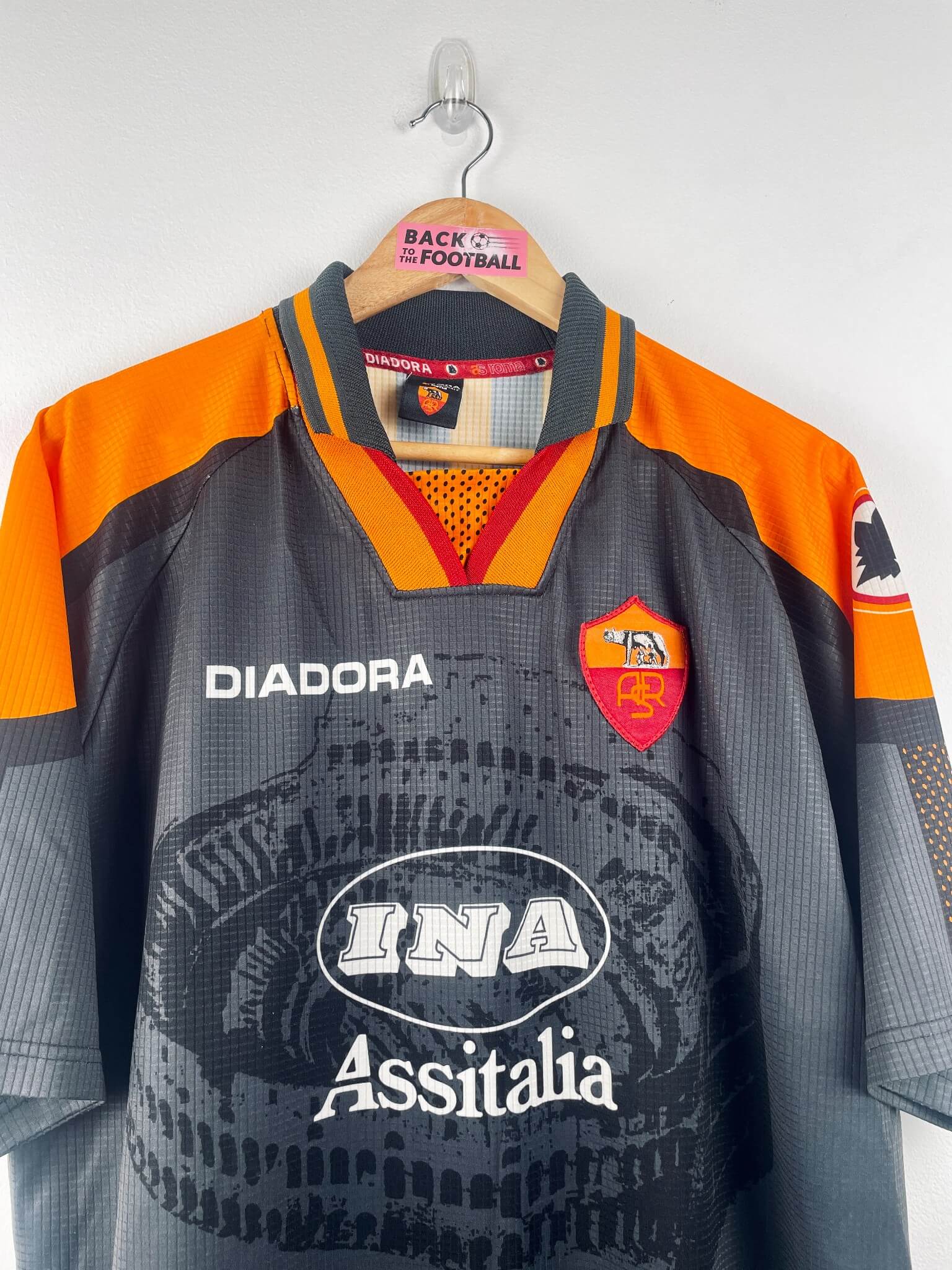 Tu as un tatouage de Francesco Totti sur l’épaule? Tu penses encore au Scudetto de 2000/2001 grâce au trio Batistuta, Delvecchio et Montella? Tu as des frissons en repensant à la remontada contre le Barça en 2018 ? Tu ne rates jamais le derby della capitale contre la Lazio ? Alors tu trouveras ton bonheur parmi les maillots de foot vintage de l’AS Rome de Back to the football. Et si t’as des pépites à vendre, on peut aussi racheter ton maillot collector de Rome.
