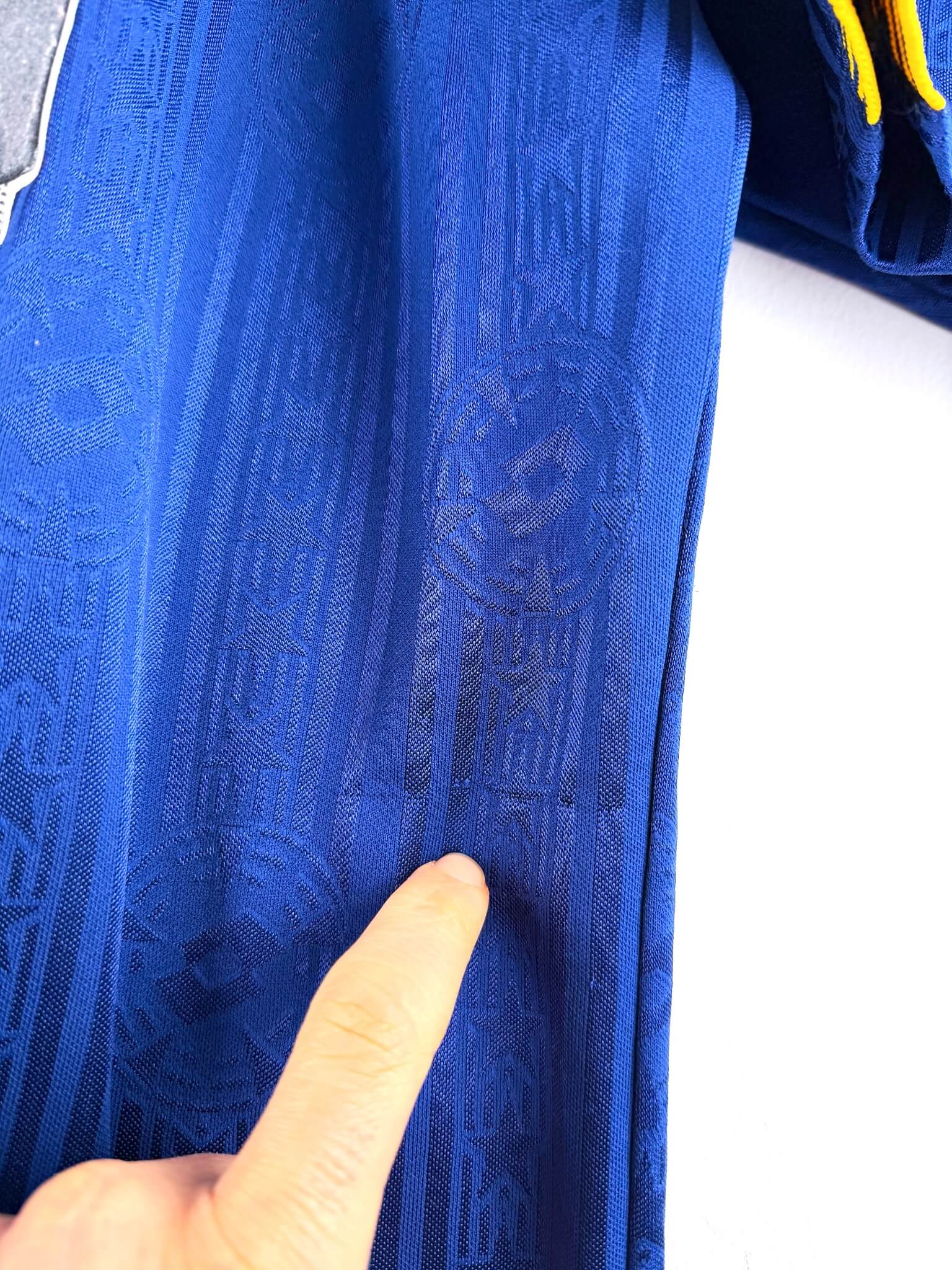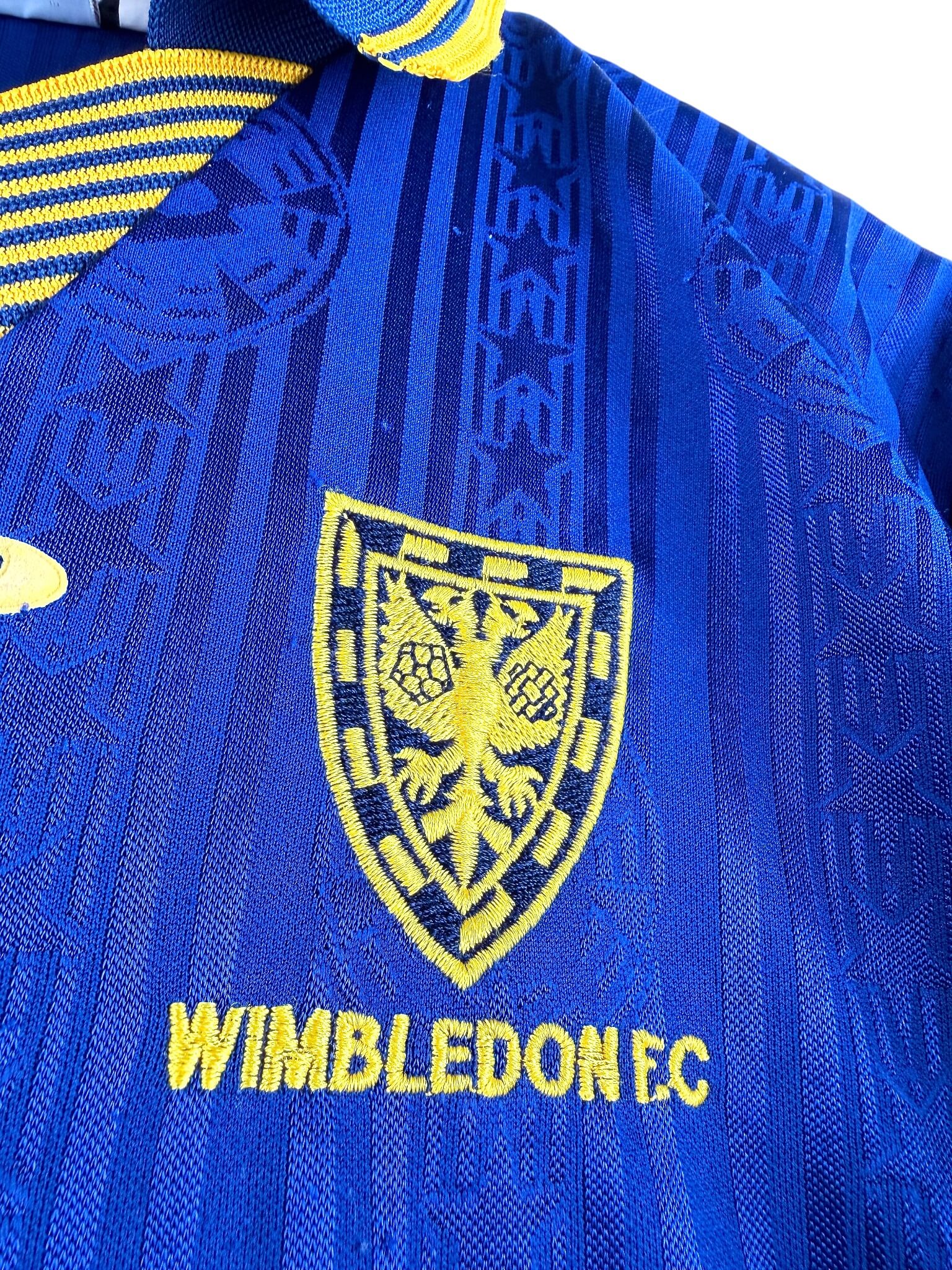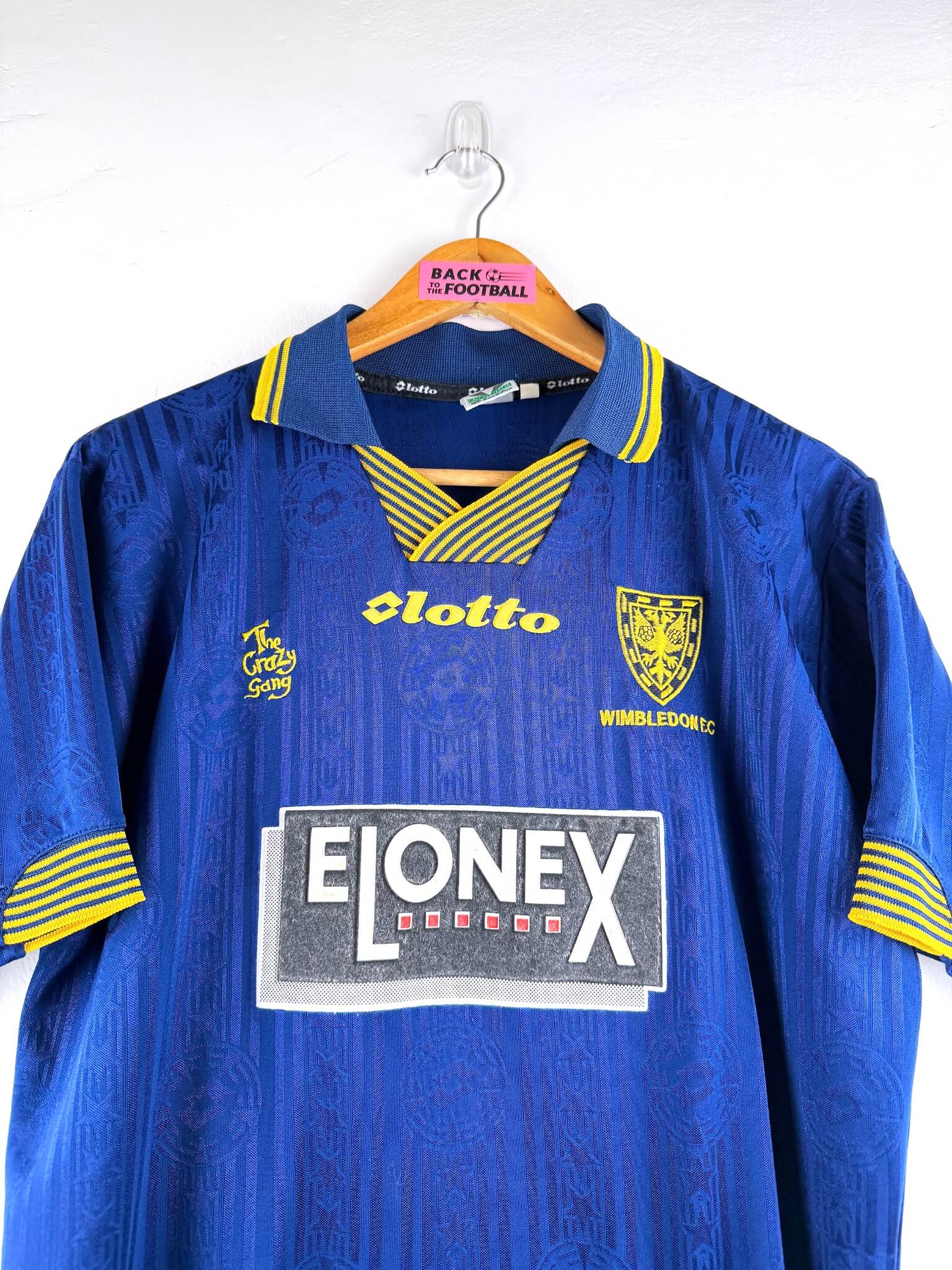 Le maillot : maillot vintage domicile de Wimbledon 1997/1998. L’écusson et le logo The Crazy Gang sont brodés, le logo Lotto et le sponsor Elonex sont en feutrine. Le logo Lotto est visible en tramé sur tout le maillot. Très beau maillot rétro de Wimbledon !