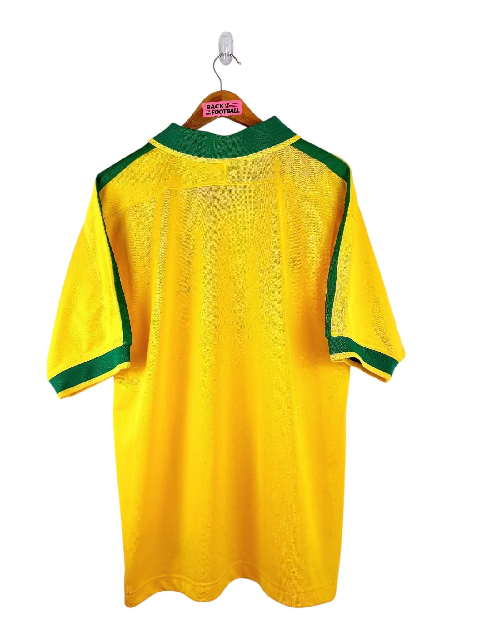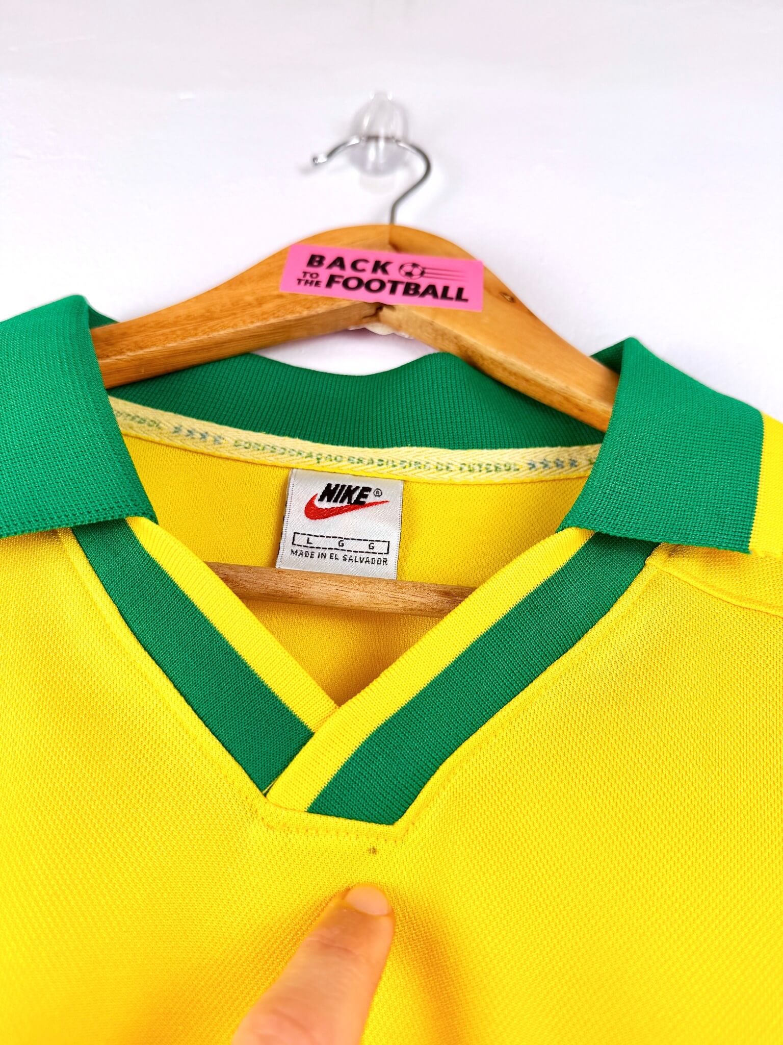 Le maillot : maillot vintage domicile du Brésil 1997/1998. L’écusson et le logo Nike sont brodés. Il diffère du maillot de la Coupe du Monde 98 par son col notamment. Très beau maillot rétro du Brésil !