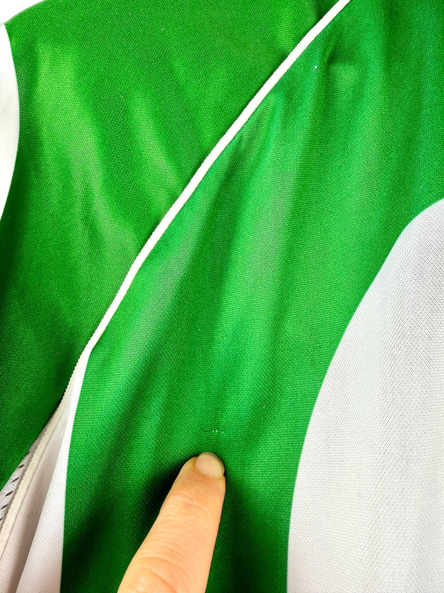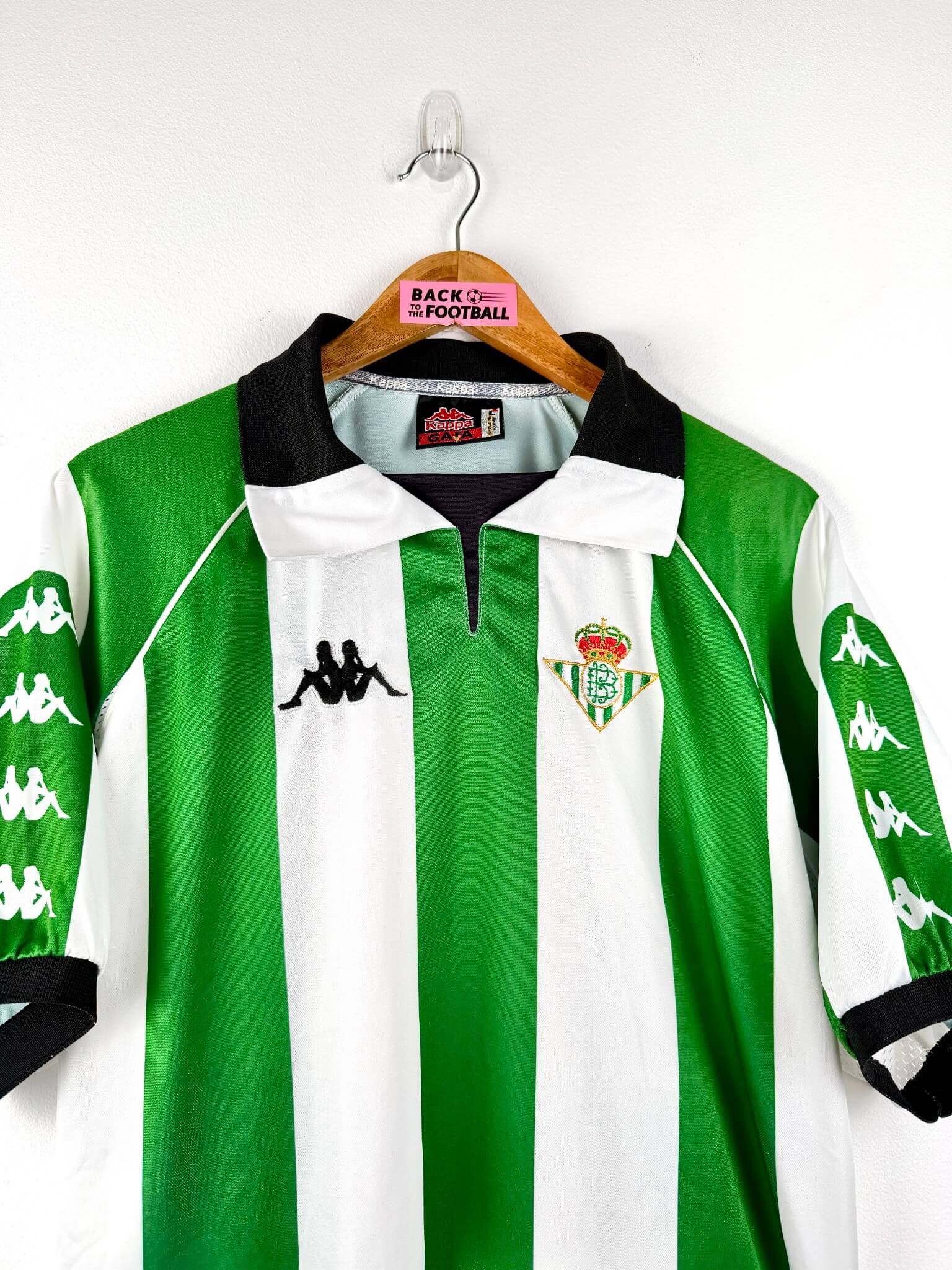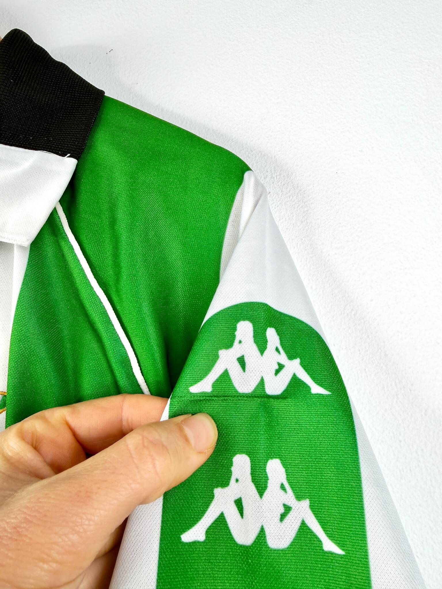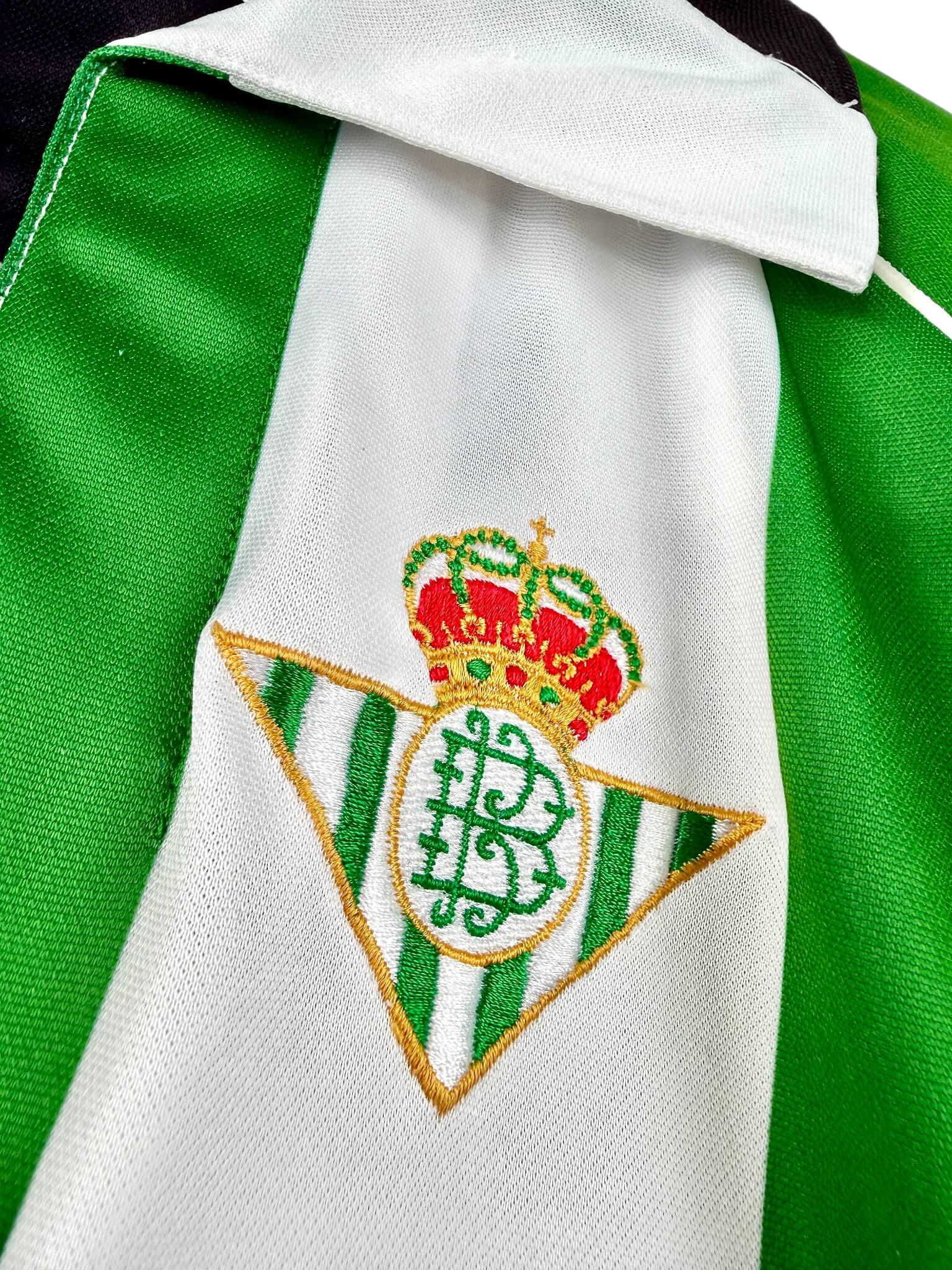 T’es fan des Verdiblancos? et de ce magnifique maillot aux rayures blanches et vertes? Tu attends un second titre en Liga comme l’arrivée du Messie? Pour toi la saison est sauvée du moment que le Betis remporte le derby de Séville? Tu trouves que c’est au stade Benito Villamarín qu’il y a la meilleure ambiance au monde? Tu vénères Joaquín? Alors tu devrais trouver ton bonheur parmi nos maillots de foot vintage du Real Betis. Et si t’as des pépites à vendre, on peut aussi racheter ton maillot collector du Betis.