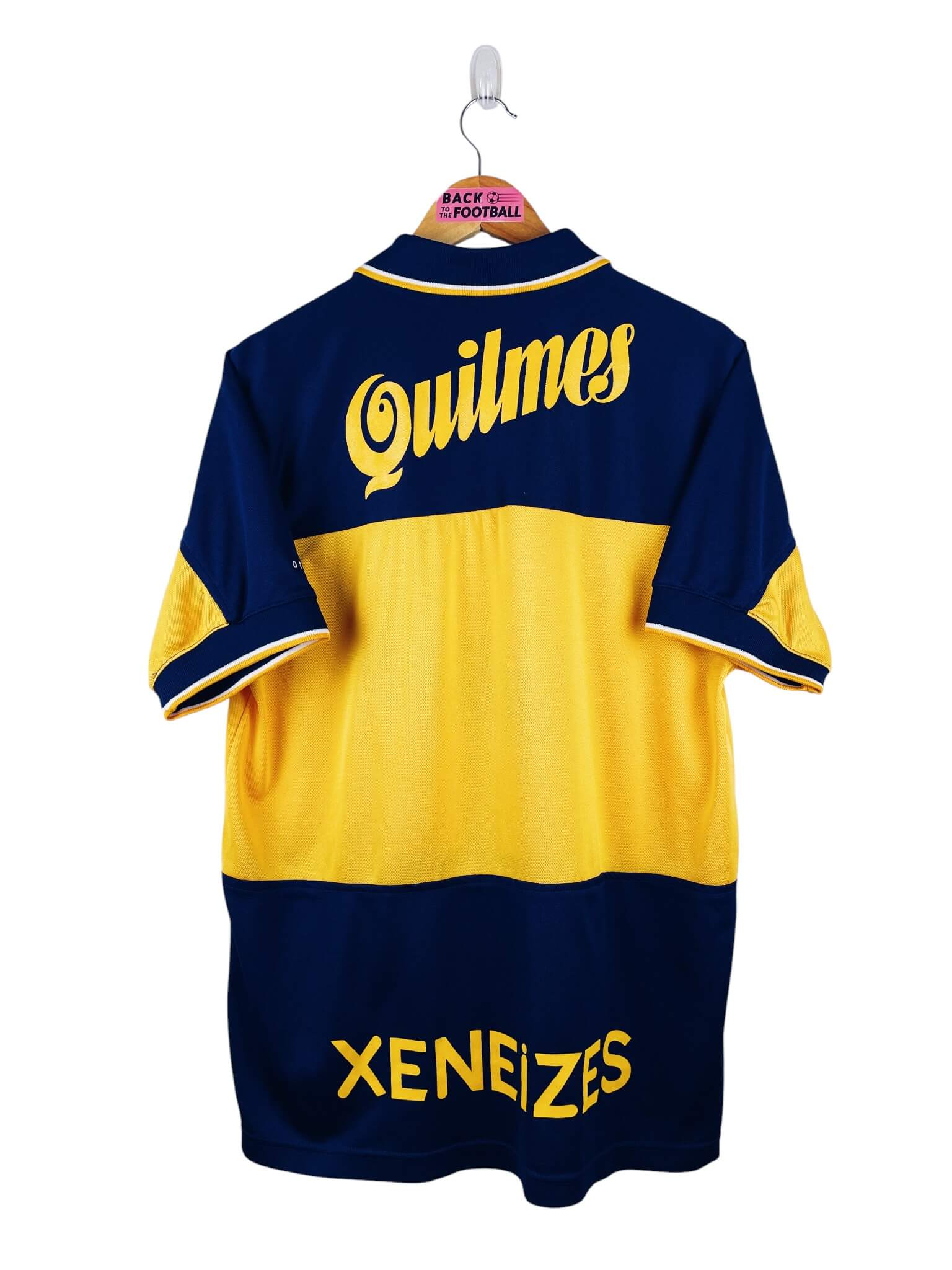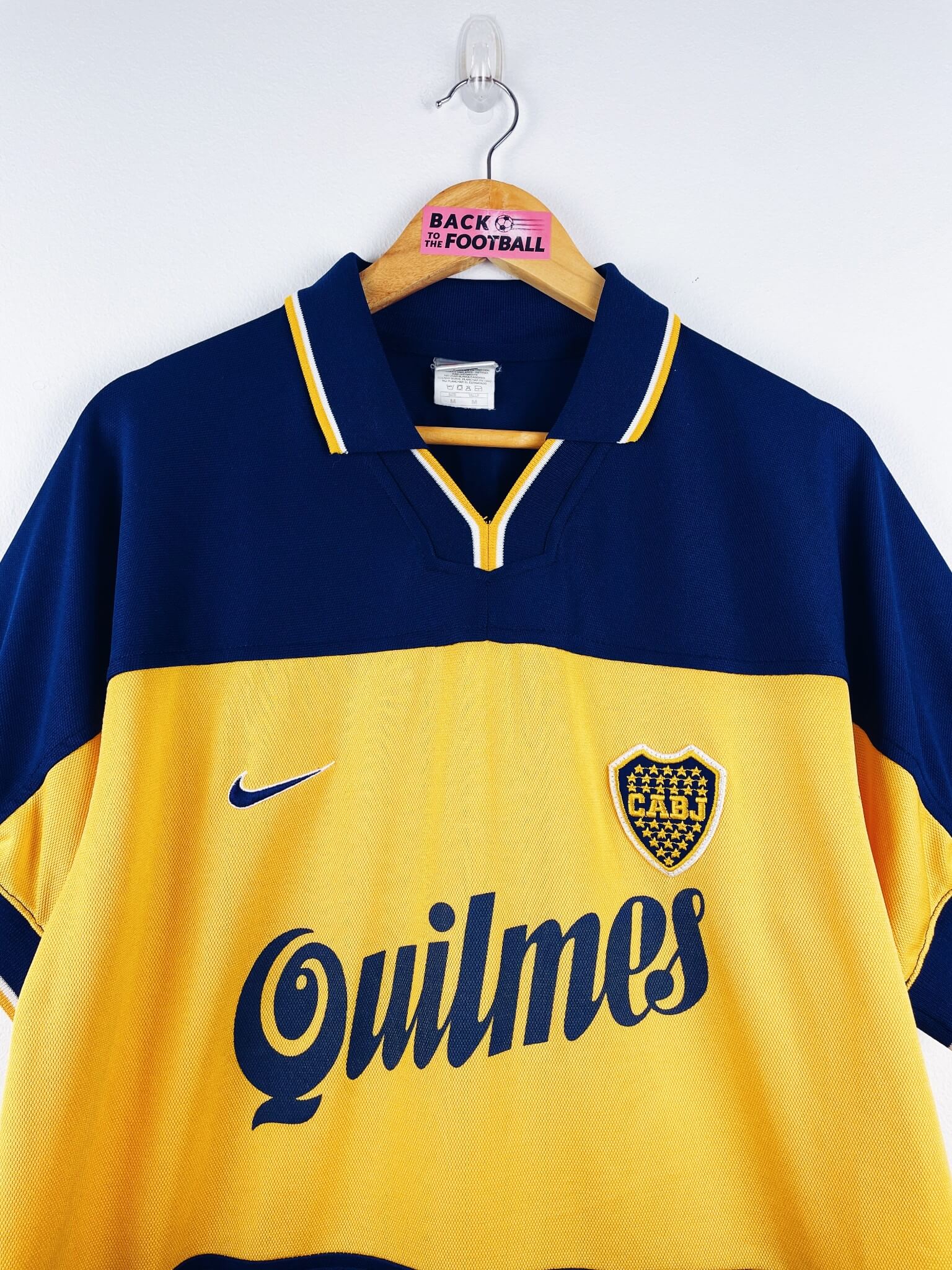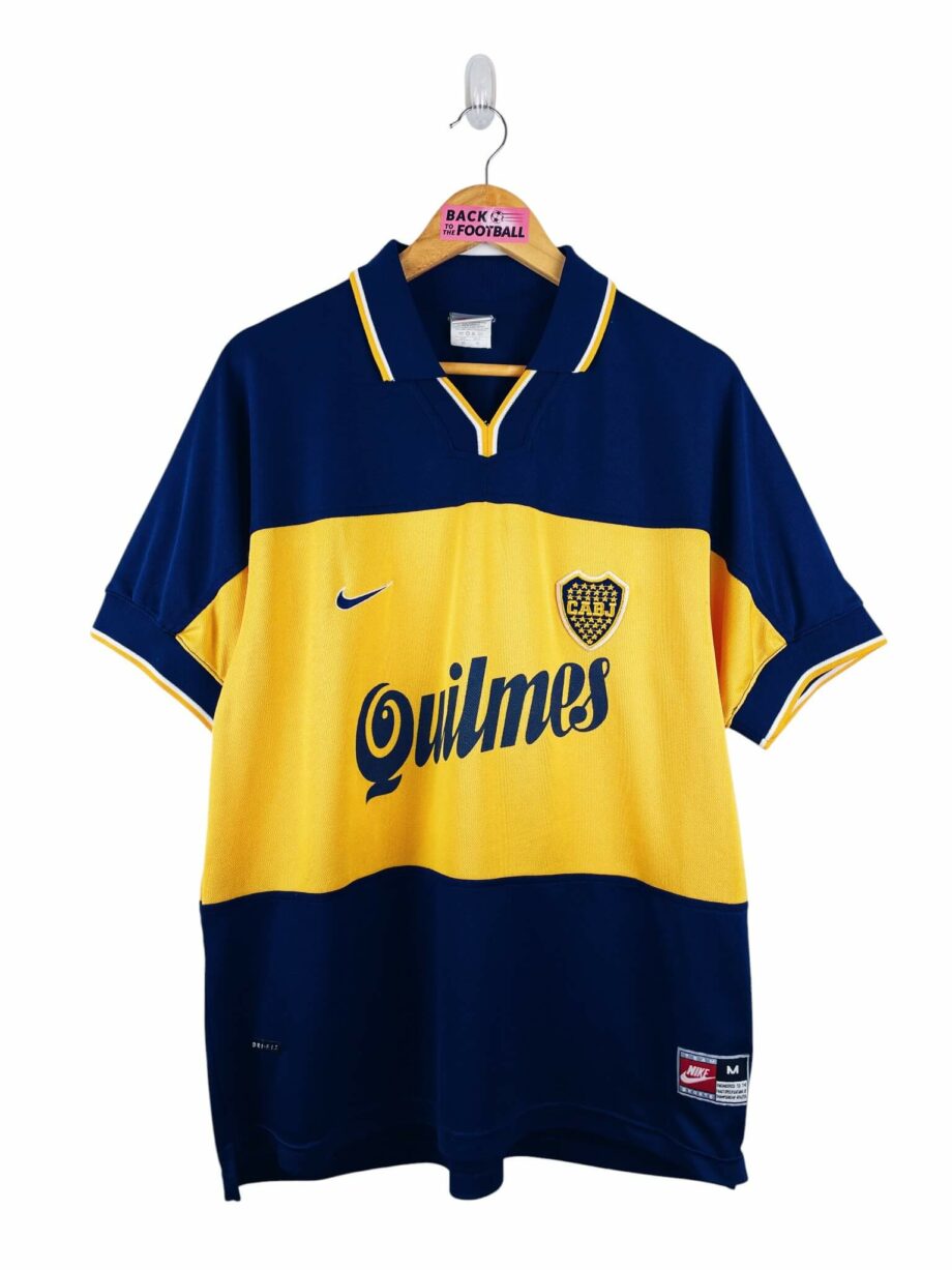 Le maillot : maillot vintage domicile de Boca Juniors 1998/2000. L’écusson est brodé, le logo Nike aussi. Les sponsors Quilmes sont floqués. Très beau maillot rétro du Boca Juniors !
