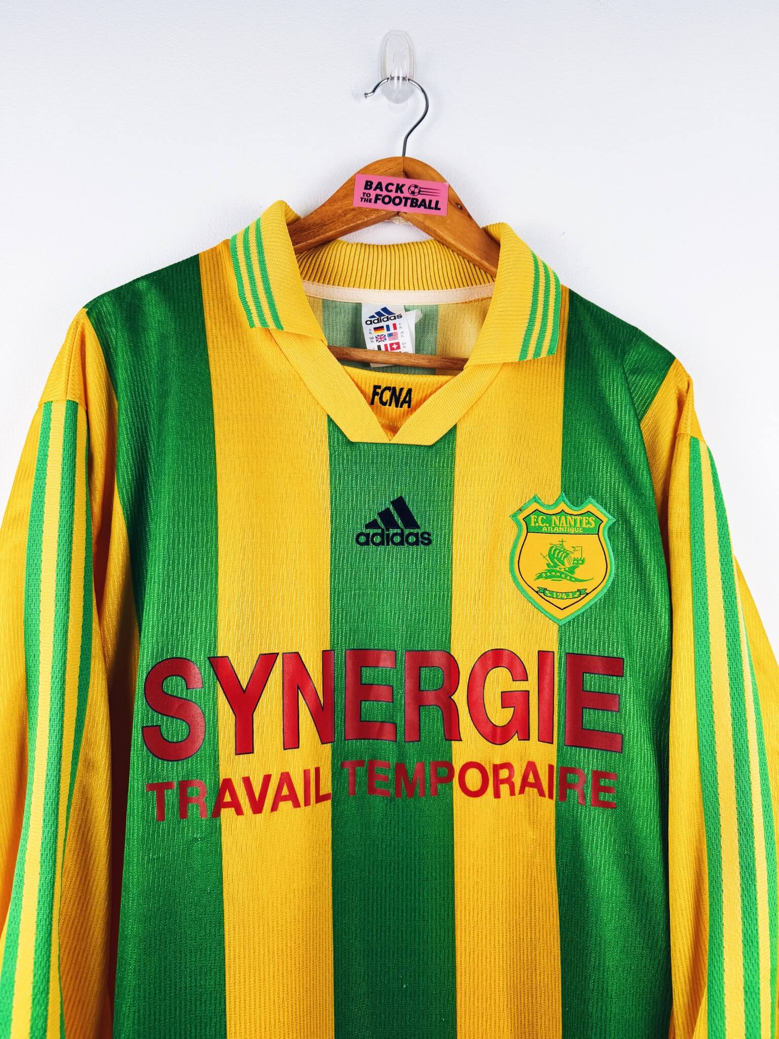 Tu as déjà regardé une compilation des buts du jeu à la nantaise? Tu penses que Mickael Landreau est le meilleur gardien de tous les temps? Et que Marama Vahirua a inventé la meilleure célébration? Tu es tous les weekends à la Beaujoire? Alors tu devrais trouver ton bonheur parmi nos maillots de foot vintage de Nantes. Et si t’as des pépites à vendre, on peut aussi racheter ton maillot collector des Canaris.