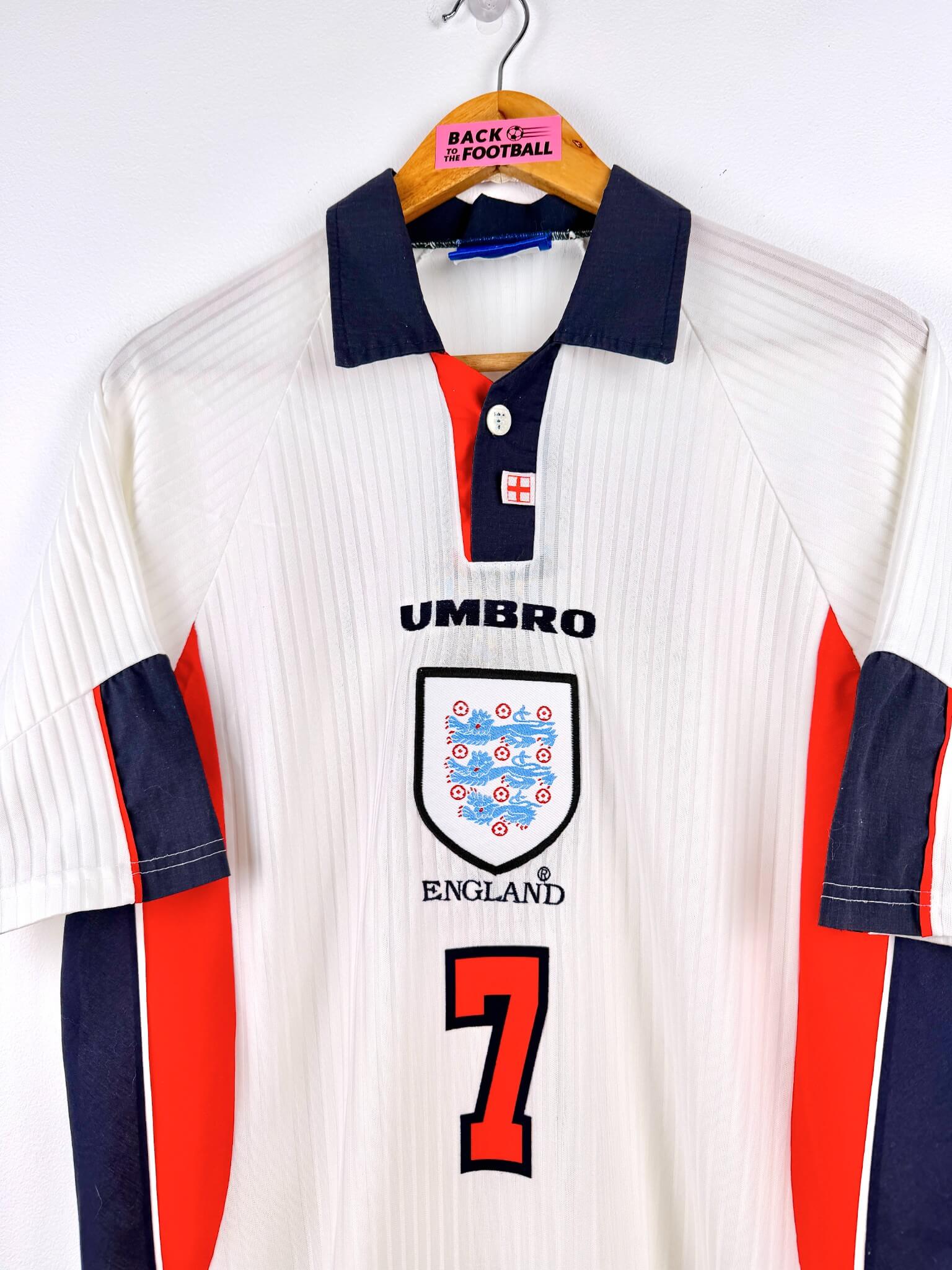 Fan des Three Lions? Tu as déjà fait toutes les coupes de cheveux de David Beckham? Tu chantes It’s coming home alors que tu sais très bien que l’Angleterre ne gagnera plus de trophée. T’es nostalgique de l’époque Gascoigne, Lineker? Alors tu devrais trouver ton bonheur parmi nos maillots de foot vintage de l’Angleterre. Et si t’as des pépites à vendre, on peut aussi racheter ton maillot collector des Three Lions.