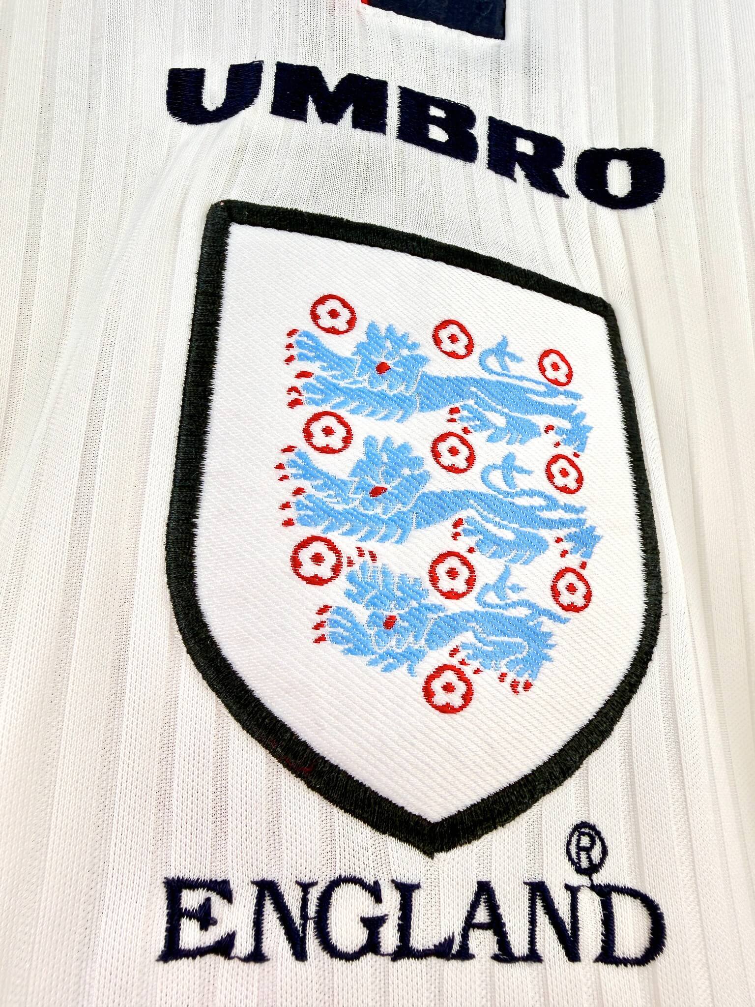 Un maillot vintage de l’Angleterre, ça te tente? Back To The Football t’a sélectionné la crème de la crème des maillots rétros de l’Angleterre. Chaque maillot de l’Angleterre est unique et authentique. Qui dit maillot d’époque dit stock limité, premier arrivé, premier servi !