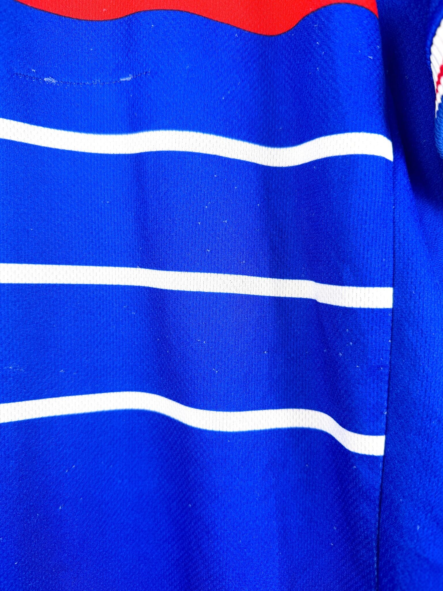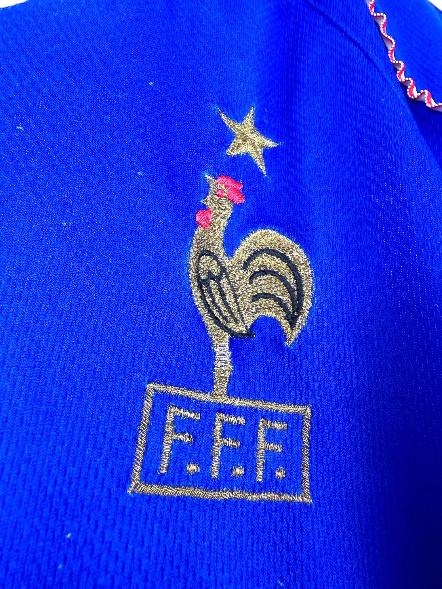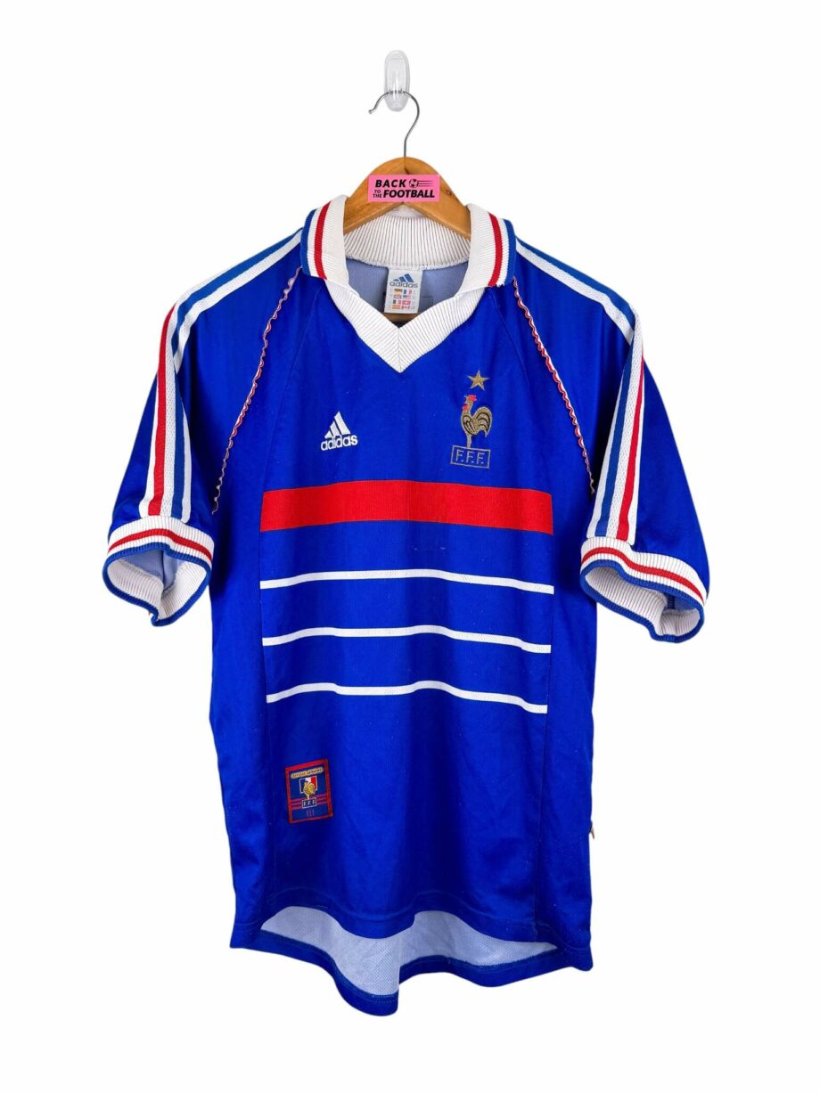 Tu connais la finale de la Coupe du Monde 1998 par coeur? Tu regardes les compilations des contrôles de Zidane sur Youtube? Tu penses souvent au poteau de Gignac? Puis tu penses au second poteau Pavard et ça va mieux? T’espères avoir une 3ème étoile? Alors tu devrais trouver ton bonheur parmi nos maillots de foot vintage de l’équipe de France. Et si t’as des pépites à vendre, on peut aussi racheter ton maillot collector des Bleus.