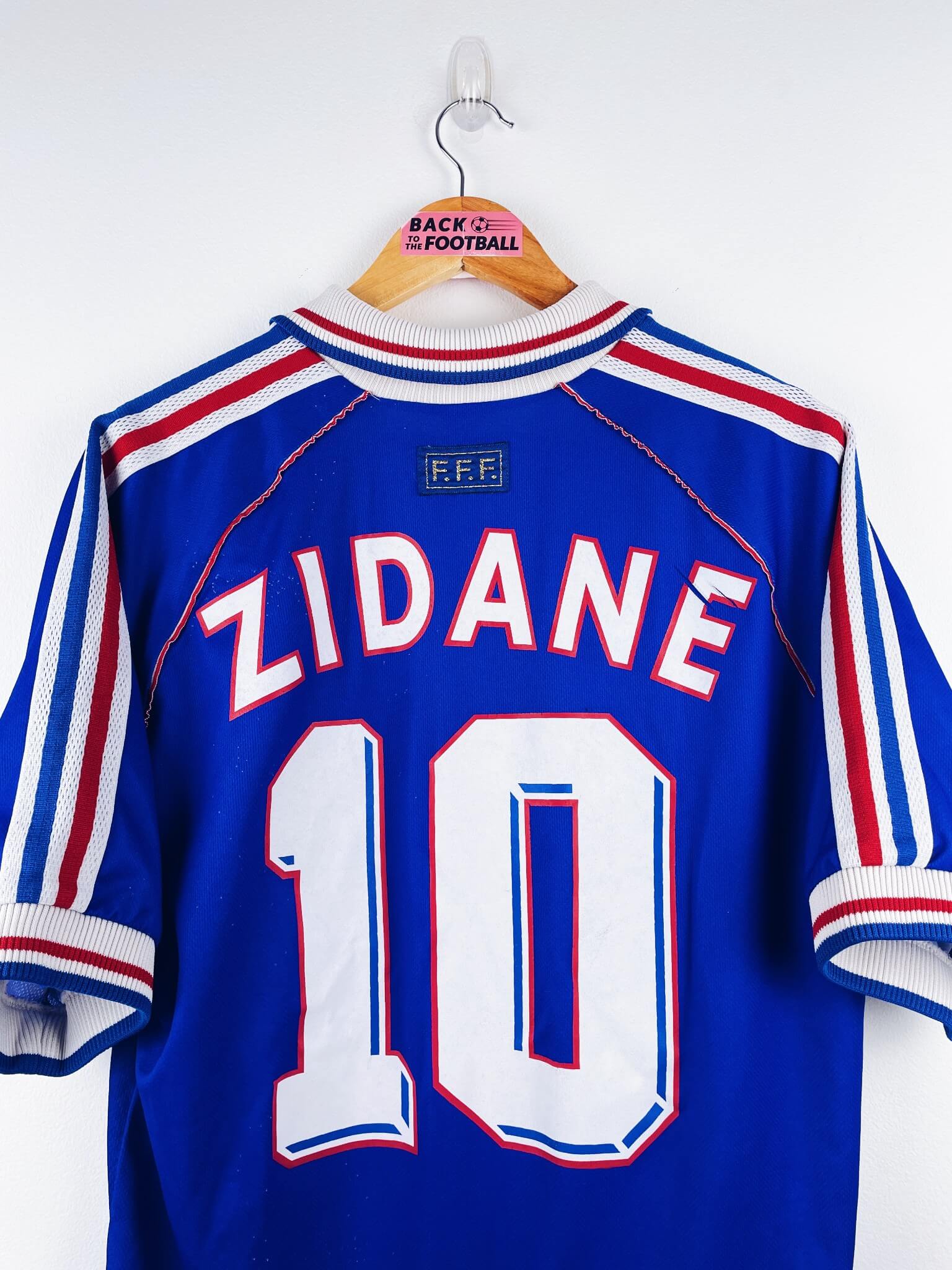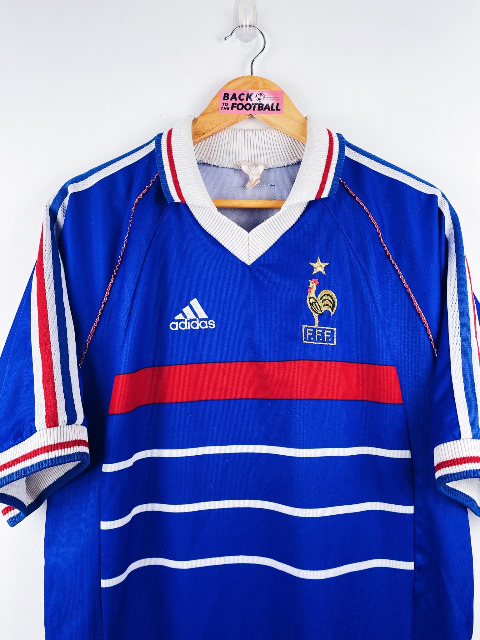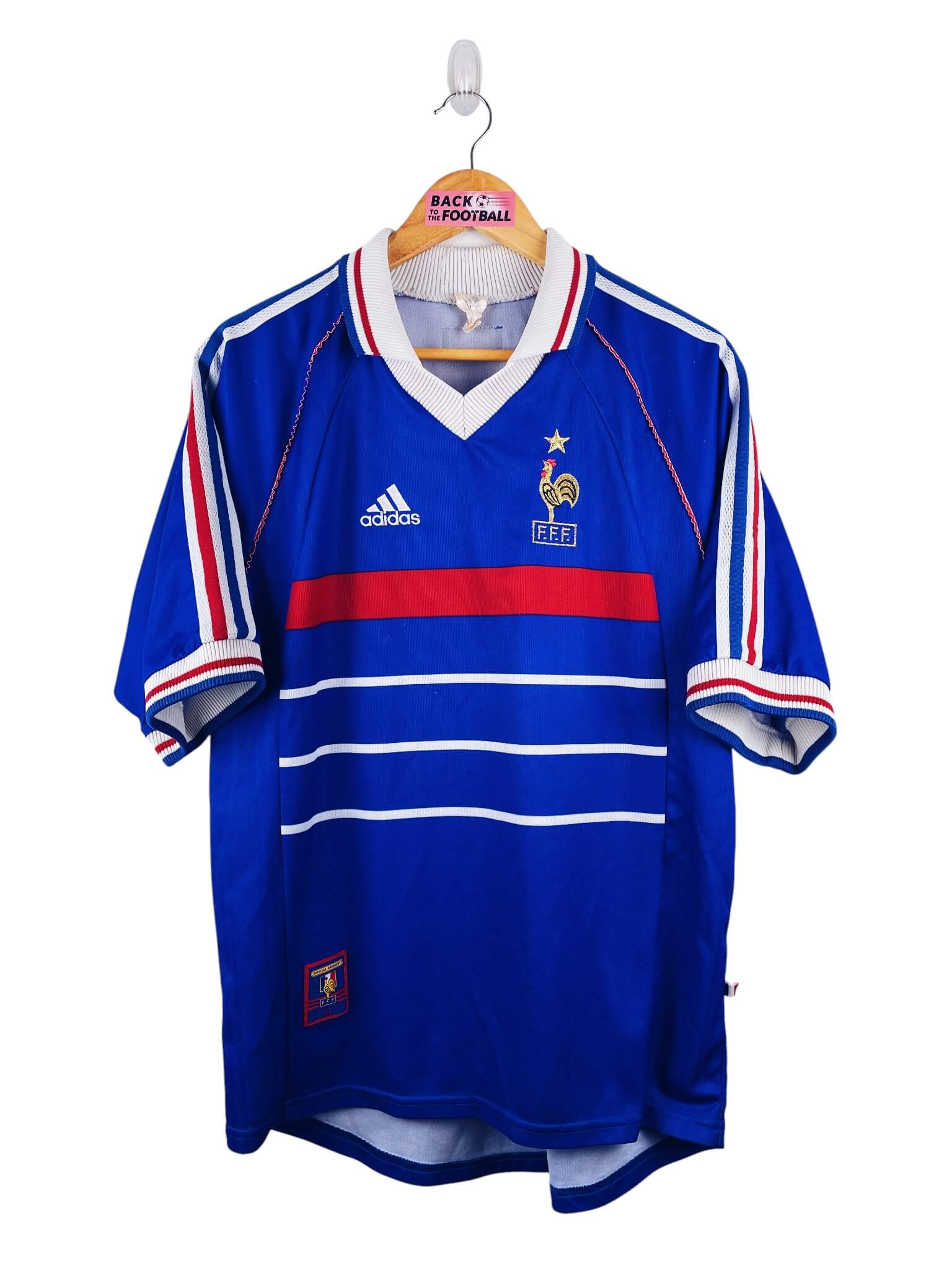 Tu connais la finale de la Coupe du Monde 1998 par coeur? Tu regardes les compilations des contrôles de Zidane sur Youtube? Tu penses souvent au poteau de Gignac? Puis tu penses au second poteau Pavard et ça va mieux? T’espères avoir une 3ème étoile? Alors tu devrais trouver ton bonheur parmi nos maillots de foot vintage de l’équipe de France. Et si t’as des pépites à vendre, on peut aussi racheter ton maillot collector des Bleus.