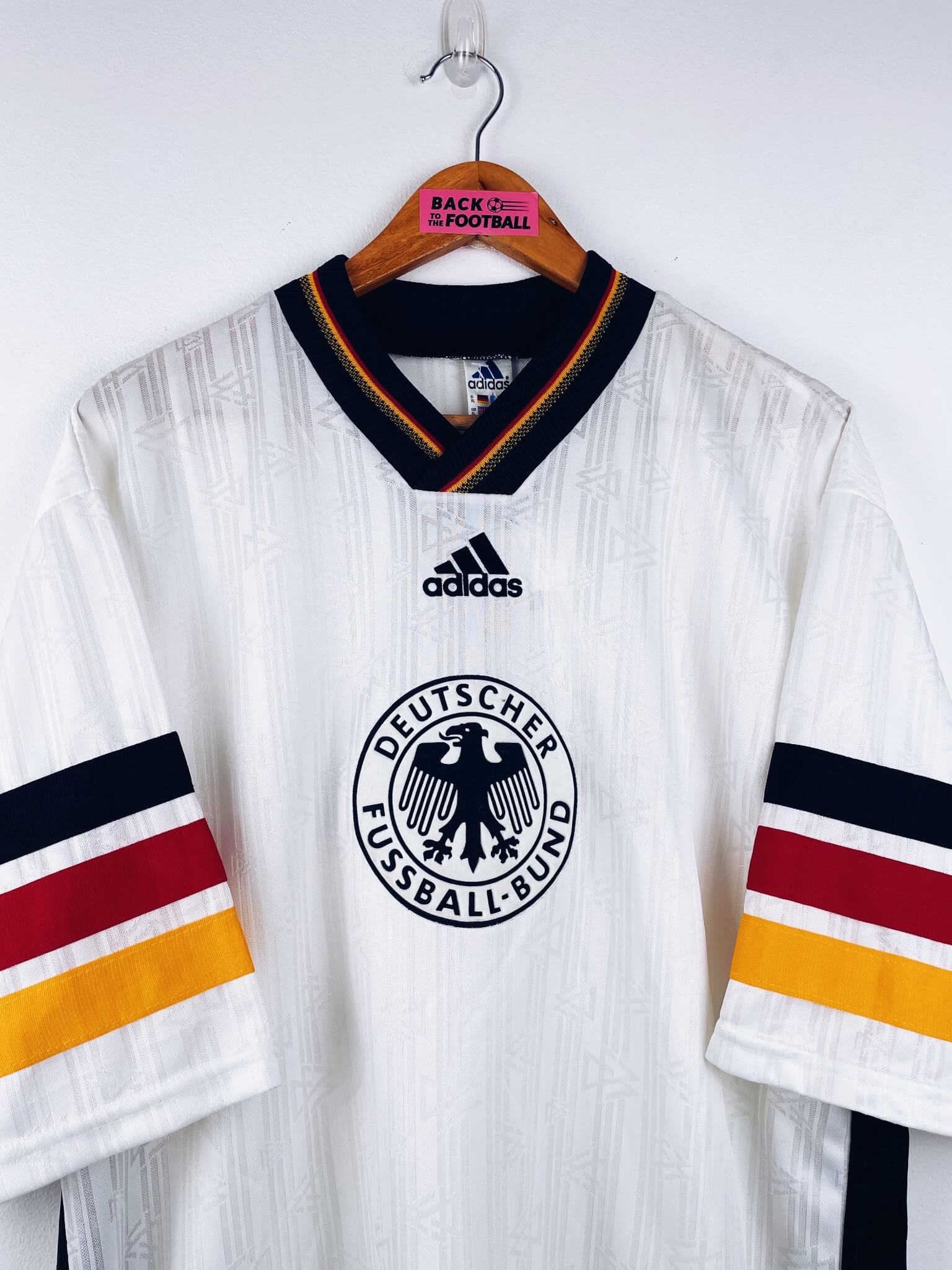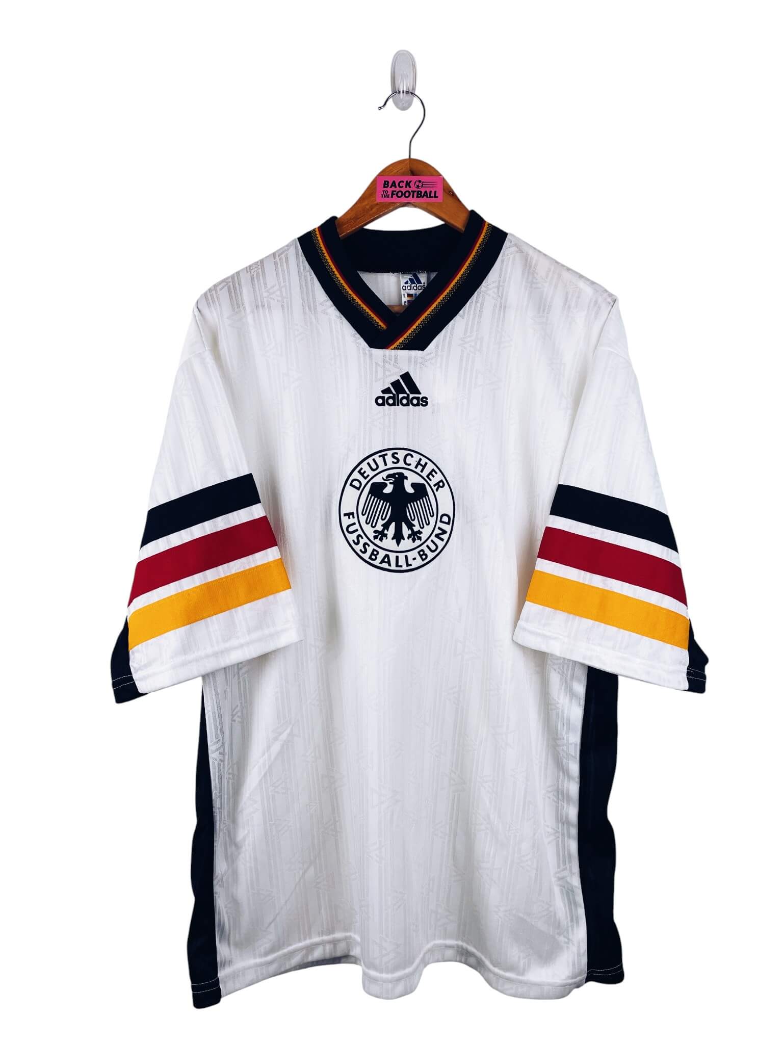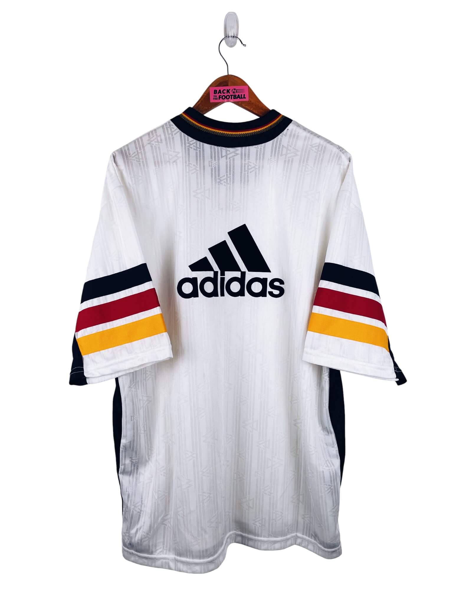 Un maillot vintage de l’Allemagne, ça te tente? Back To The Football t’a sélectionné la crème de la crème des maillots rétros de la Maanschaft. Chaque maillot de l’Allemagne est unique et authentique. Qui dit maillot d’époque dit stock limité, premier arrivé, premier servi !