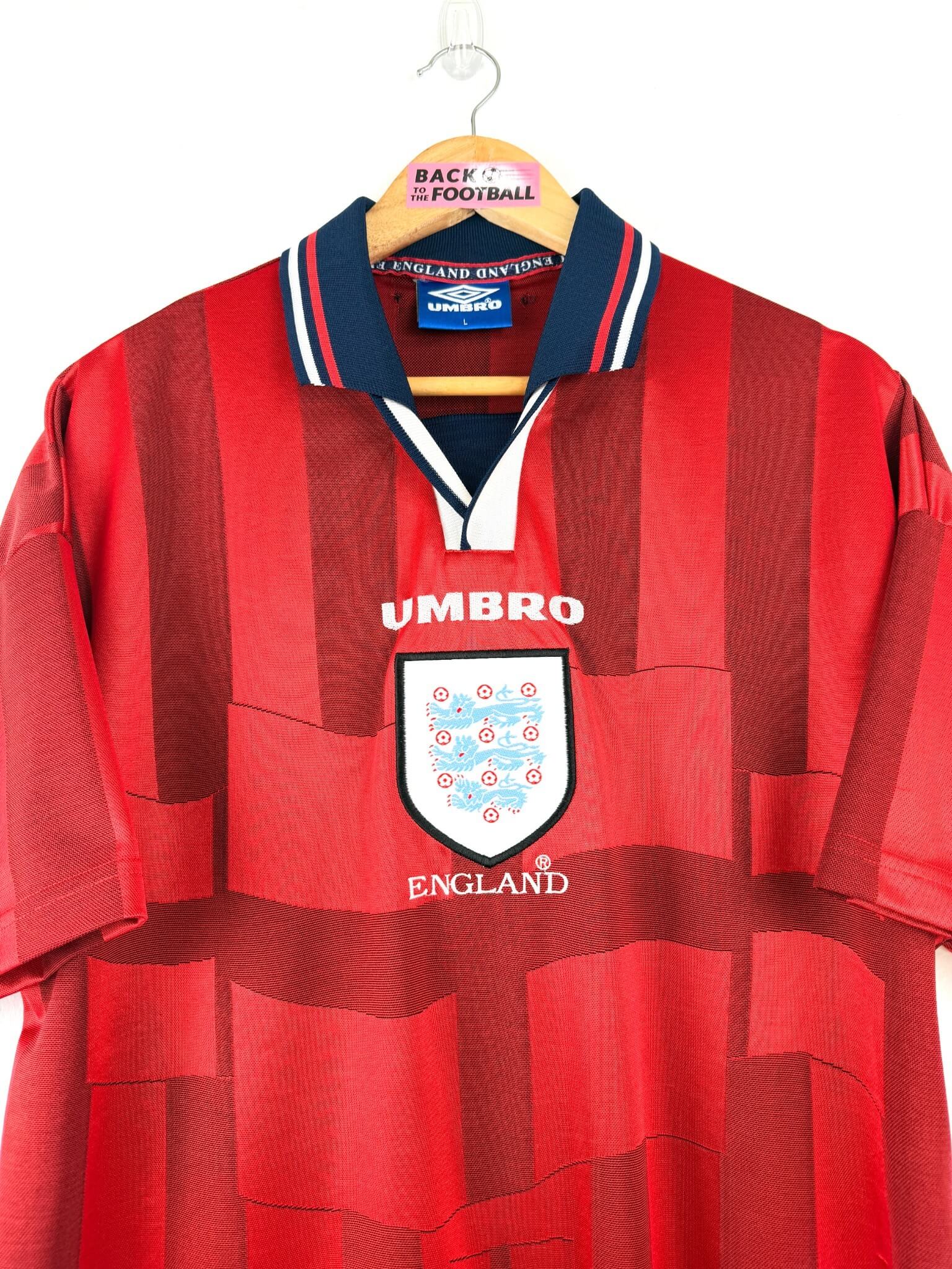 Un maillot vintage de l’Angleterre, ça te tente? Back To The Football t’a sélectionné la crème de la crème des maillots rétros de l’Angleterre. Chaque maillot de l’Angleterre est unique et authentique. Qui dit maillot d’époque dit stock limité, premier arrivé, premier servi !