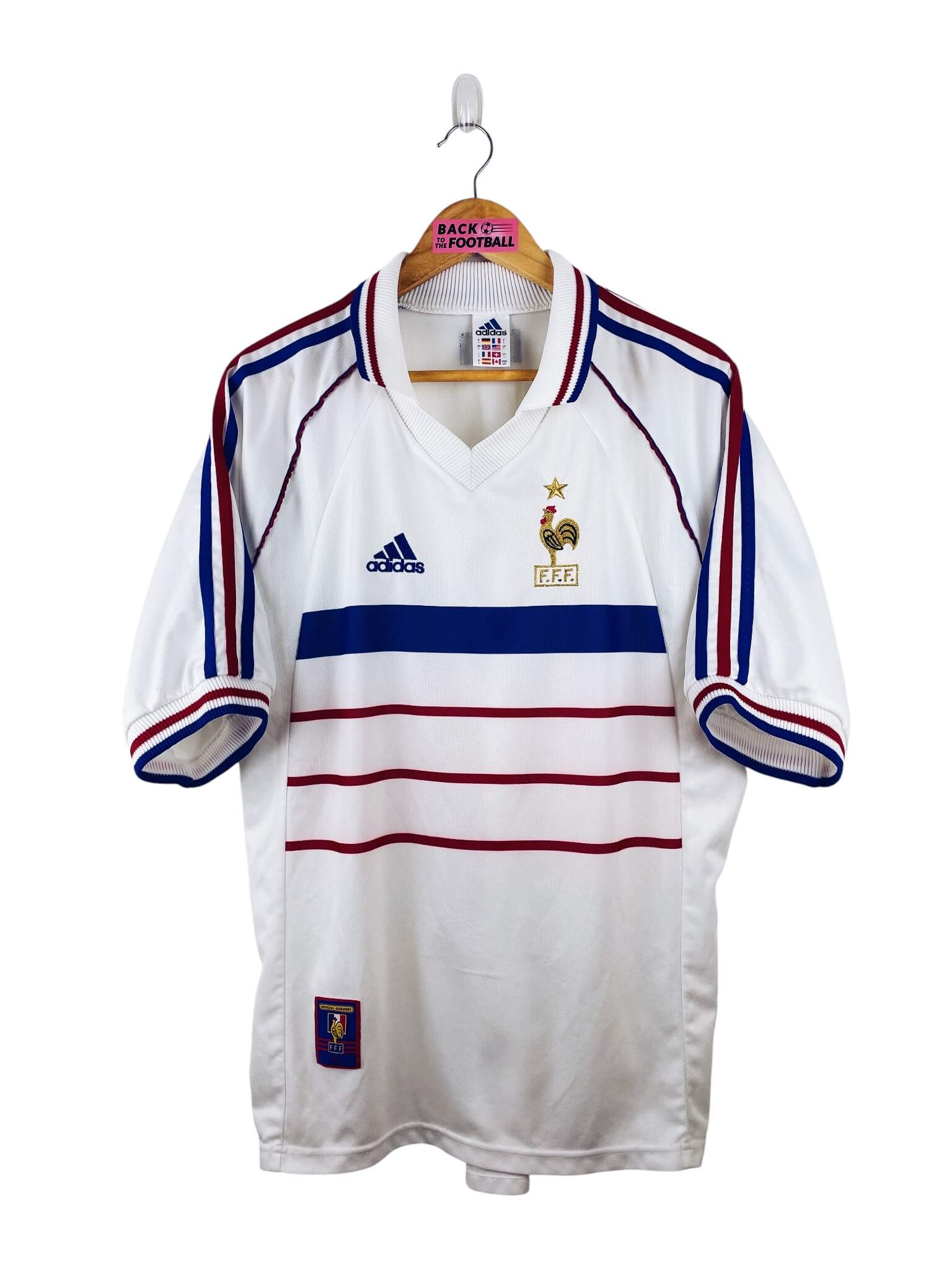 Le maillot : maillot vintage extérieur de l’équipe de France 1998, la version avec l’étoile. L’écusson et le logo Adidas sont brodés. Très beau maillot rétro de l’équipe de France !
