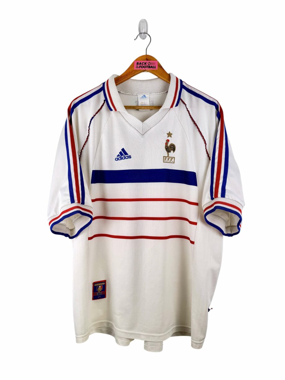 Le maillot : maillot vintage extérieur de l’équipe de France 1998, la version avec l’étoile. L’écusson et le logo Adidas sont brodés. Très beau maillot rétro de l’équipe de France !