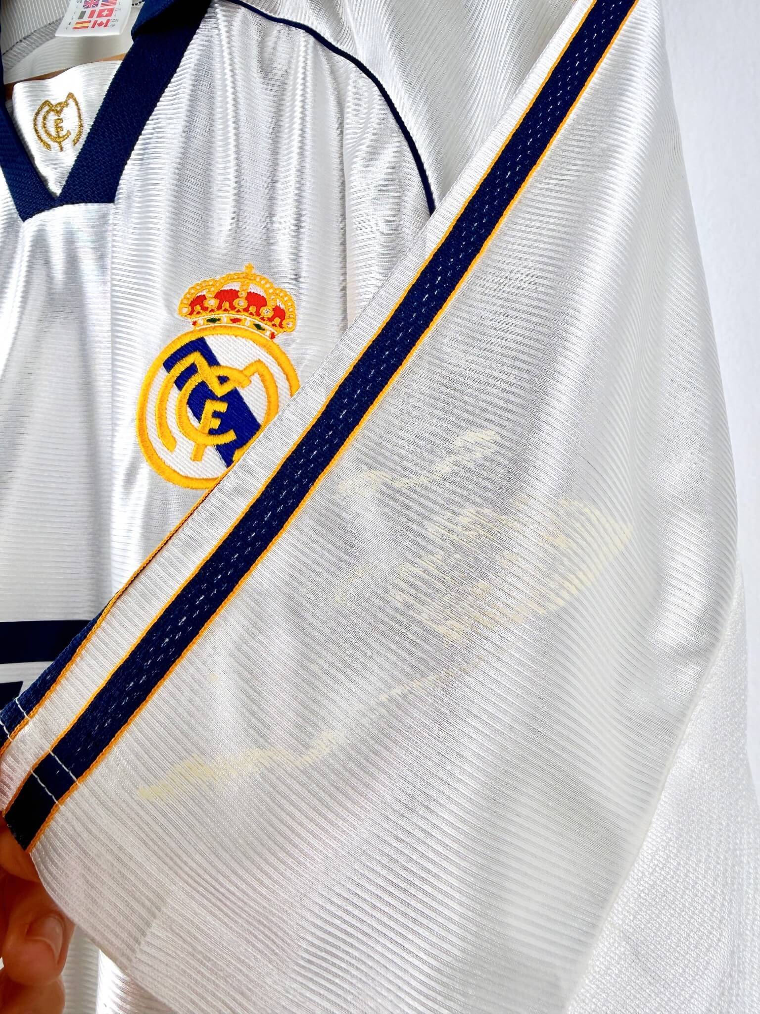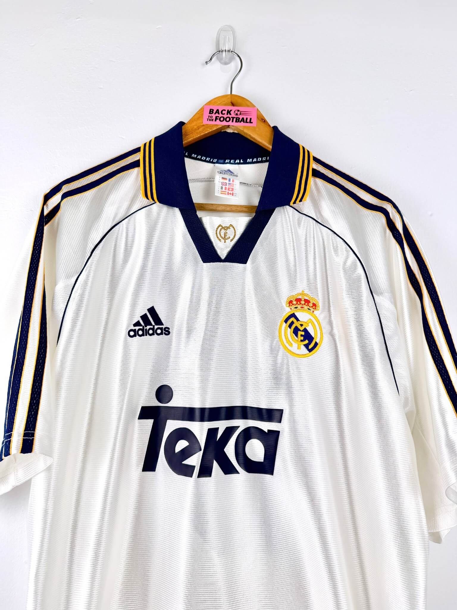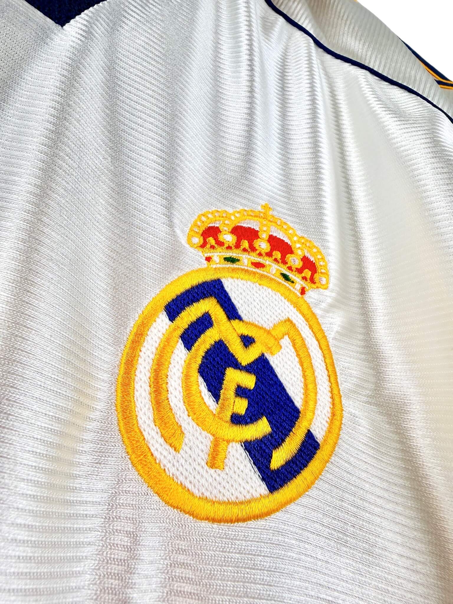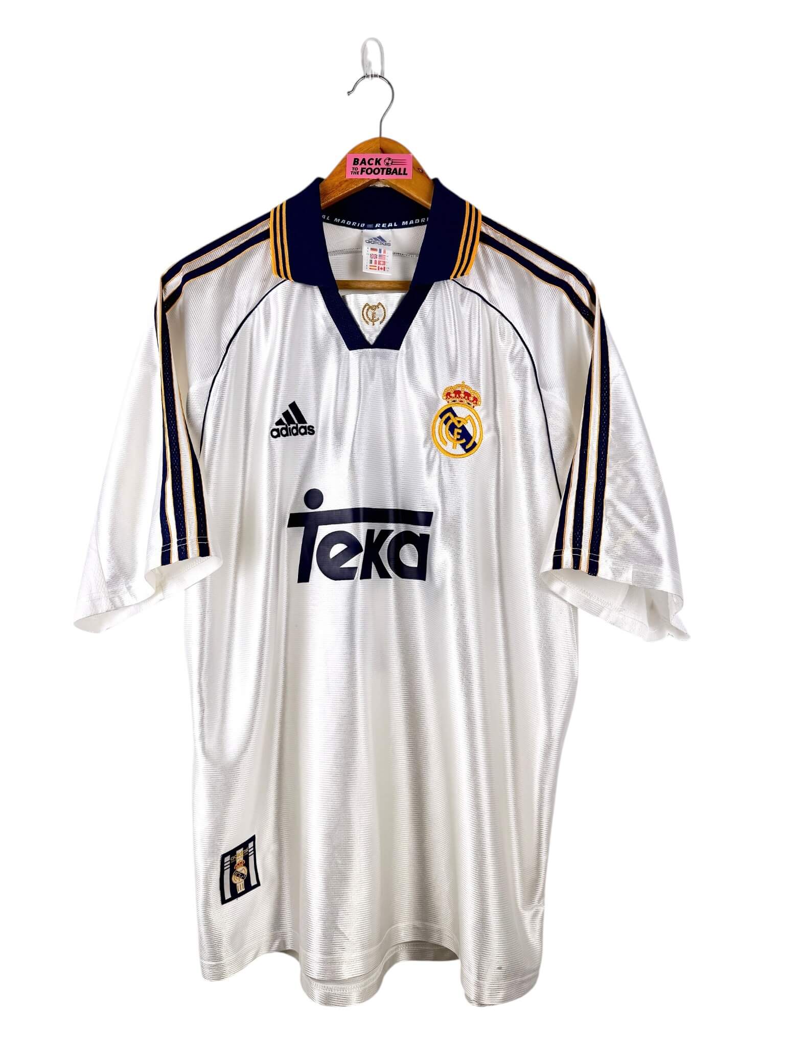 Tu considères que les Galactiques étaient les meilleurs joueurs du monde? Tu as une photo de Zidane sur ta table de chevet? Et un tatouage de Cristiano Ronaldo sur le mollet? Tu trouves que le Santiago Bernabéu est le plus beau stade au monde? Alors tu devrais trouver ton bonheur parmi nos maillots de foot vintage du Real Madrid. Et si t’as des pépites à vendre, on peut aussi racheter ton maillot collector du Real.
