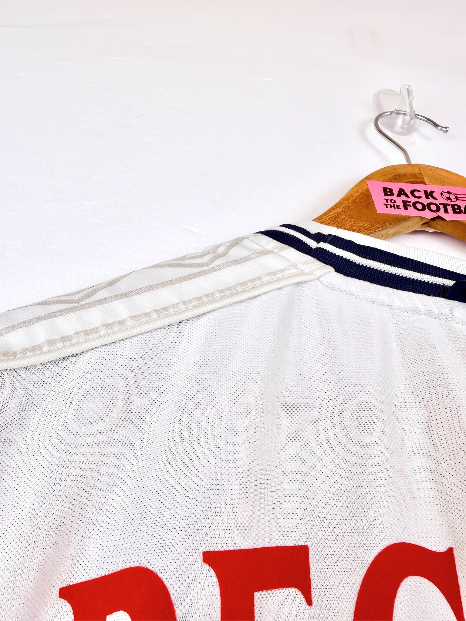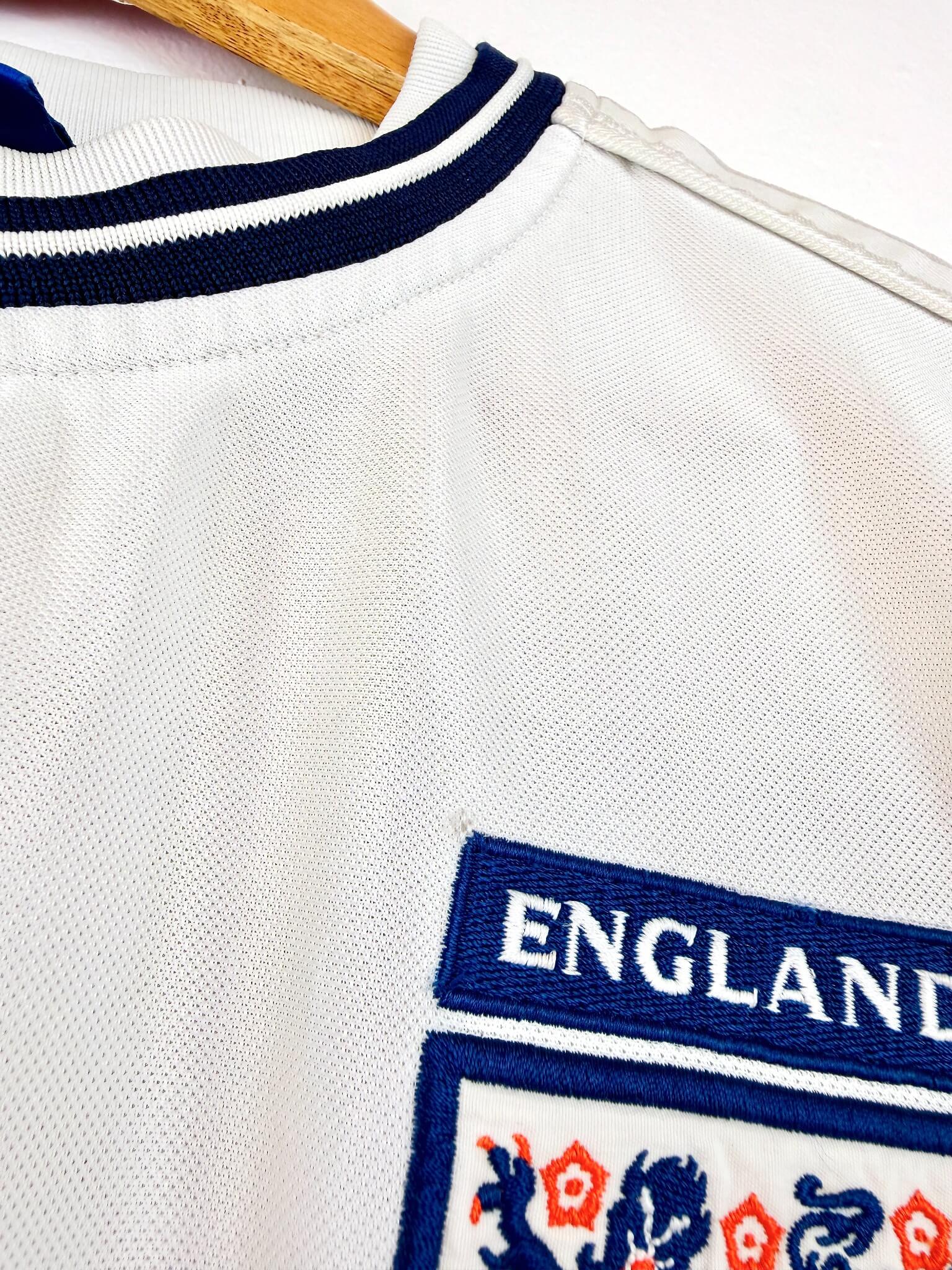 Un maillot vintage de l’Angleterre, ça te tente? Back To The Football t’a sélectionné la crème de la crème des maillots rétros de l’Angleterre. Chaque maillot de l’Angleterre est unique et authentique. Qui dit maillot d’époque dit stock limité, premier arrivé, premier servi !