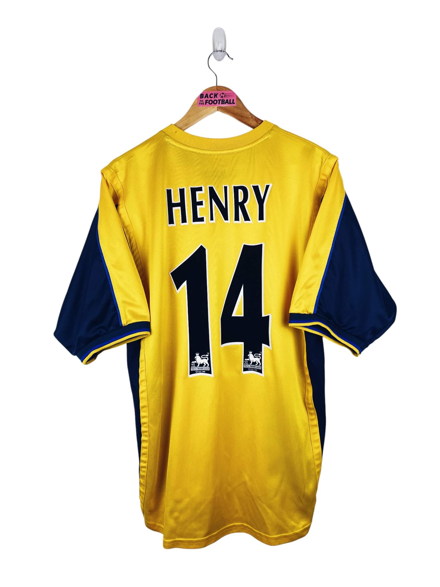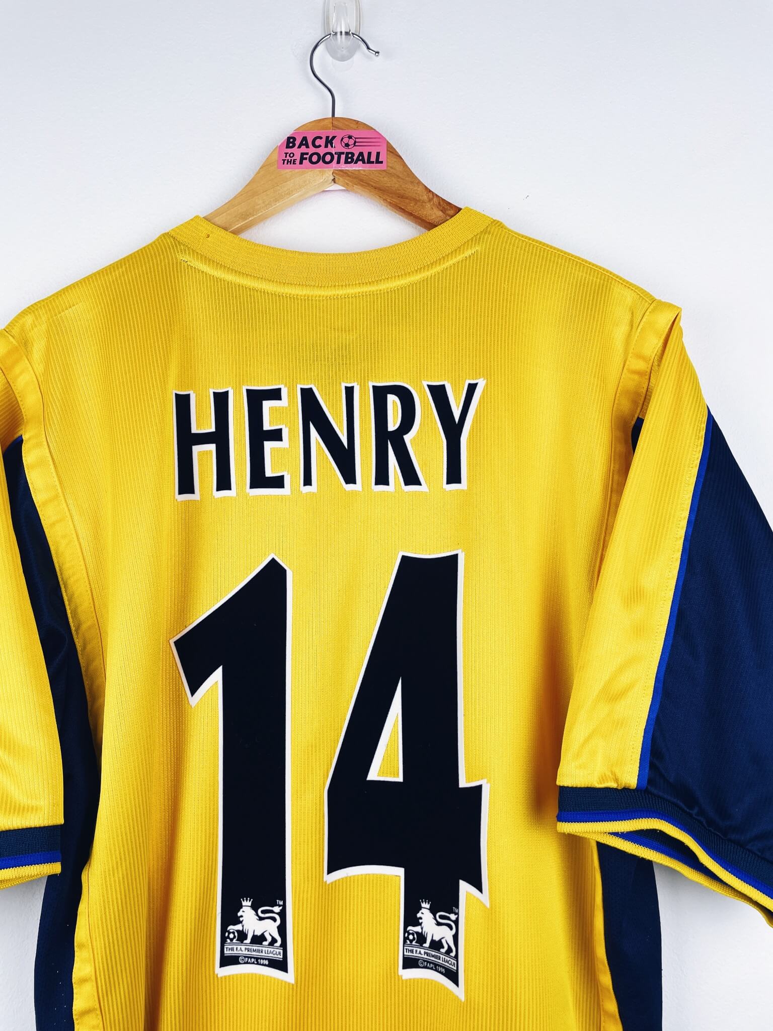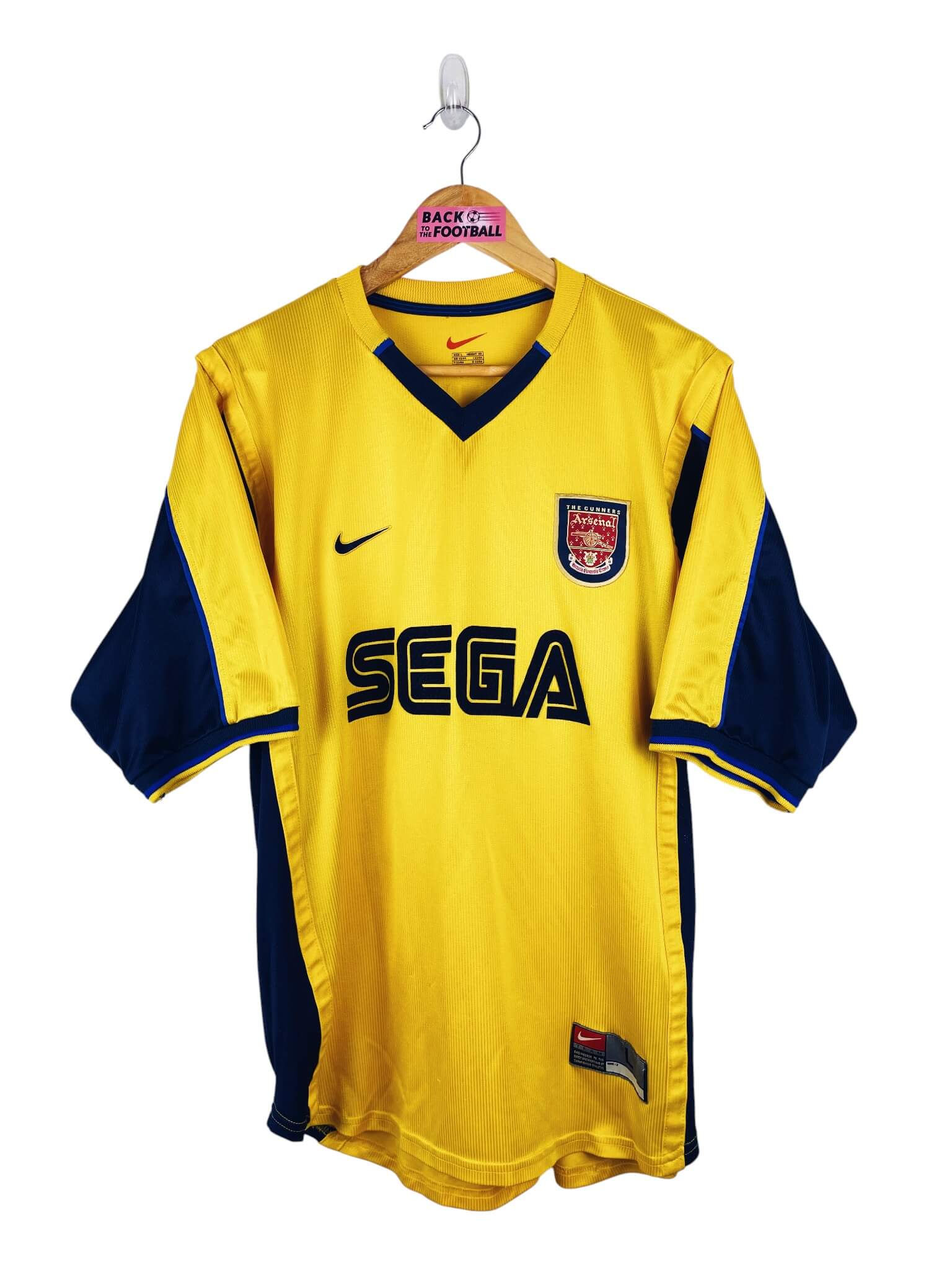 Le maillot : maillot vintage extérieur d’Arsenal 1999/2001 floqué Henry #14. L’ancien logo des Gunners est brodé, le logo Nike aussi, le fameux sponsor Sega est en feutrine. Henry #14 au dos est aussi en feutrine. Très beau maillot rétro d’Arsenal !