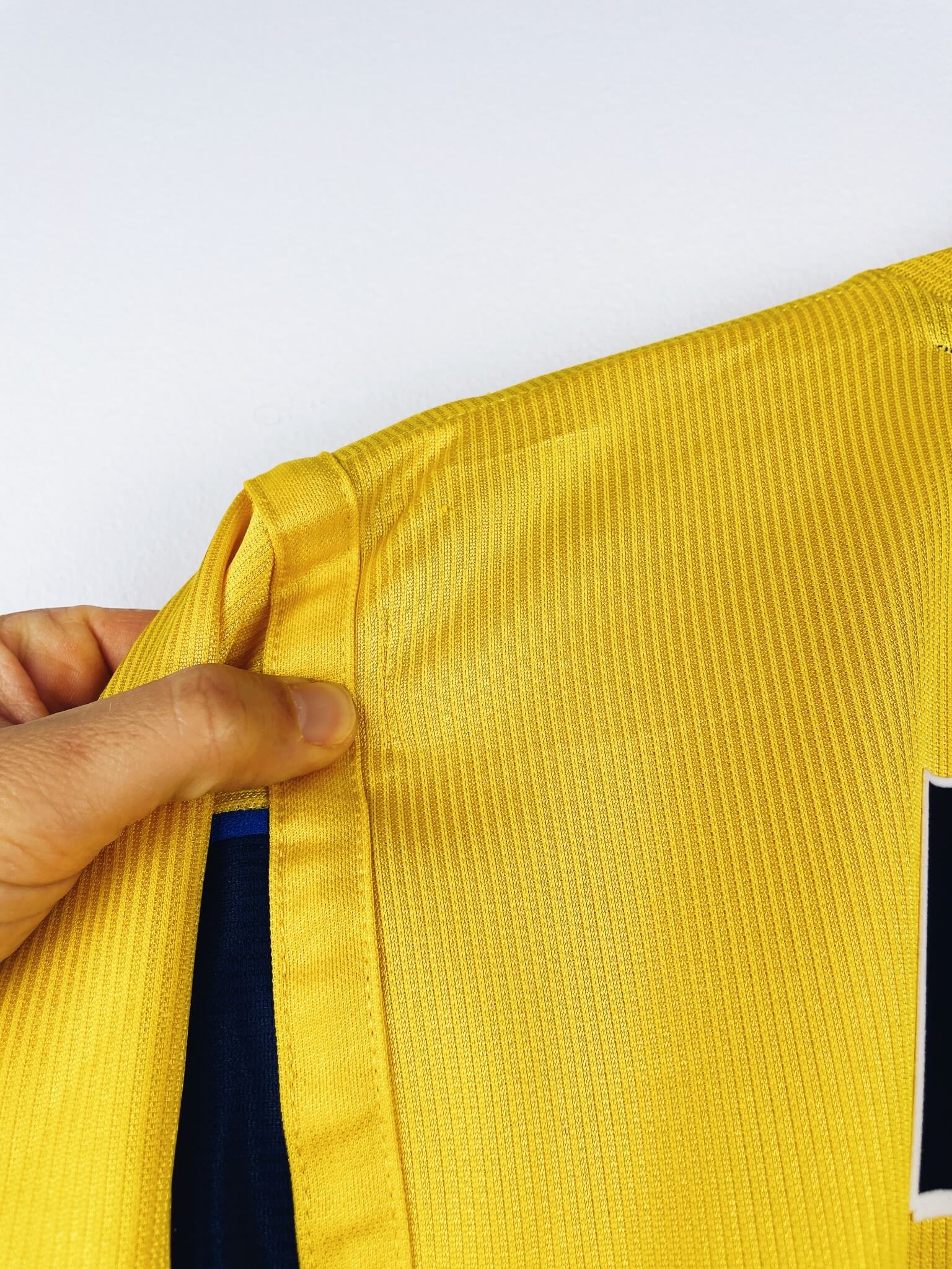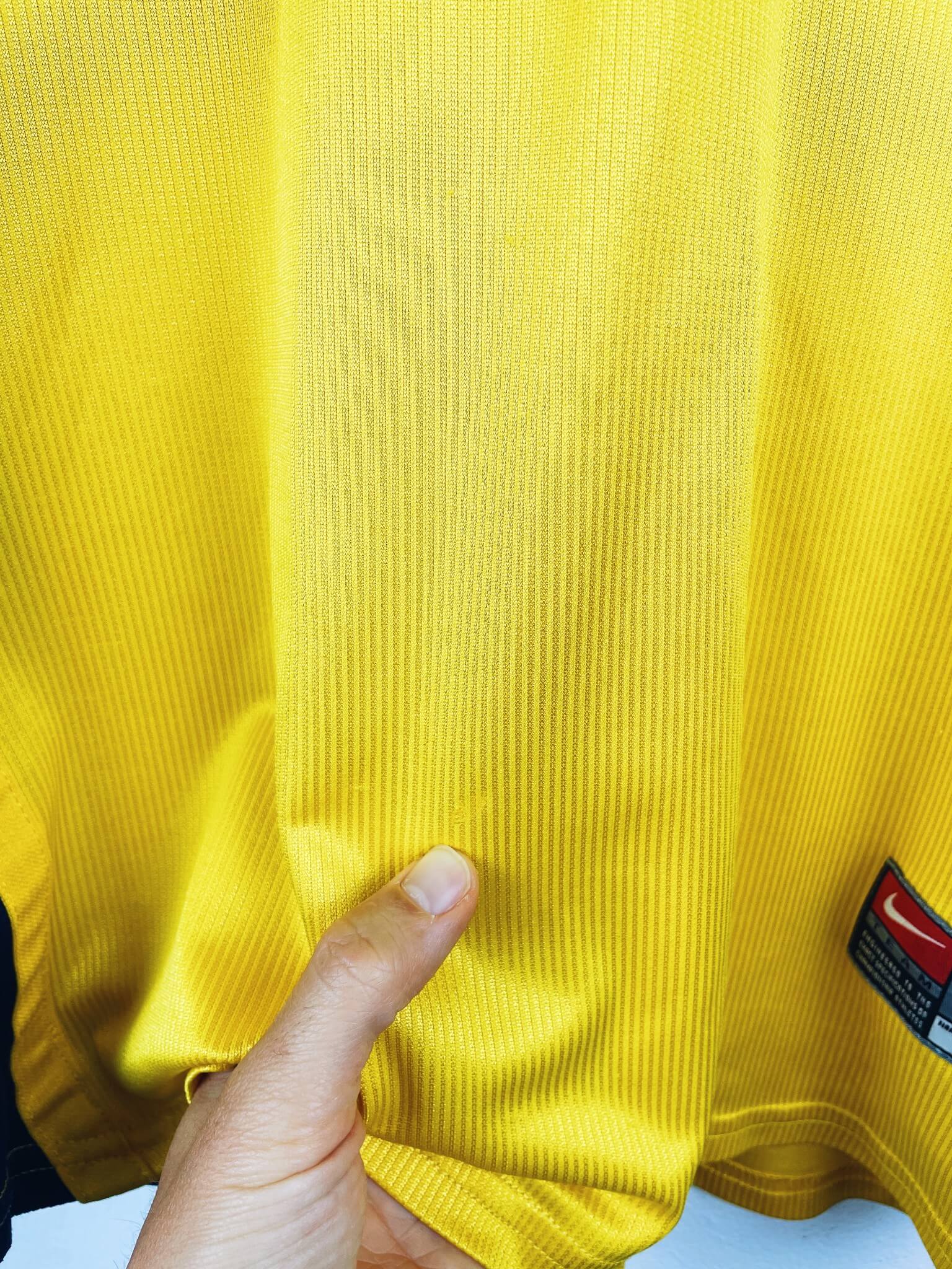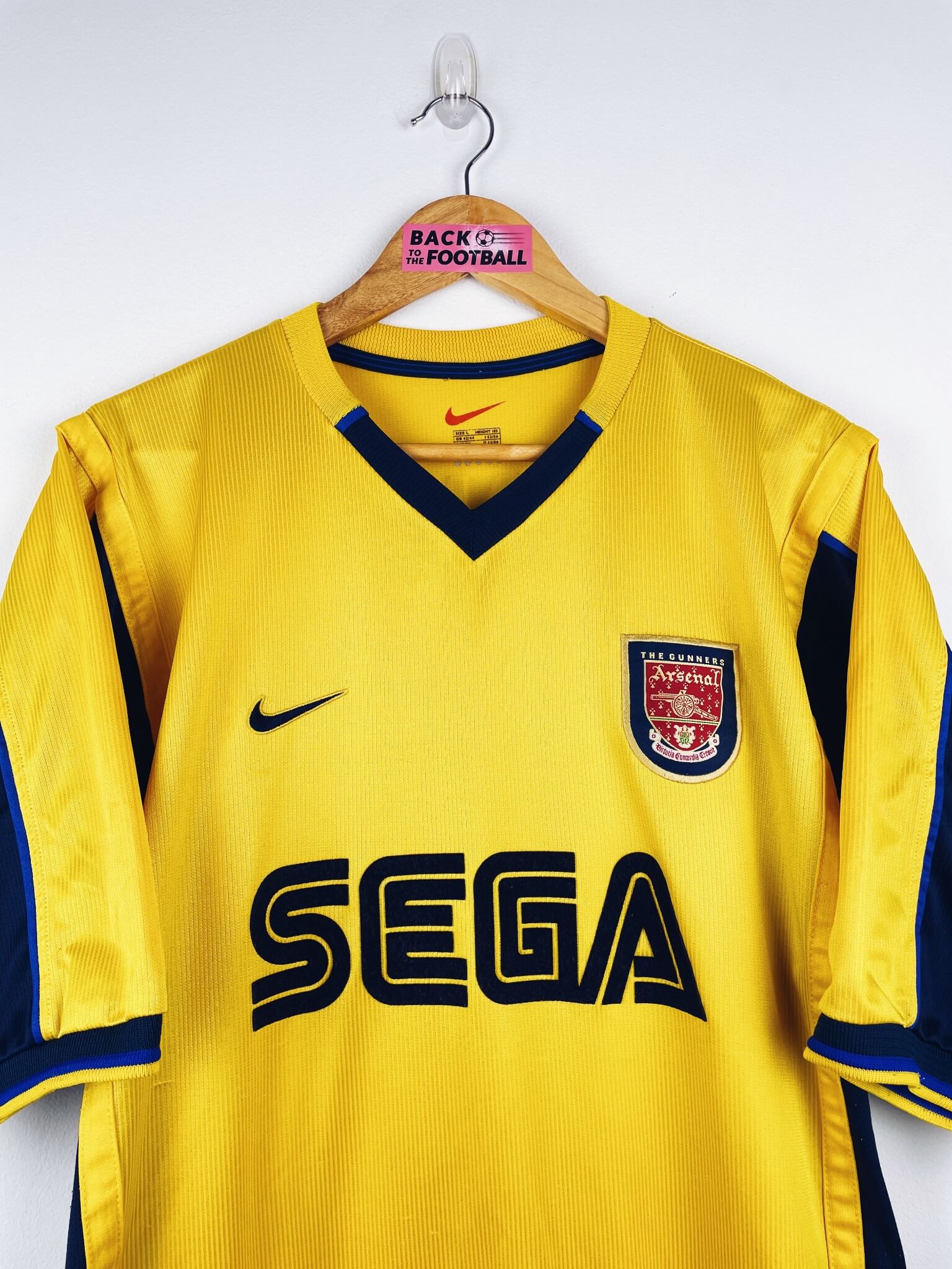 Le maillot : maillot vintage extérieur d’Arsenal 1999/2001 floqué Henry #14. L’ancien logo des Gunners est brodé, le logo Nike aussi, le fameux sponsor Sega est en feutrine. Henry #14 au dos est aussi en feutrine. Très beau maillot rétro d’Arsenal !