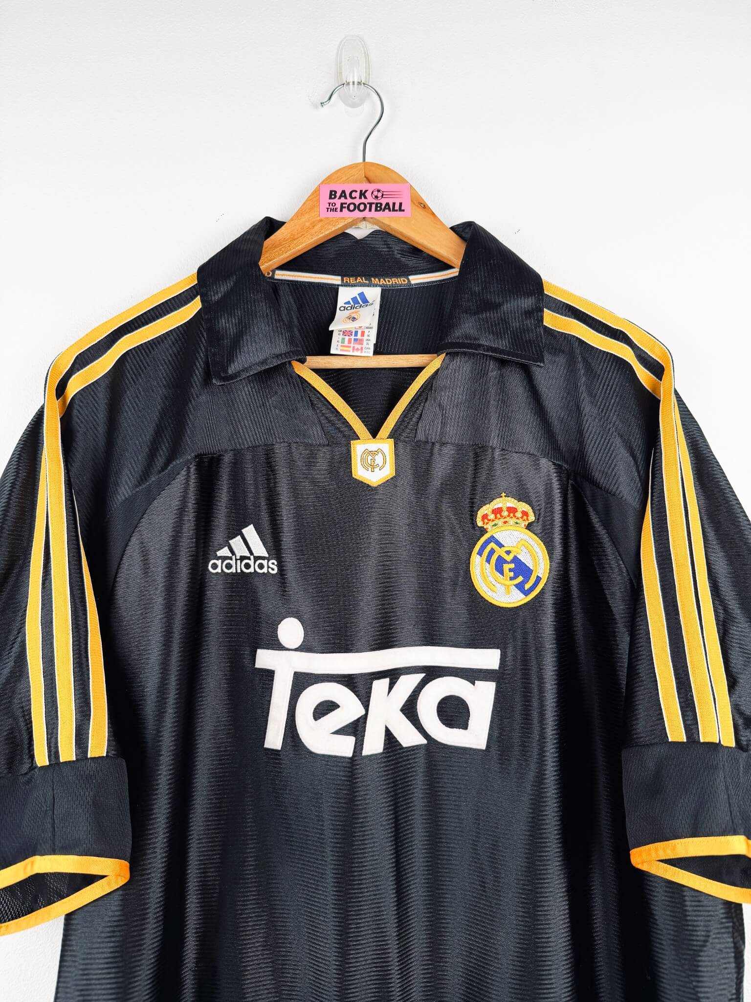 Tu considères que les Galactiques étaient les meilleurs joueurs du monde? Tu as une photo de Zidane sur ta table de chevet? Et un tatouage de Cristiano Ronaldo sur le mollet? Tu trouves que le Santiago Bernabéu est le plus beau stade au monde? Alors tu devrais trouver ton bonheur parmi nos maillots de foot vintage du Real Madrid. Et si t’as des pépites à vendre, on peut aussi racheter ton maillot collector du Real.