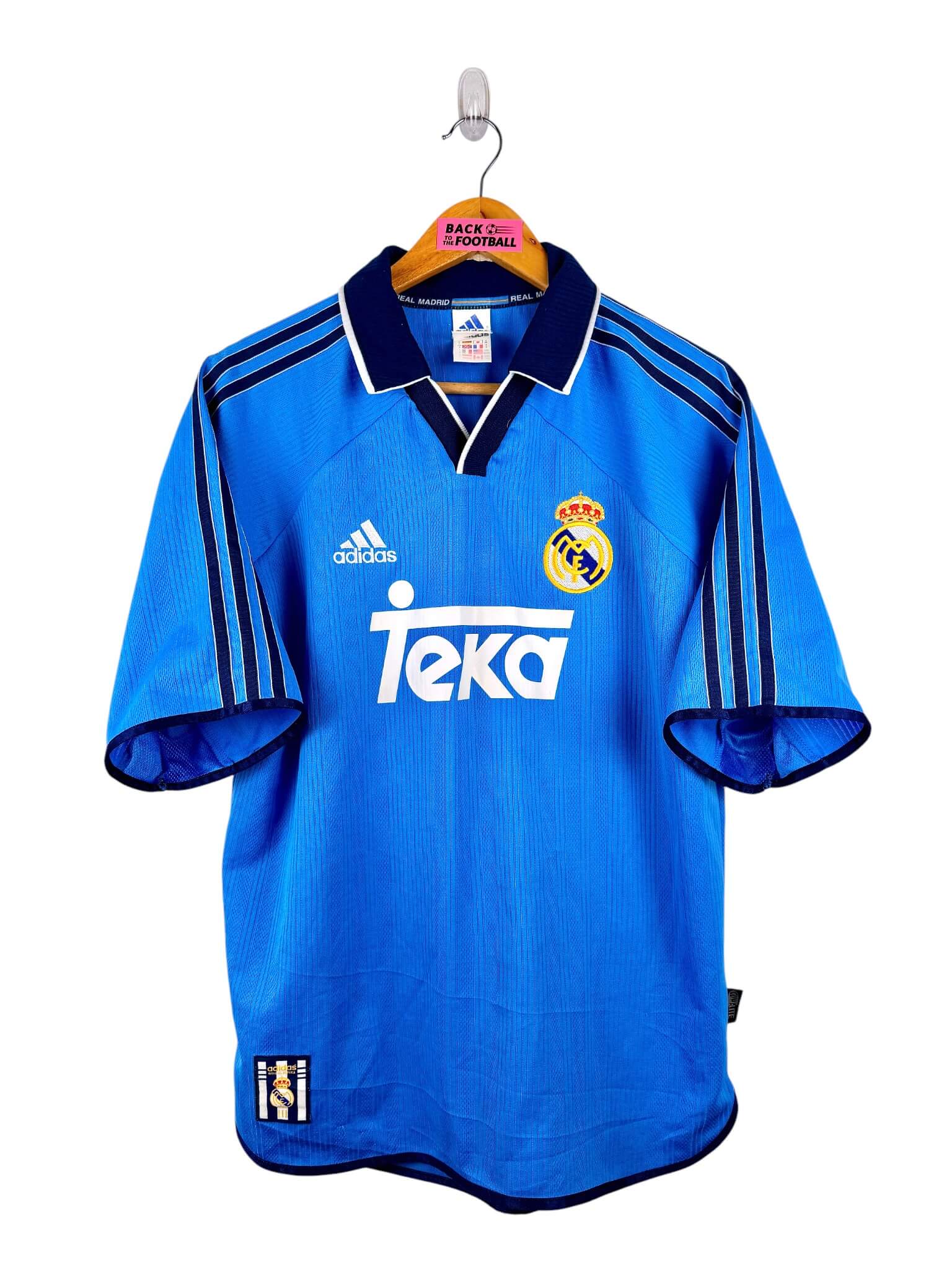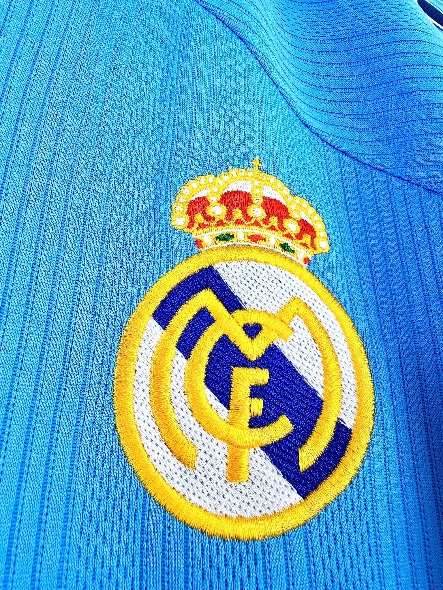 Le maillot : maillot vintage third du Real Madrid 1999/2001. L’écusson et le logo Adidas sont brodés, le sponsor Teka est floqué. Très beau maillot rétro du Real Madrid !