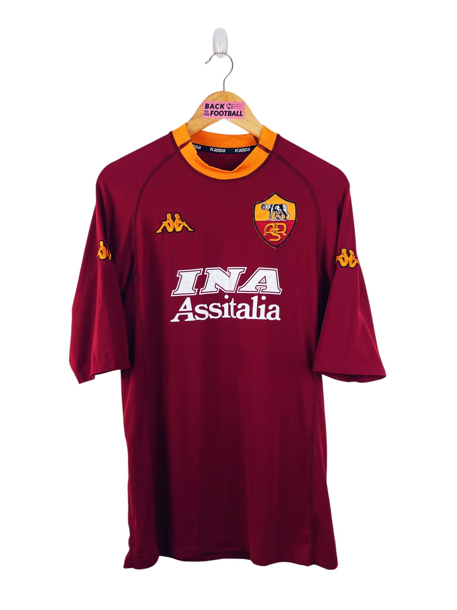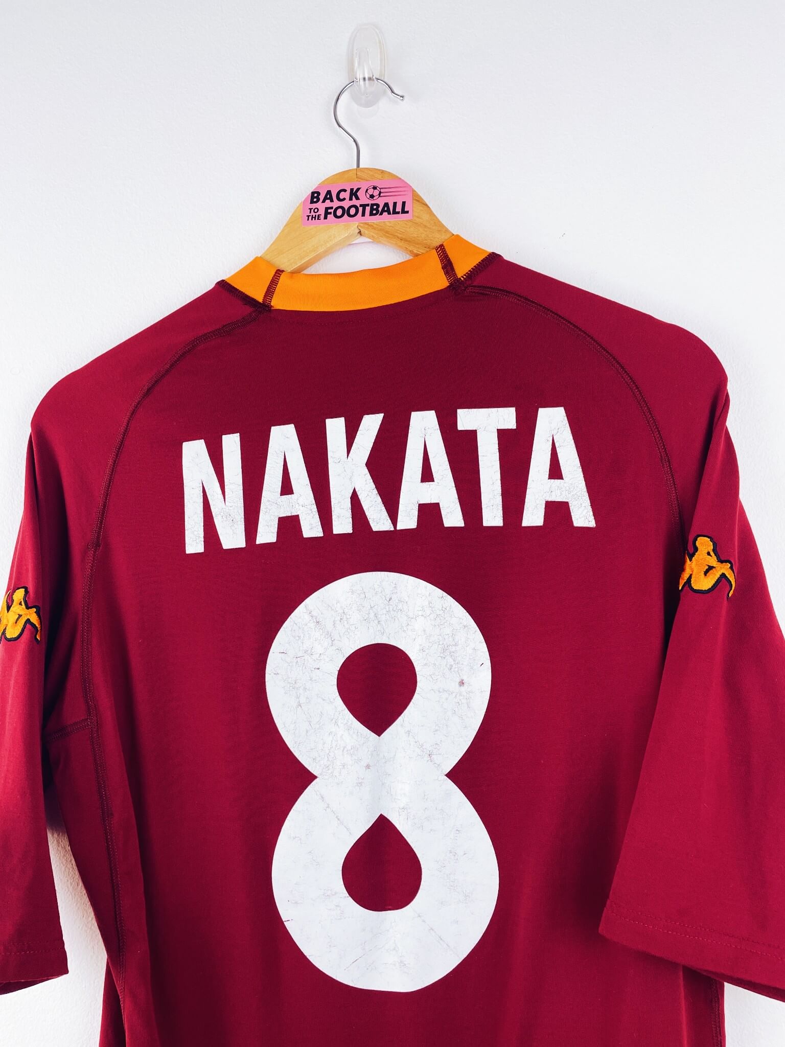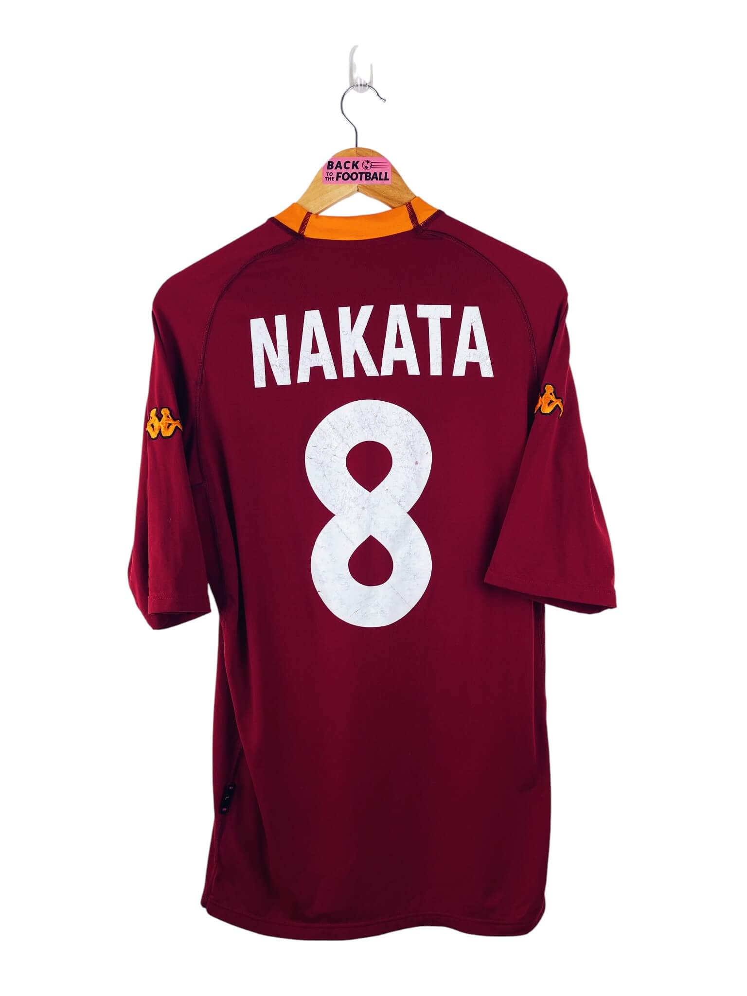 Le maillot : maillot vintage domicile AS Roma 2000/2001 floqué Nakata #8. L’écusson et le logo Kappa sont brodés, le sponsor INA Assitalia et Nakata #8 sont floqués. Très beau maillot rétro de l’AS Rome !