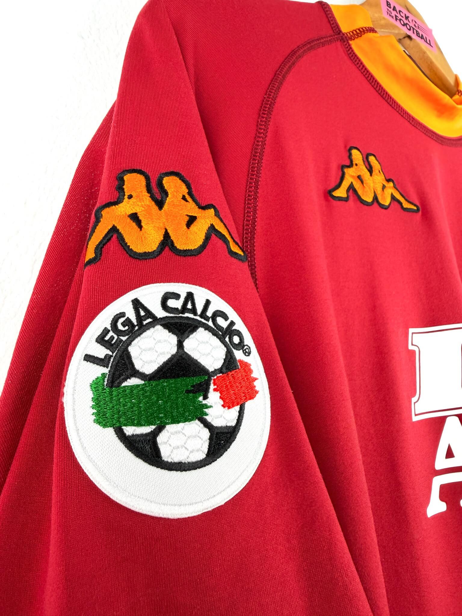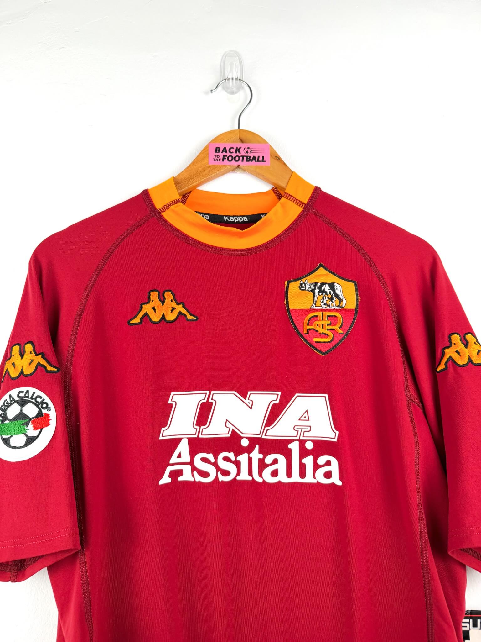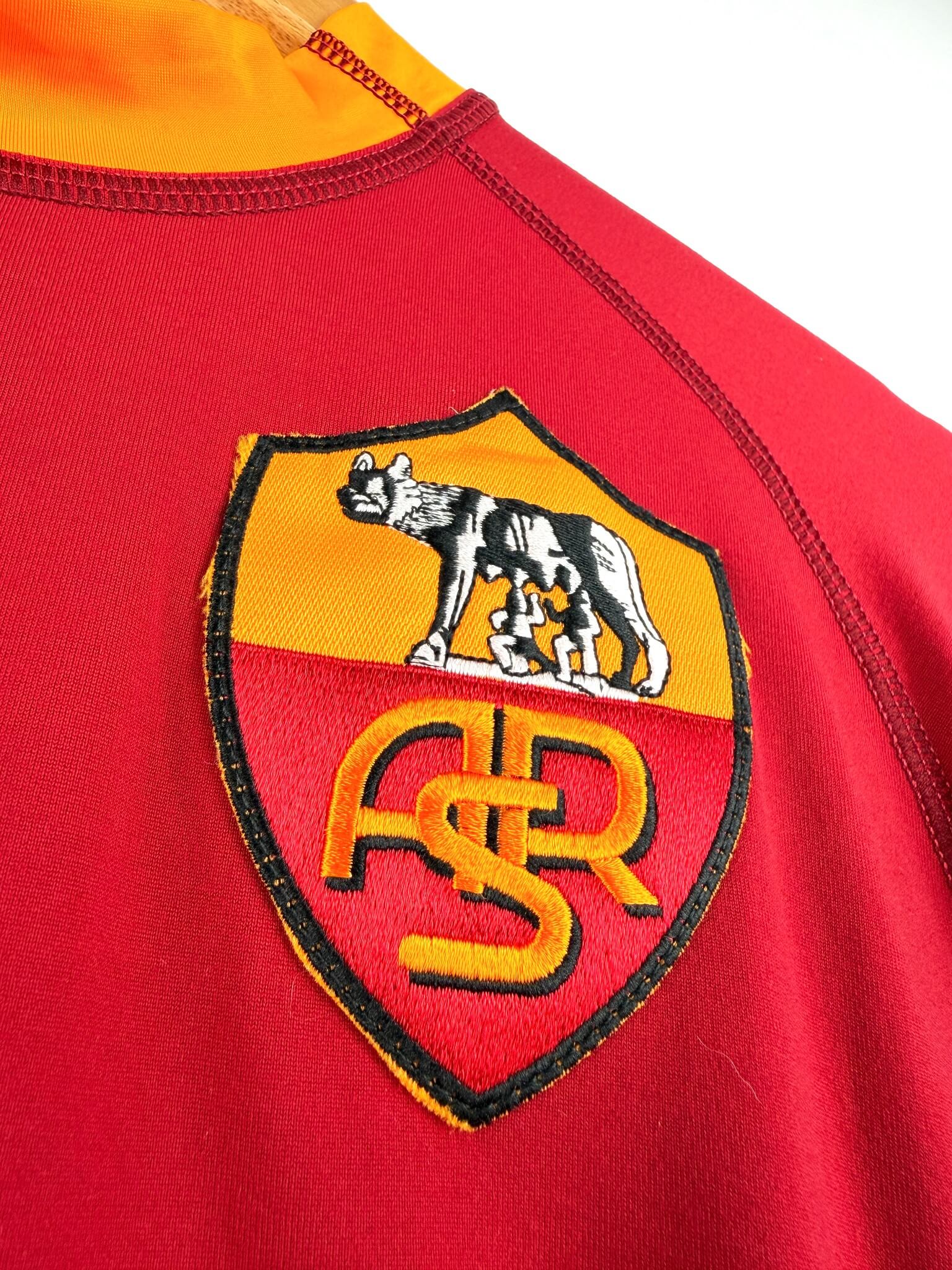 Tu as un tatouage de Francesco Totti sur l’épaule? Tu penses encore au Scudetto de 2000/2001 grâce au trio Batistuta, Delvecchio et Montella? Tu as des frissons en repensant à la remontada contre le Barça en 2018 ? Tu ne rates jamais le derby della capitale contre la Lazio ? Alors tu trouveras ton bonheur parmi les maillots de foot vintage de l’AS Rome de Back to the football. Et si t’as des pépites à vendre, on peut aussi racheter ton maillot collector de Rome.