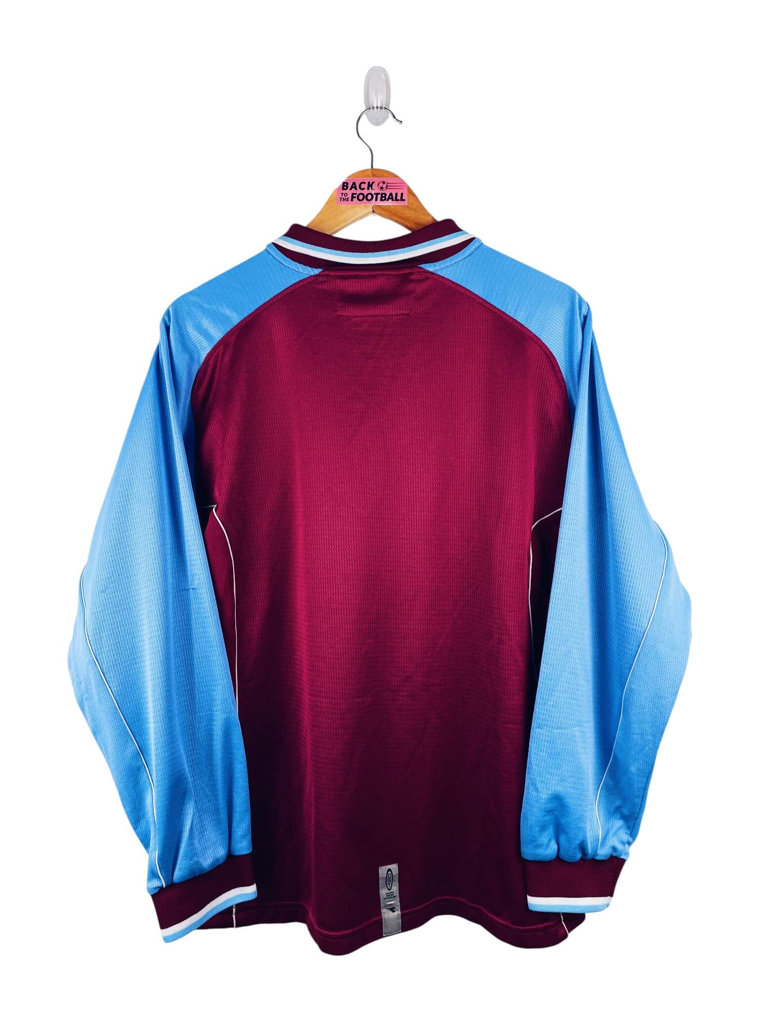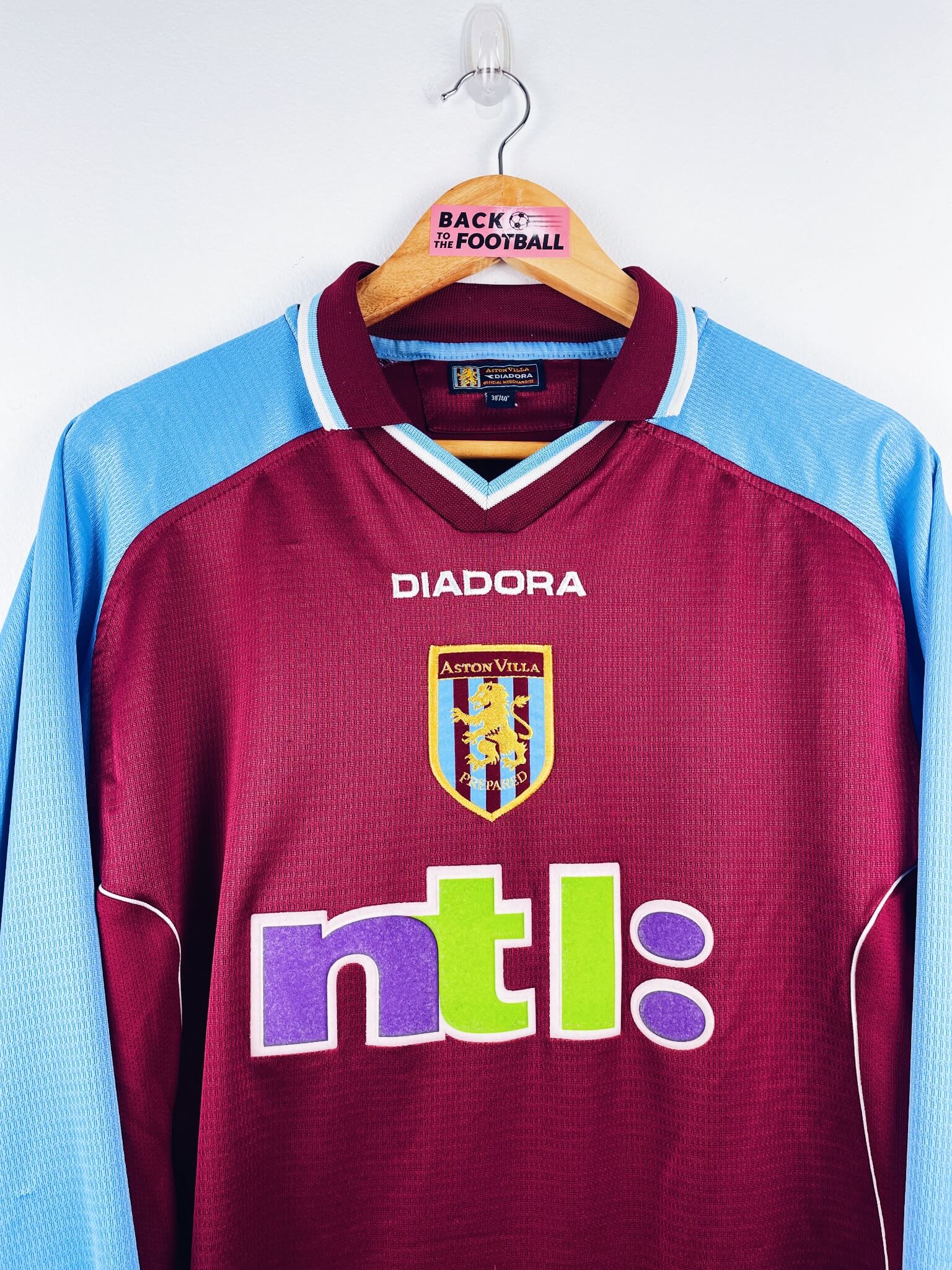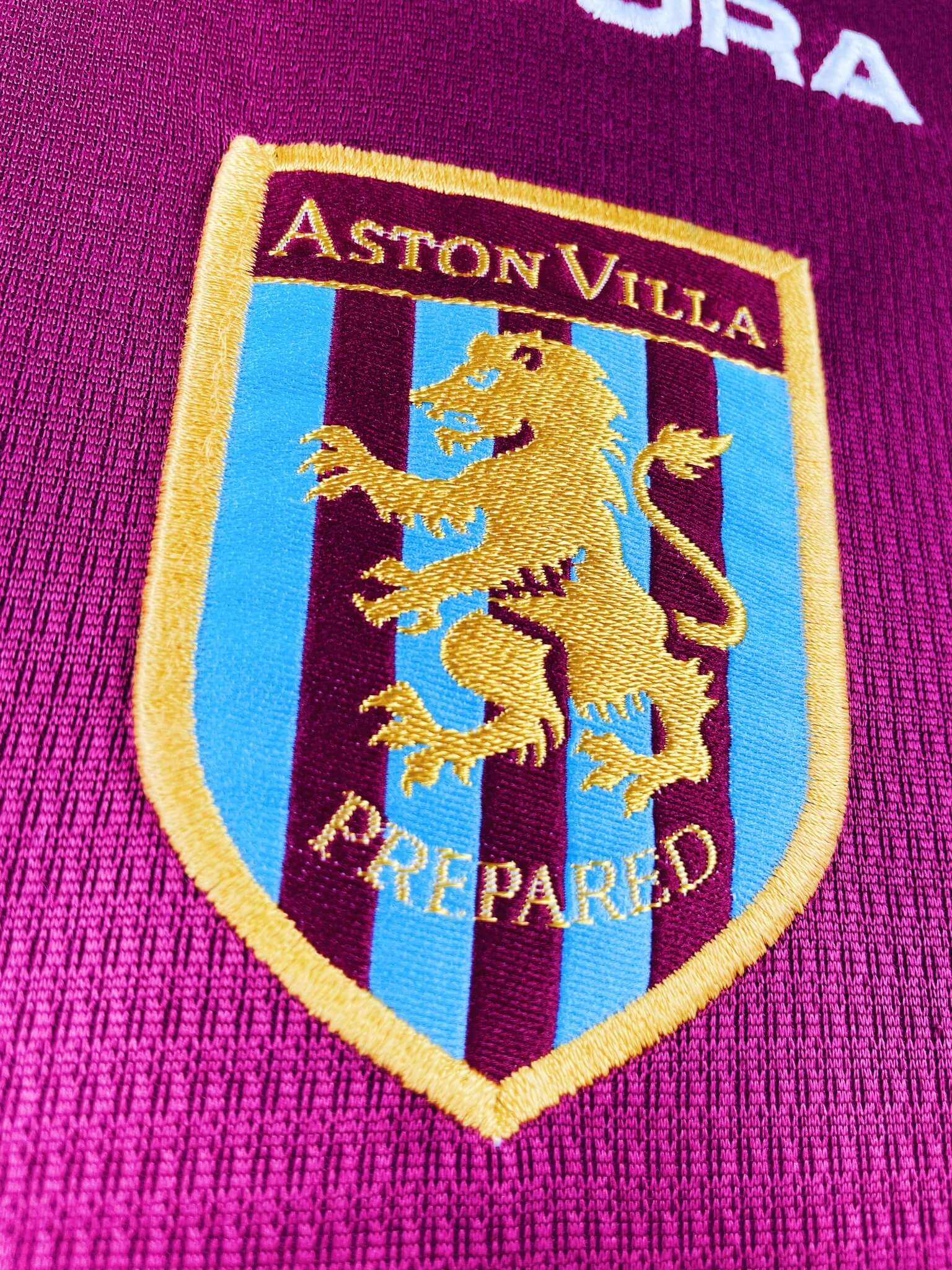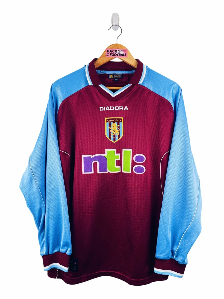 Le maillot : maillot vintage domicile d’Aston Villa 2000/2001 manches longues. L’écusson et le logo Diadora sont brodés, le sponsor Ntl est en feutrine. Très beau maillot rétro d’Aston Villa !