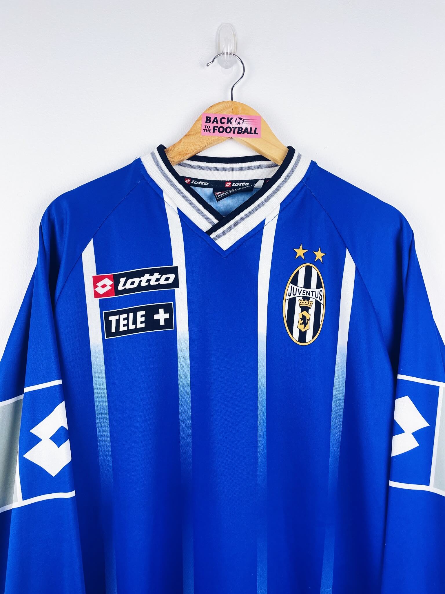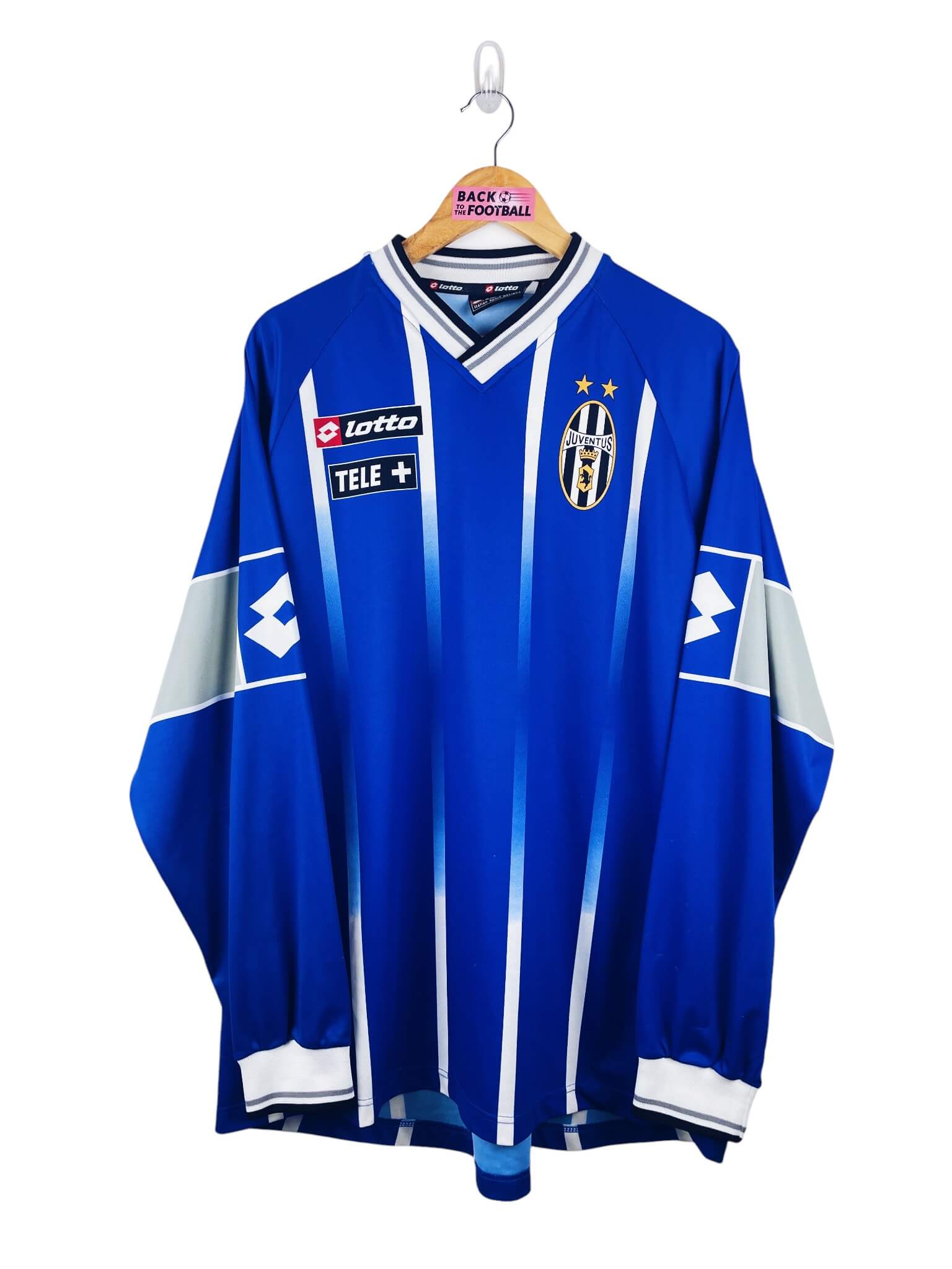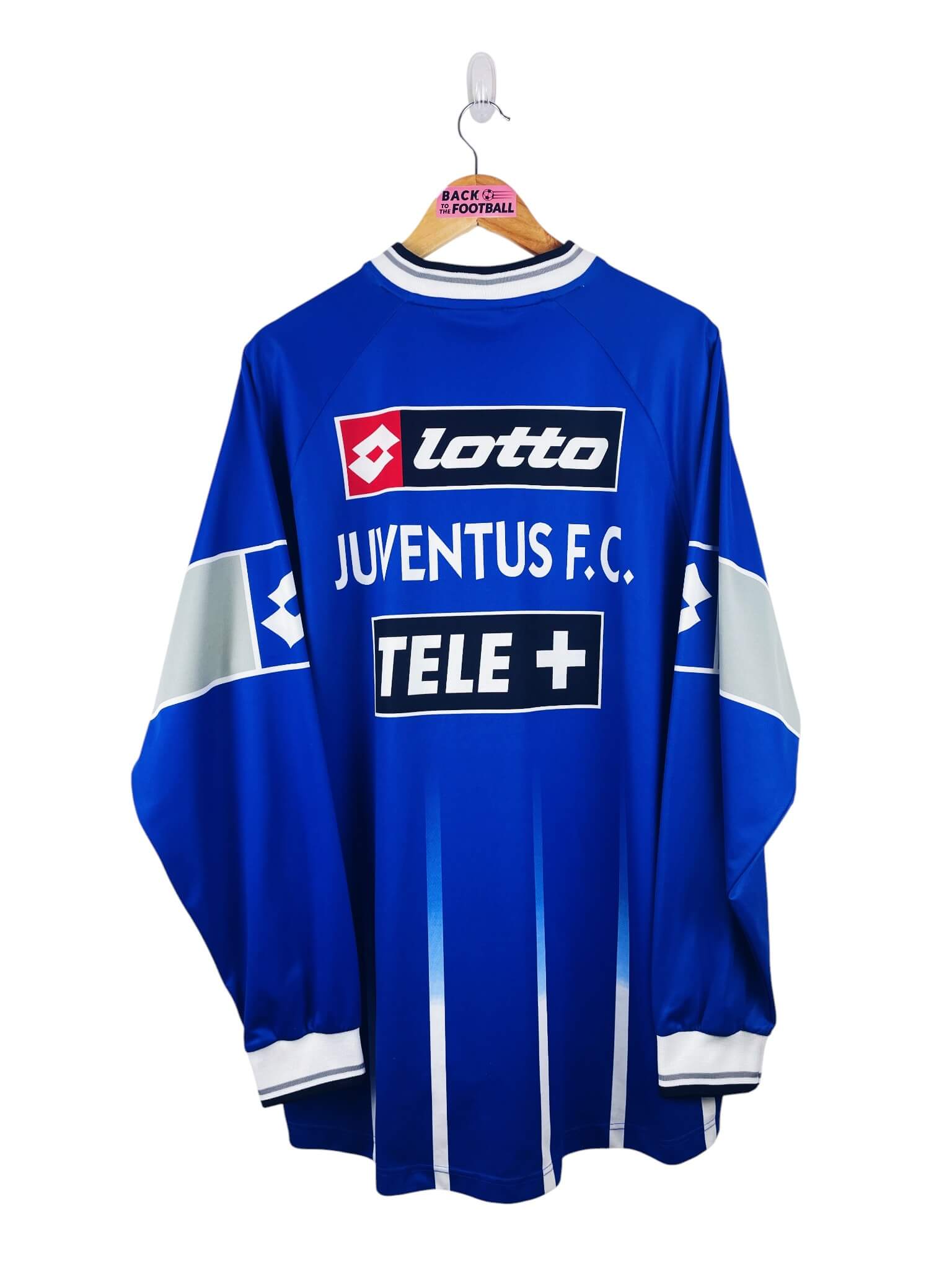 Le maillot : maillot vintage entrainement de la Juventus 2000/2001 manches longues. L’écusson, le logo Lotto et les sponsors Tele+ sont incrustés. Très beau maillot rétro de la Juventus !