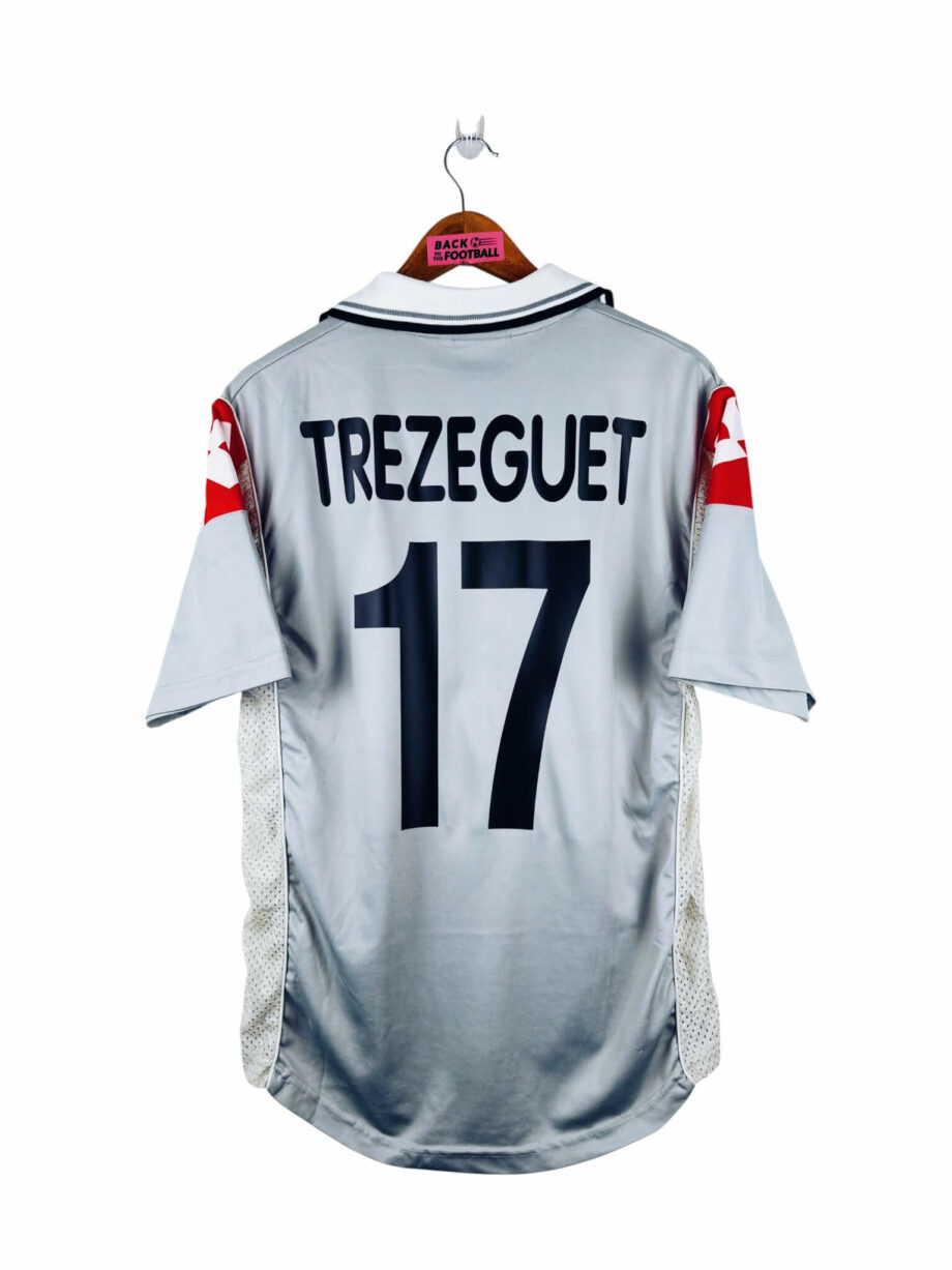 Le maillot : maillot vintage extérieur de la Juventus 2000/2001 floqué Trezeguet #17. L’écusson est brodé, le logo Lotto et le sponsor Tele + sont incrustés, Trezeguet #17 est floqué. Très beau maillot rétro de la Juventus !