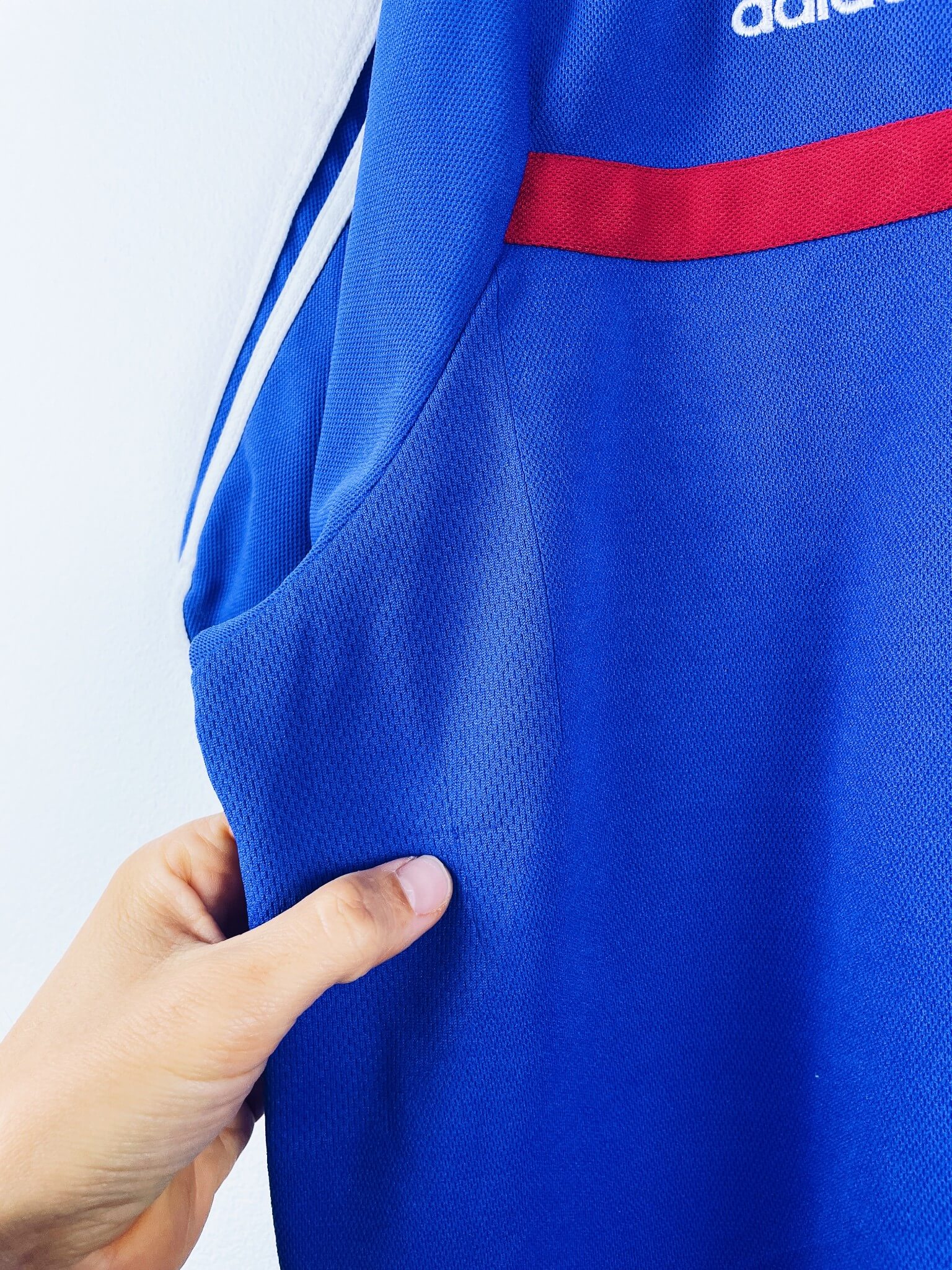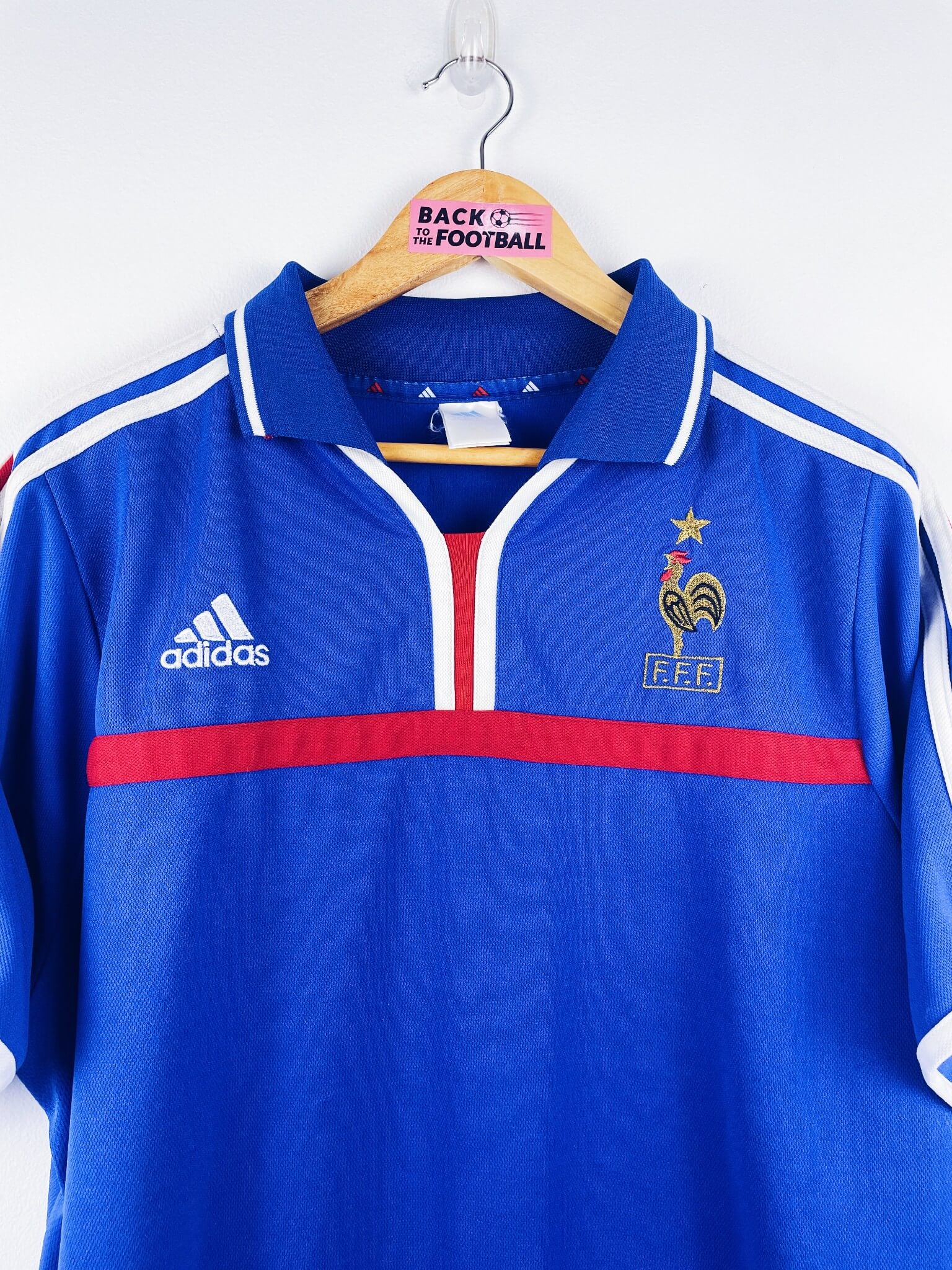 Le maillot : maillot vintage domicile de l’équipe de France 2000 floqué Zidane #10. L’écusson et le logo Adidas sont brodés, Zidane #10 est floqué. Quel maillot rétro de la France !