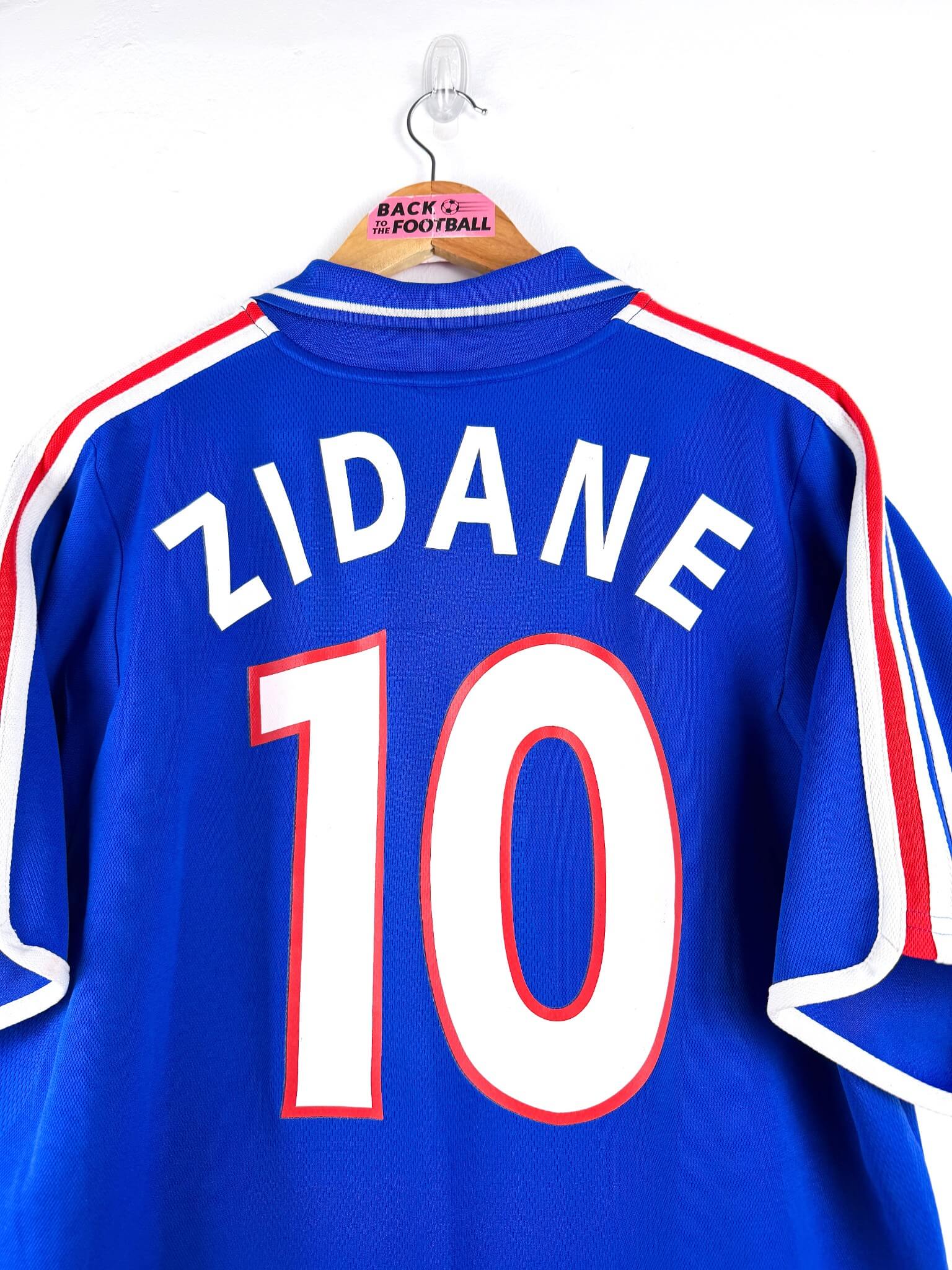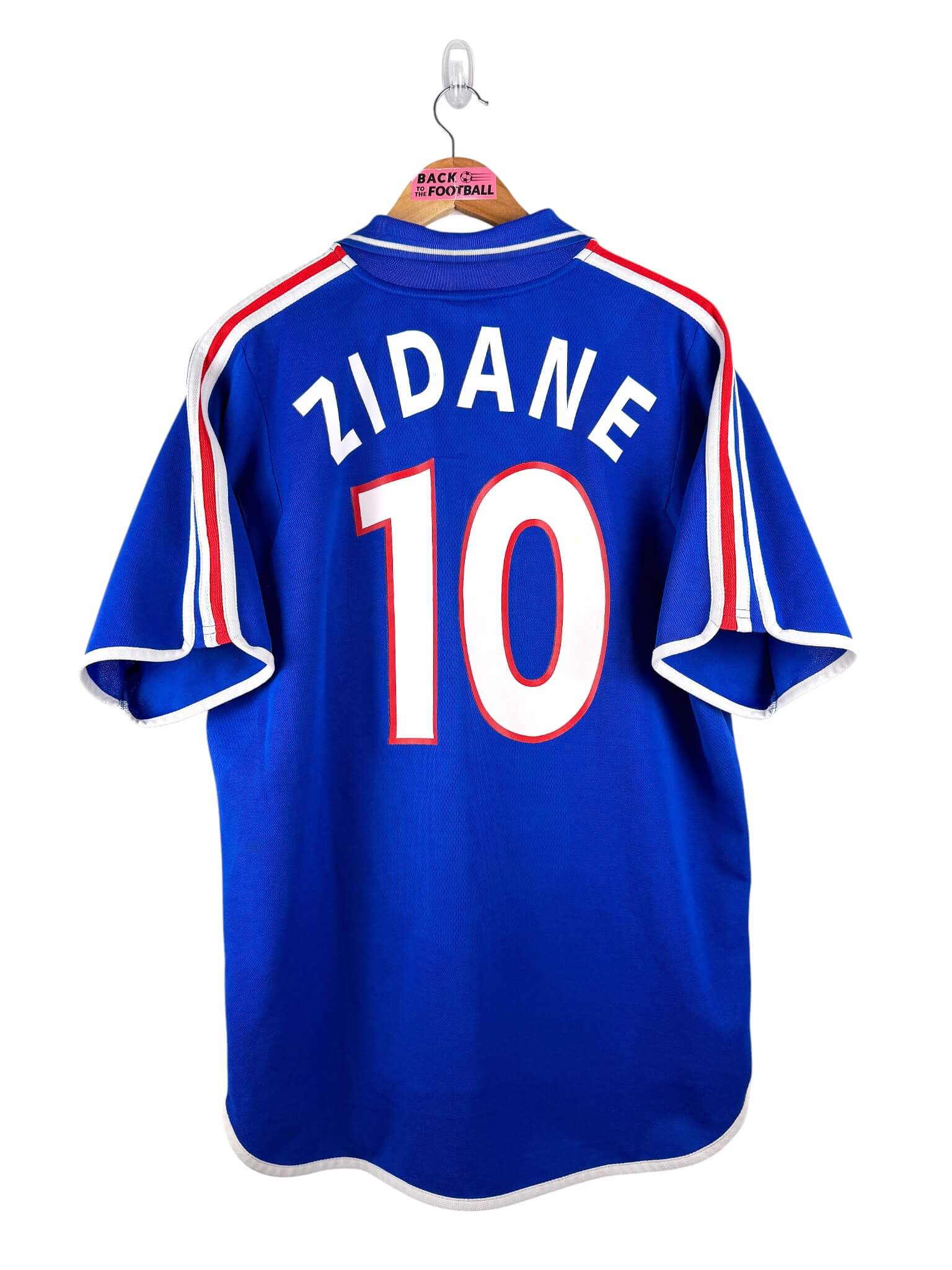 Le maillot : maillot vintage domicile de l’équipe de France 2000 floqué Zidane #10. L’écusson et le logo Adidas sont brodés, Zidane #10 est floqué. Quel maillot rétro de la France !