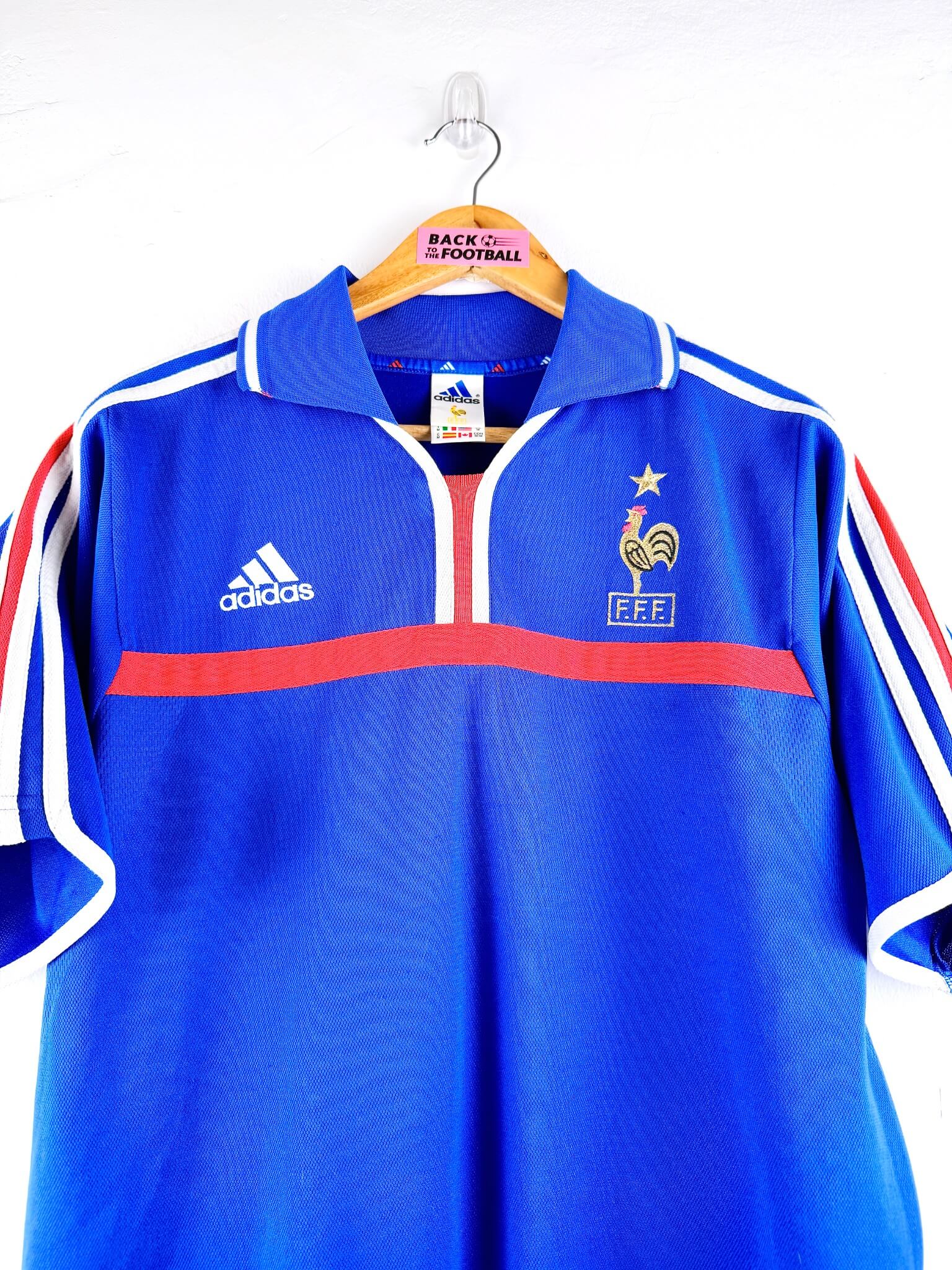 Le maillot : maillot vintage domicile de l’équipe de France 2000 floqué Zidane #10. L’écusson et le logo Adidas sont brodés, Zidane #10 est floqué. Quel maillot rétro de la France !