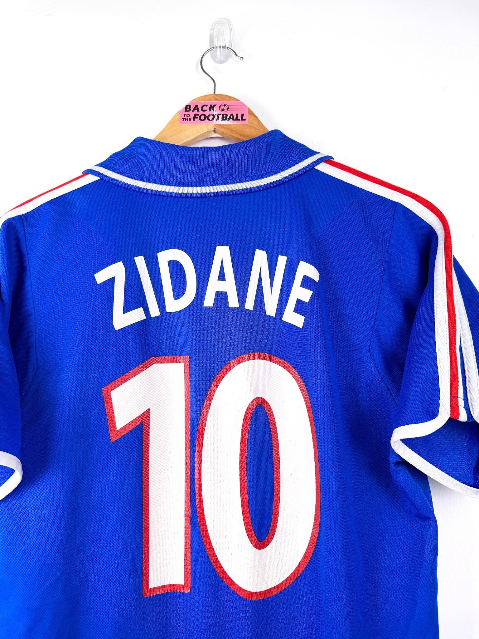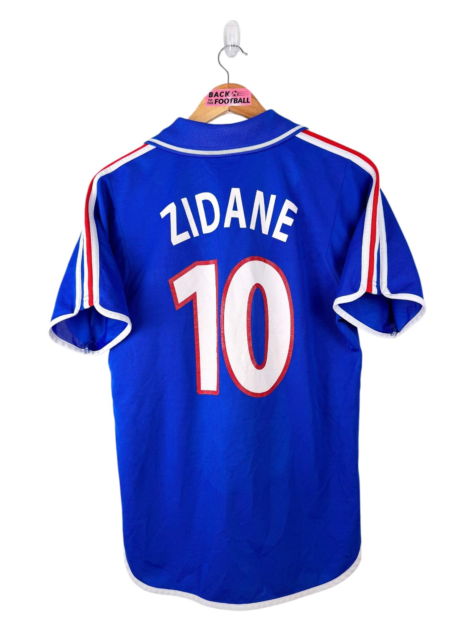 Le maillot : maillot vintage domicile de l’équipe de France 2000 floqué Zidane #10. L’écusson et le logo Adidas sont brodés, Zidane #10 est floqué. Quel maillot rétro de la France !