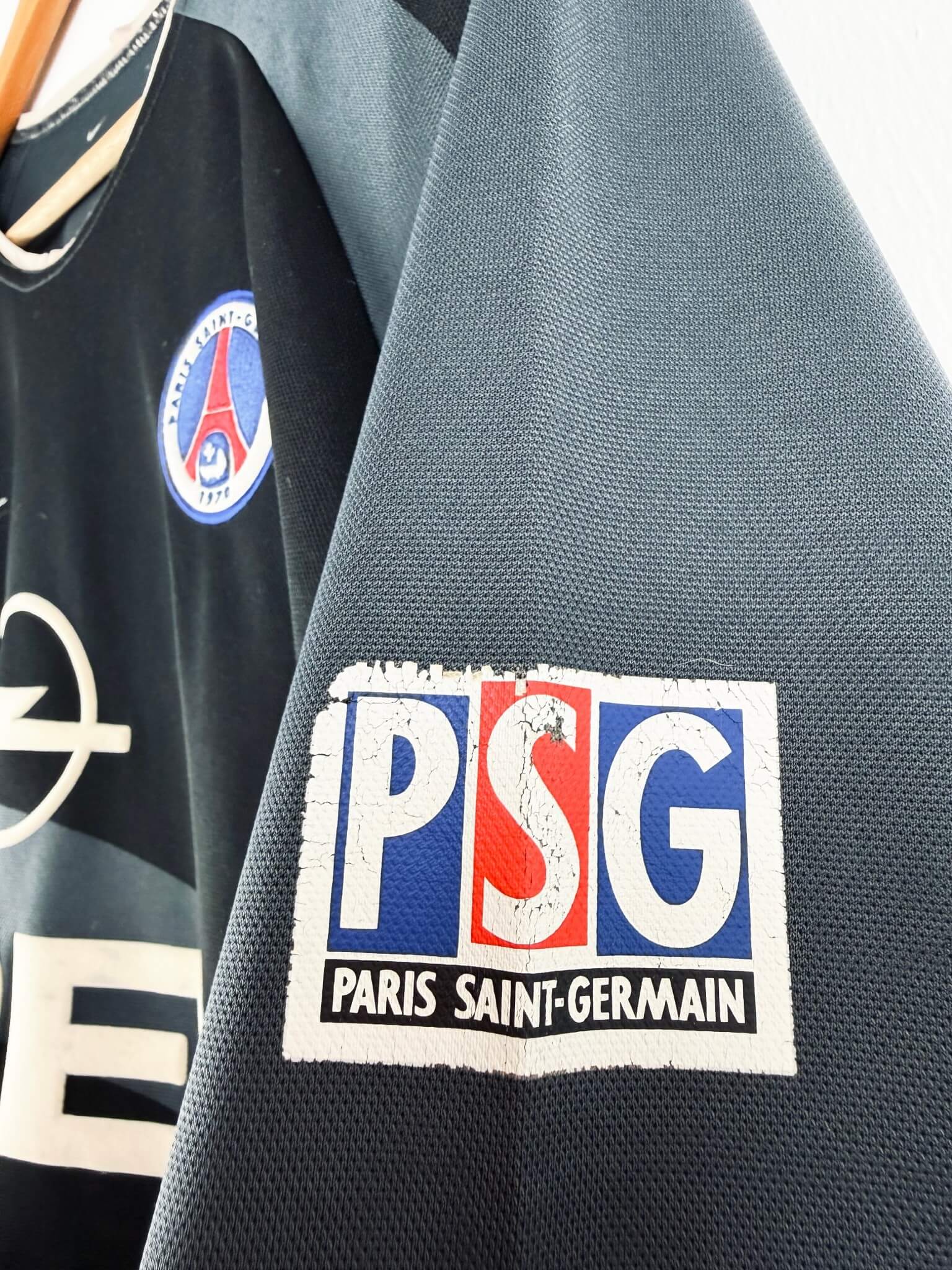 Le maillot : maillot vintage third du PSG 2001/2002. L’écusson et le logo Nike sont brodés, le sponsor Opel est en feutrine et a été brodé. Très beau maillot rétro du Paris Saint Germain !
